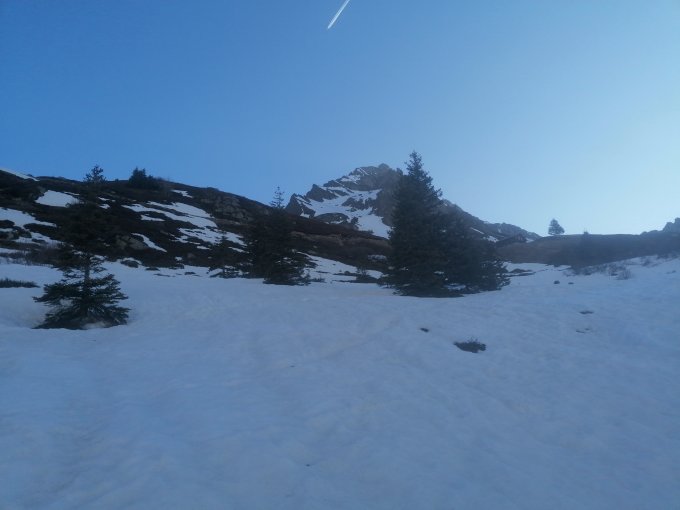 Wir sind durch den Wald und haben die Skier bis zur Alp Rieter getragen. Danach durchgehend Schnee bis zum Gipfel. Besser Aufstieg über Sewenhütte. Auf der ganzen Route viele Lawineabgänge zu queren. Harscheisen zwingend. Steigeisen und Pickel vorteilhaft für Gipfel
