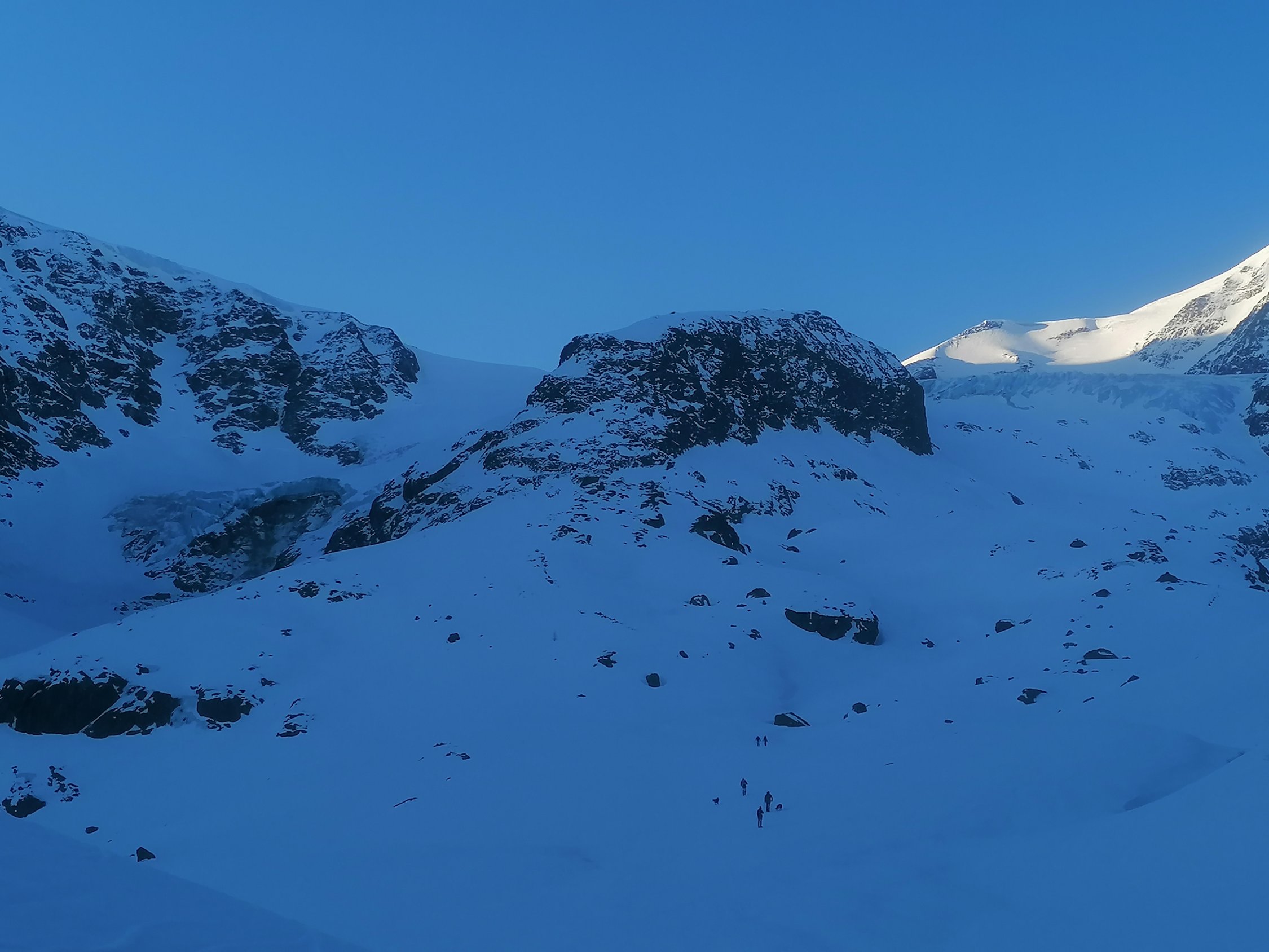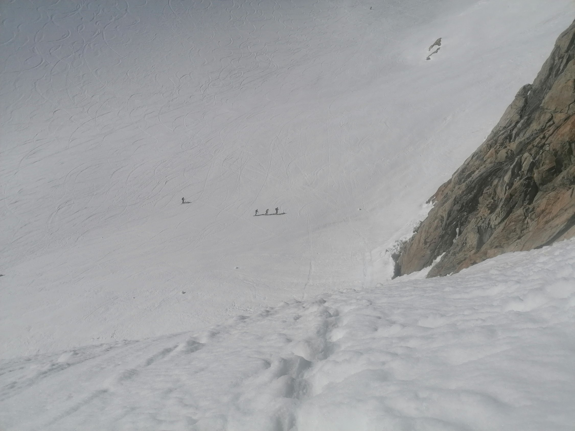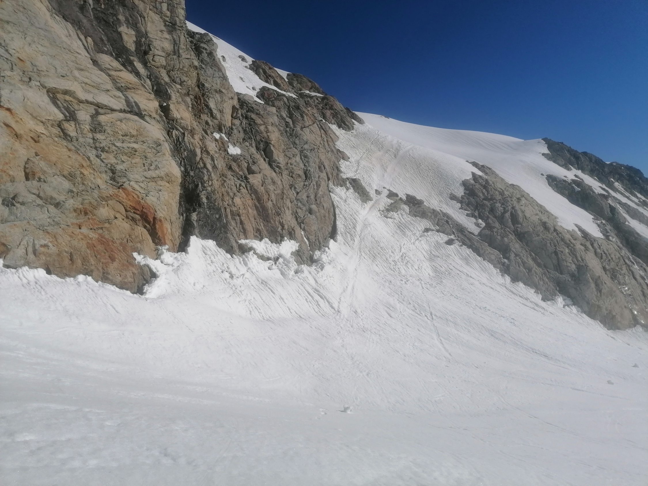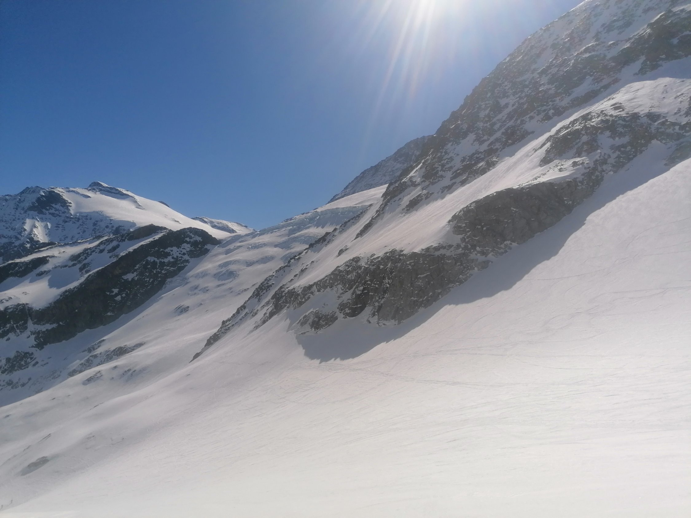 Gute Aufstiegsspur ab Hotel Steingletscher. Wir gaben keine Harscheisen benötigt. Felsstufe gemäss aktueller Skitourenroute überwunden. Alte Route heikel.