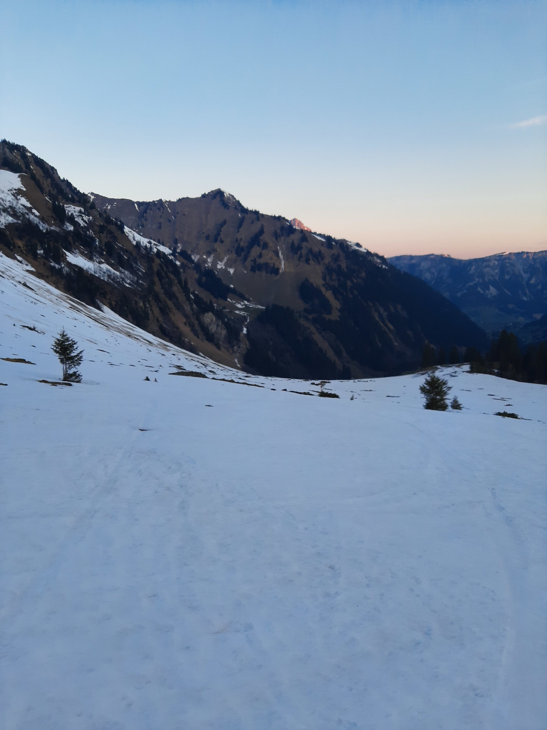 Mit Auto bis Alp 1557 gefahren. Ab dort Schnee.