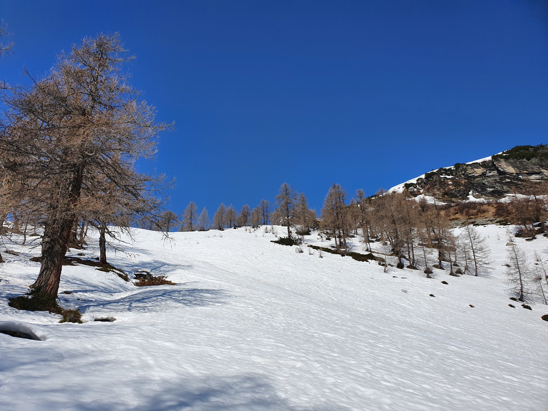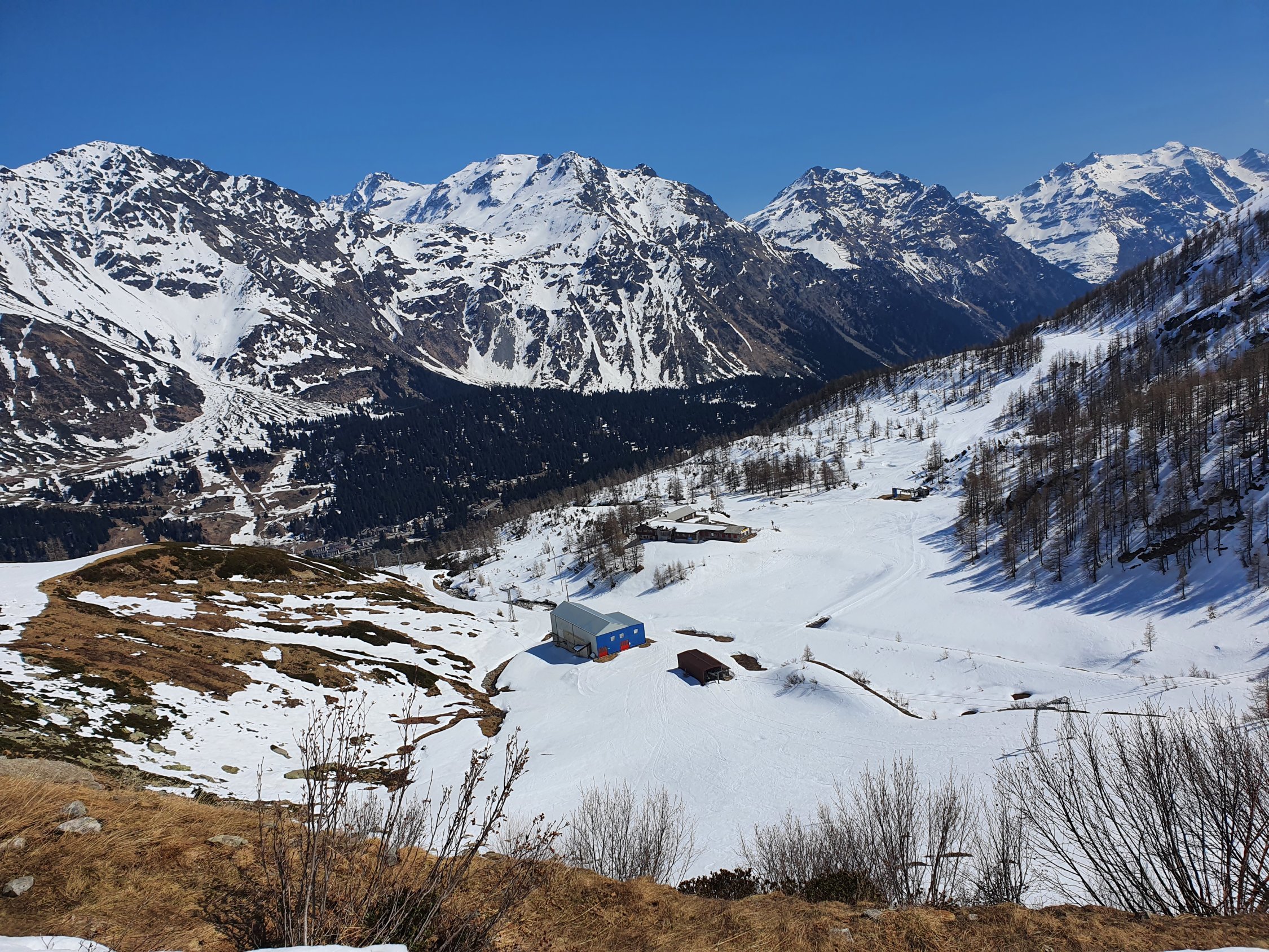 Bin von San Bernanrdino Impianti Cunfin bei der Skigondel direkt der Piste losgegangen und dann über P2107 hinein ins Alp Vigon zum Gipfel hinauf.