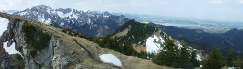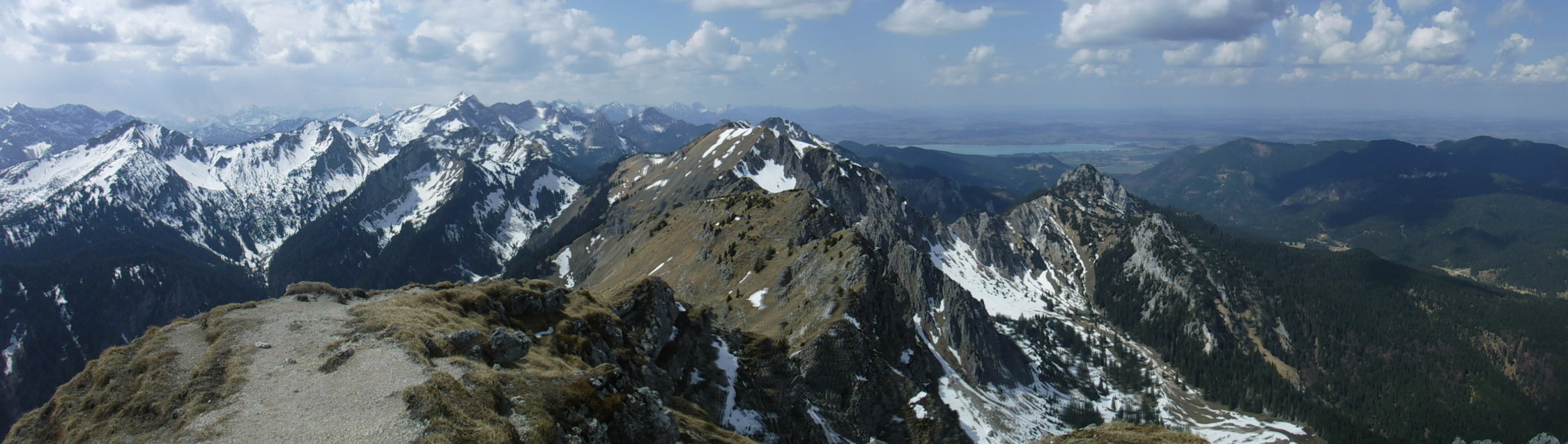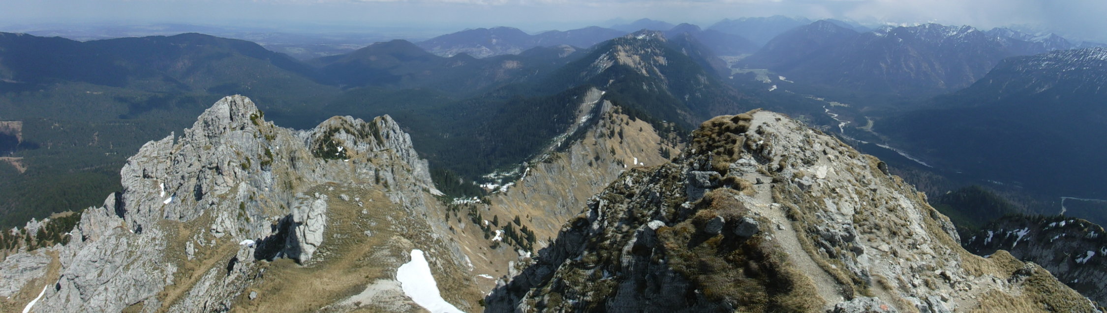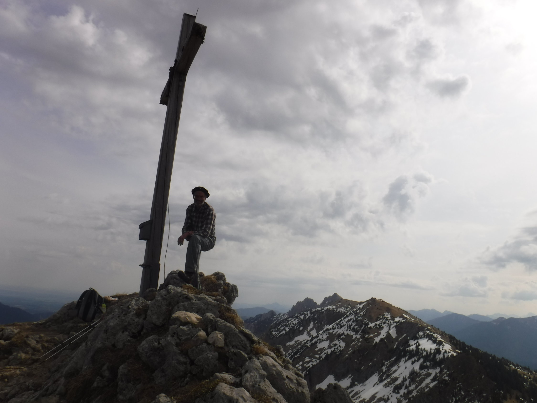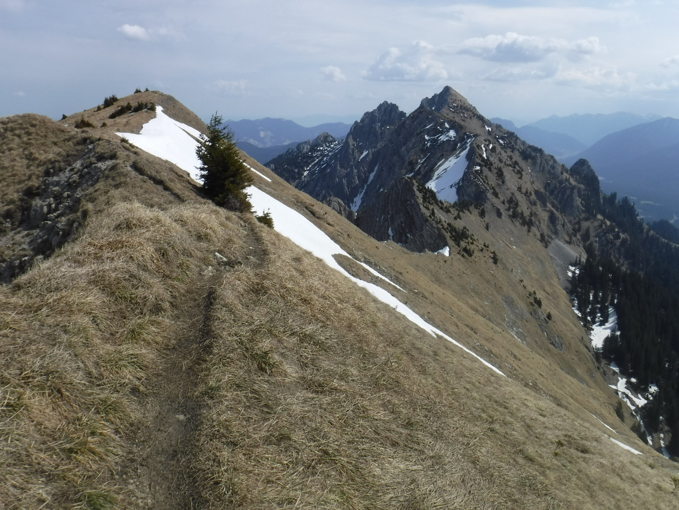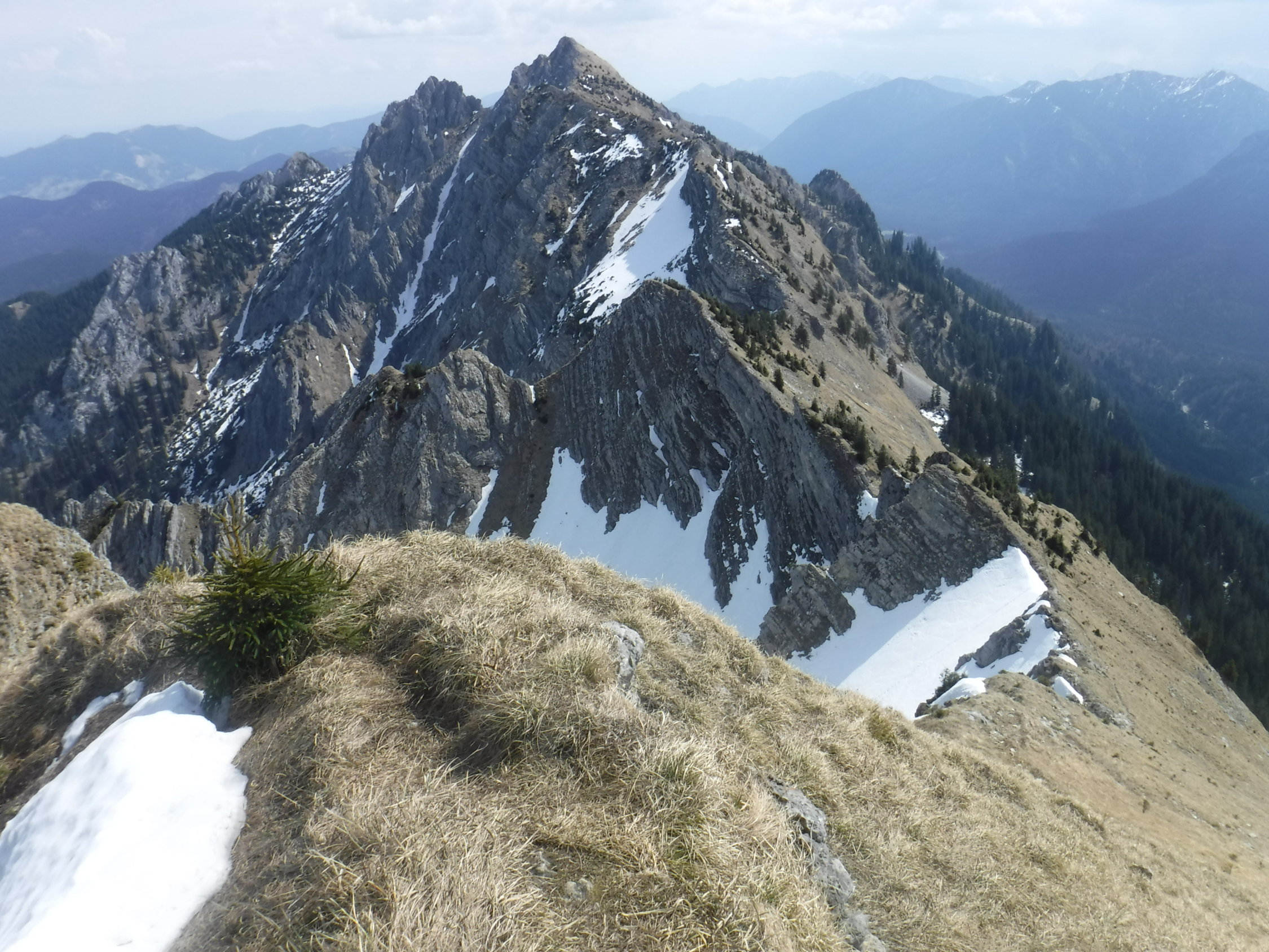 Kurz nach mir kam ein Berggänger über die steile Nordseite hinauf. Die hatte ich mir gestern vom Brunnenkopf aus angeschaut und erschien mir wegen dem Schnee heikel. Er meinte, der Aufstieg ging gerade so. Der Schnee oben wäre schon zu weich und man dürfe nicht ins Rutschen kommen. Für den Abstieg also nicht empfehlenswert. Hatte ich auch nicht vor. Er lief dann ebenfalls über den Klammspitzgrat weiter.