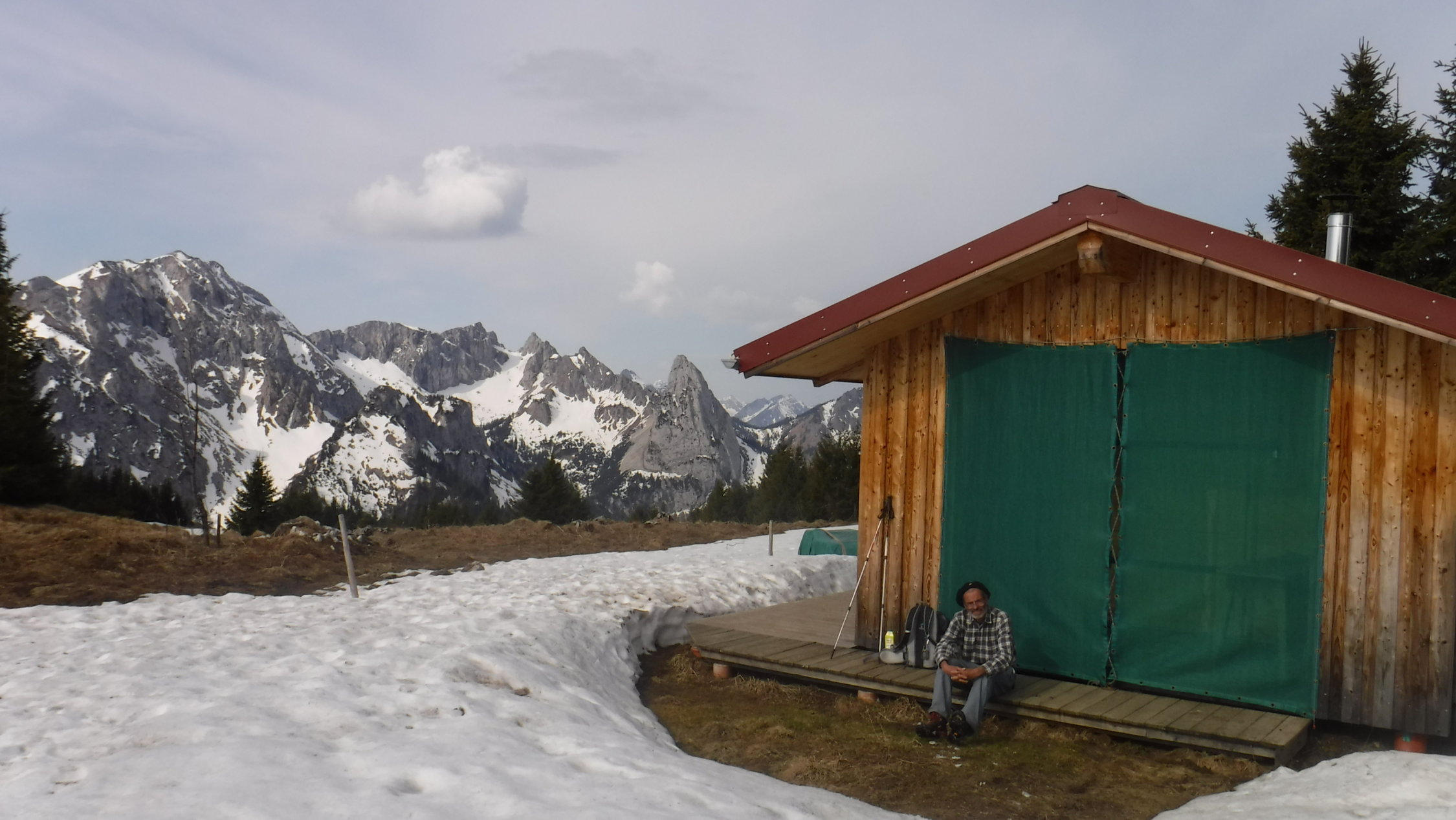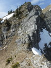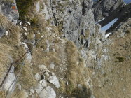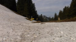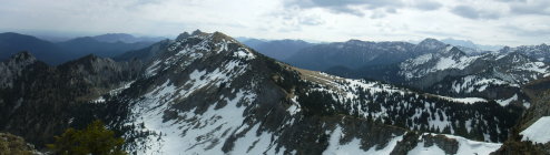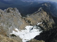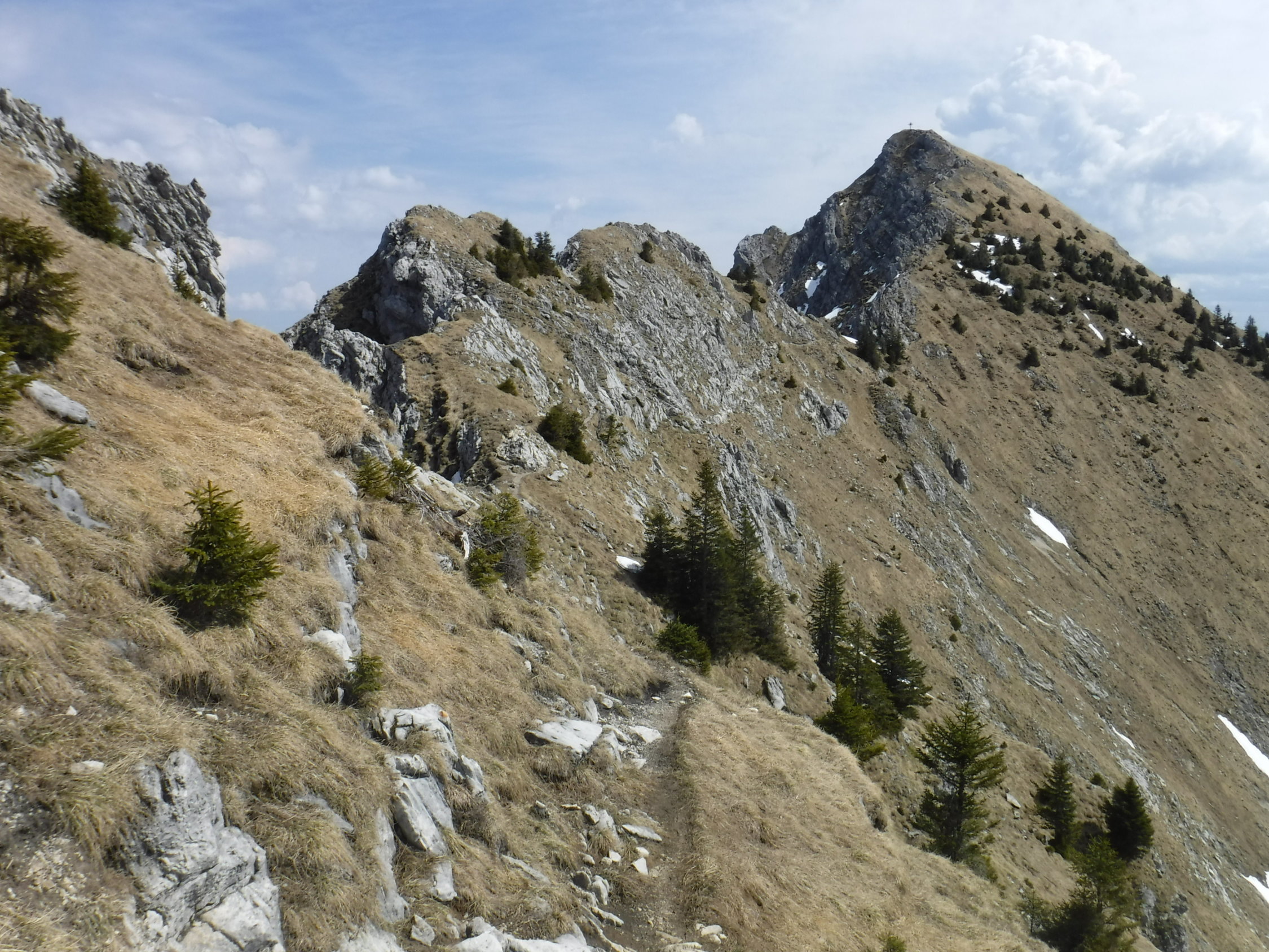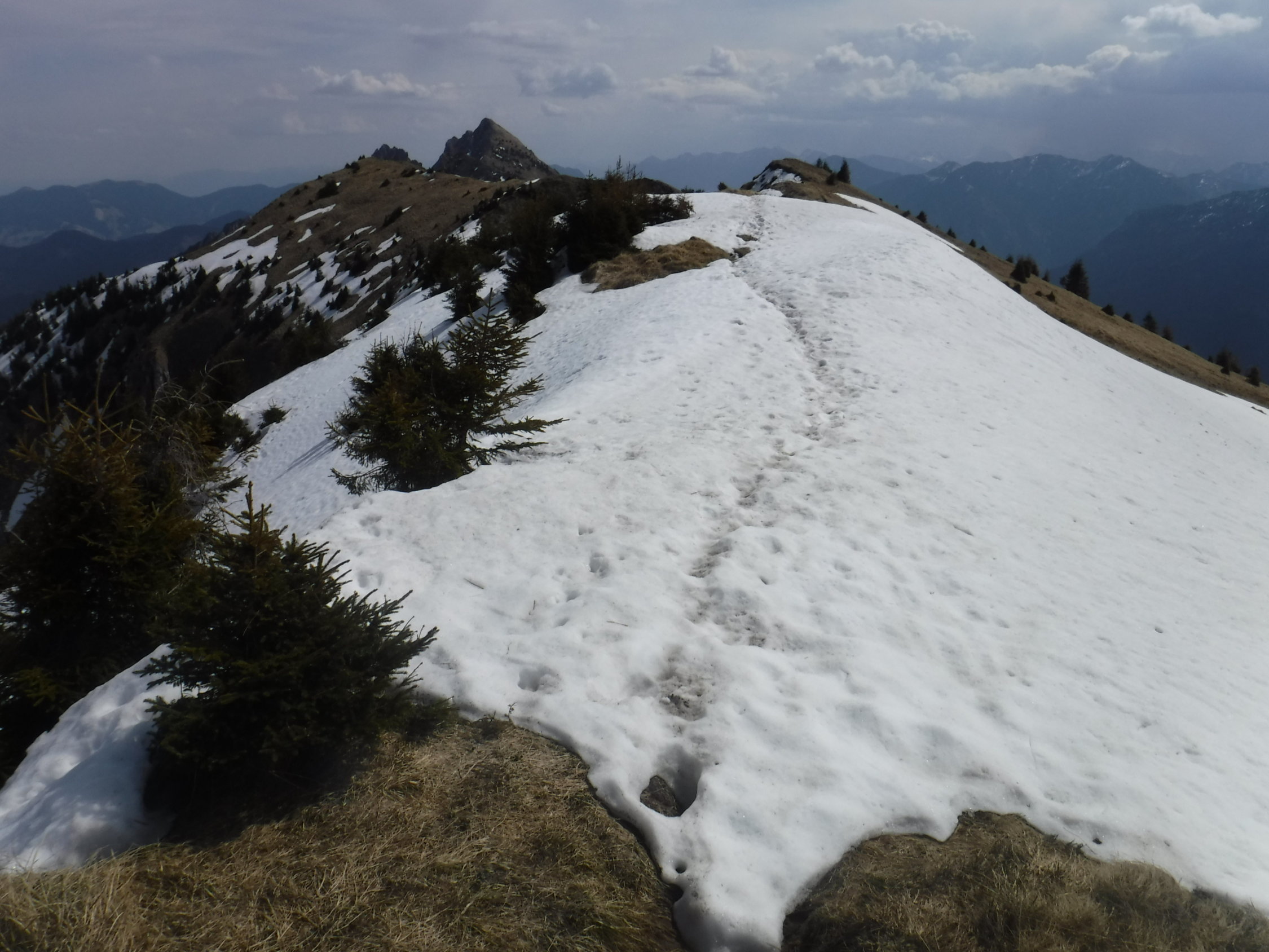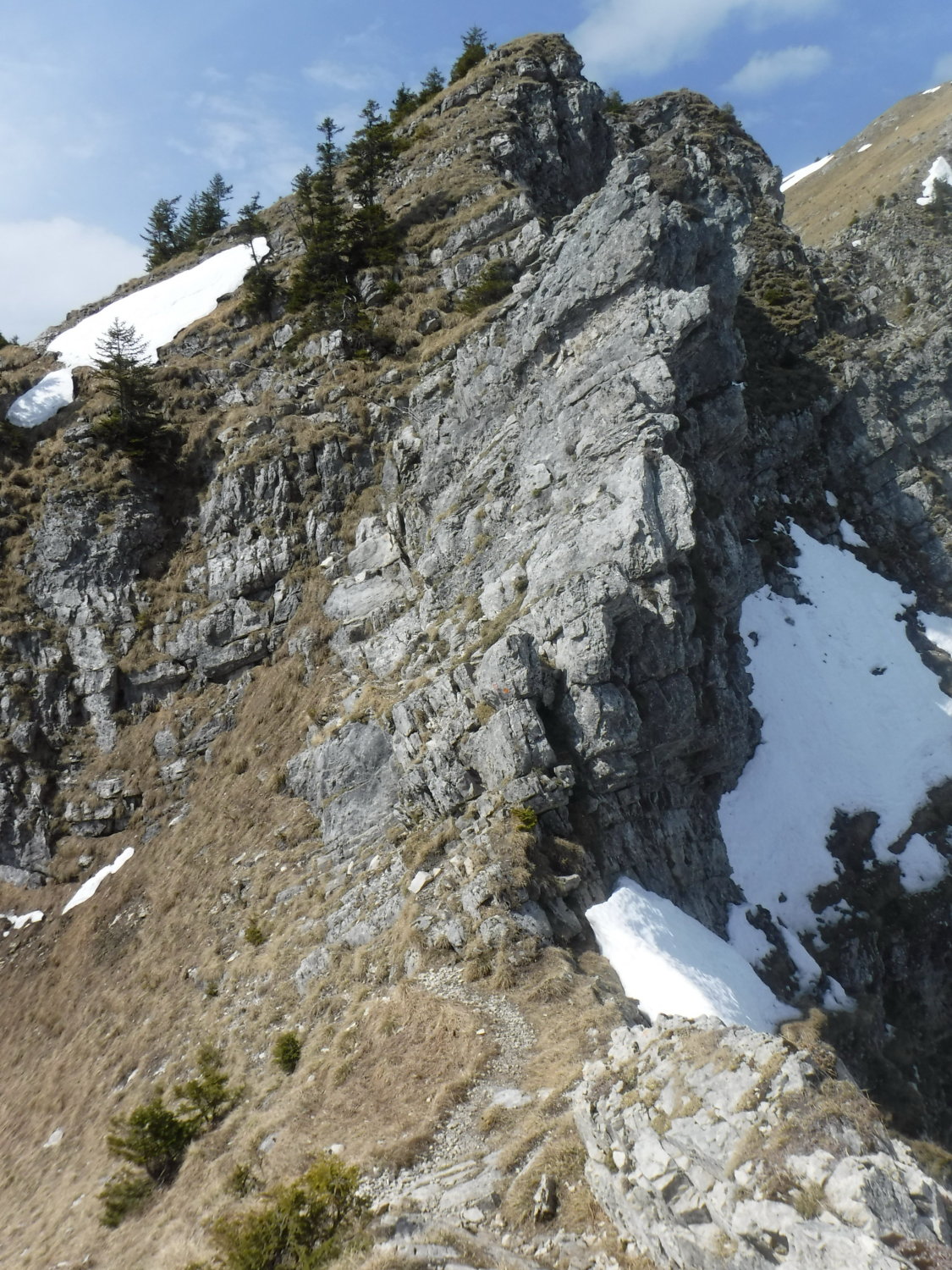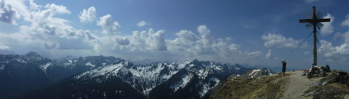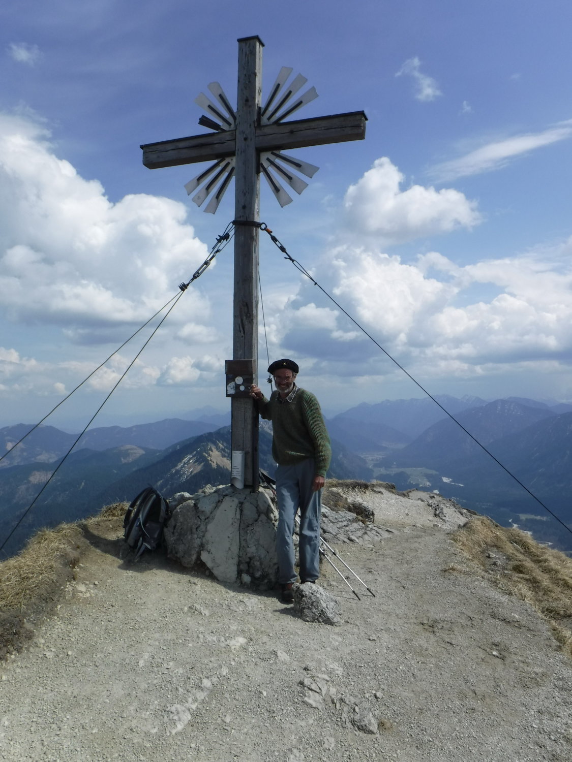 Kurz nach mir kam ein Berggänger über die steile Nordseite hinauf. Die hatte ich mir gestern vom Brunnenkopf aus angeschaut und erschien mir wegen dem Schnee heikel. Er meinte, der Aufstieg ging gerade so. Der Schnee oben wäre schon zu weich und man dürfe nicht ins Rutschen kommen. Für den Abstieg also nicht empfehlenswert. Hatte ich auch nicht vor. Er lief dann ebenfalls über den Klammspitzgrat weiter.