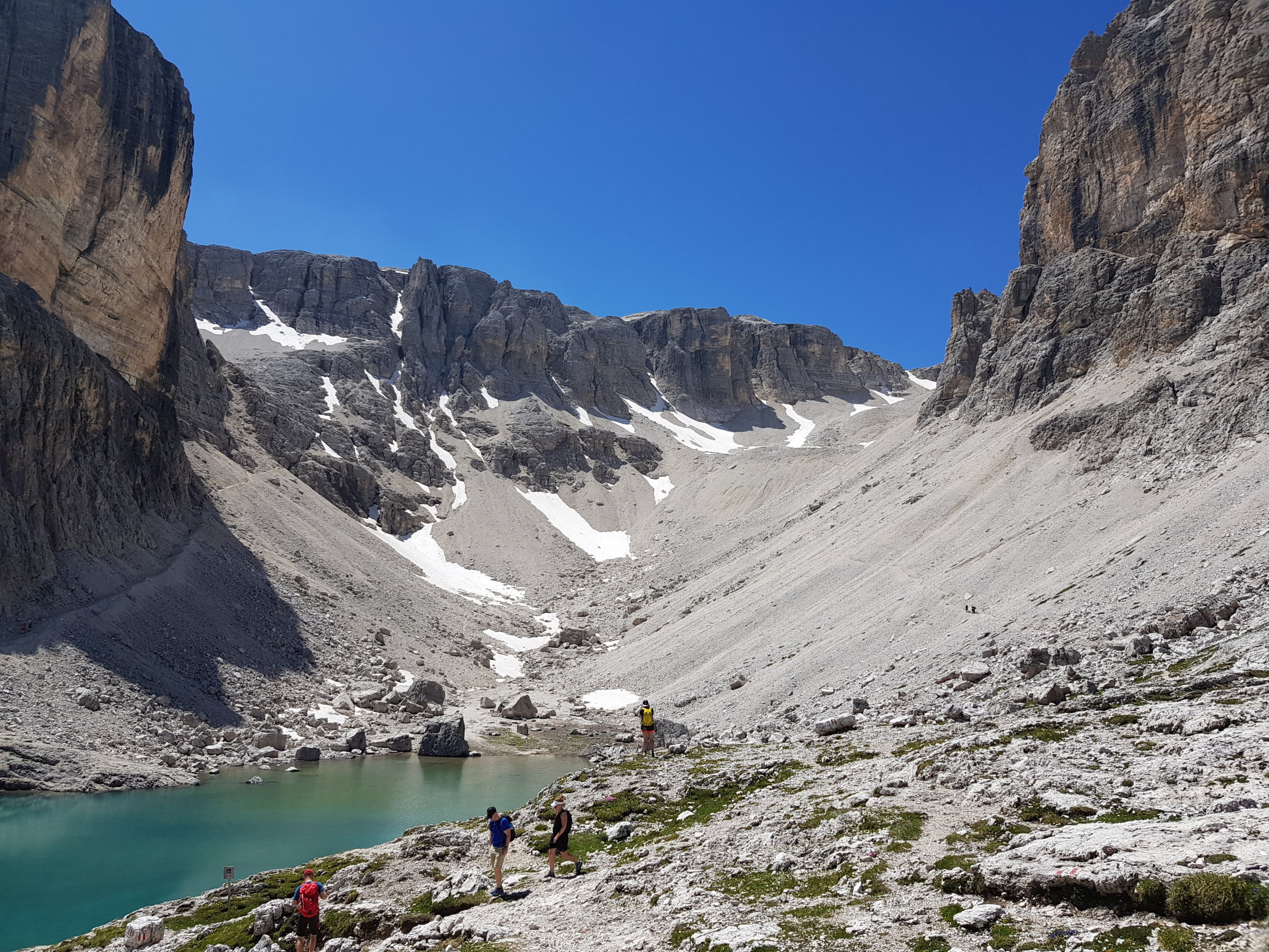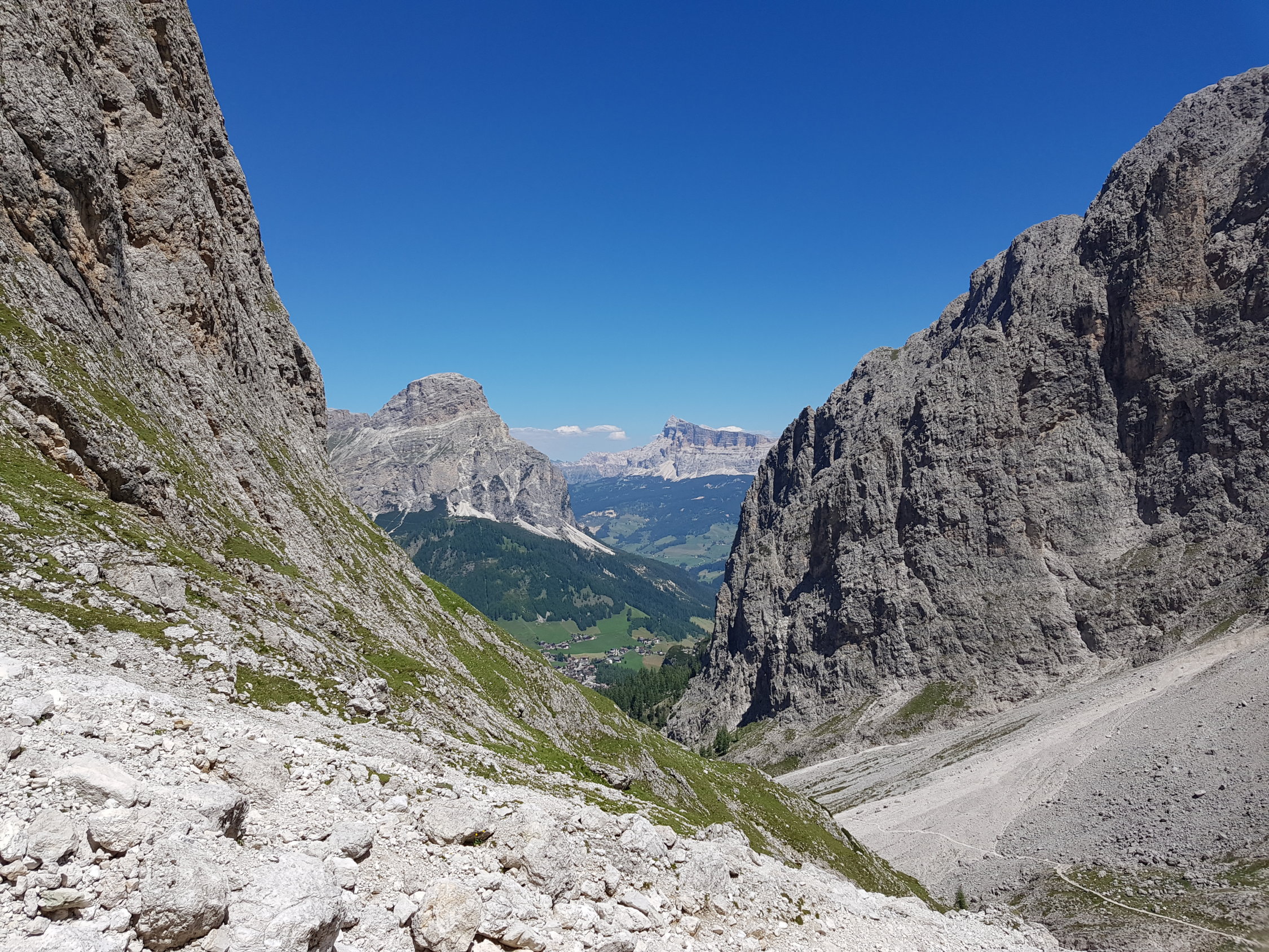 Ein echter Klettersteig, so wie wir das aus der Schweiz kennen (die anderen Dolomiter Klettersteige sind meist eher gesicherte Wege). Sehr beliebt. Uns wurde gesagt, man müsse um 08:00 Uhr dort sein, damit es nicht zu viel "Stau" gibt. Der Parkplatz (der erste Bus kommt erst um ca. 09:00 Uhr an) war schon gut gefüllt. Der Stau am Klettersteig perfekt. Anscheinend ist es später am Tag wieder besser. Wir sind durch das Val de Misdè nach Kolfusch abgestiegen, was schön war, aber sich ziemlich gezogen hat. Ein nächstes Mal würde ich allenfalls Richtung Piz Boè gehen (sah vielversprechend aus) und dort die Bahn benutzen.