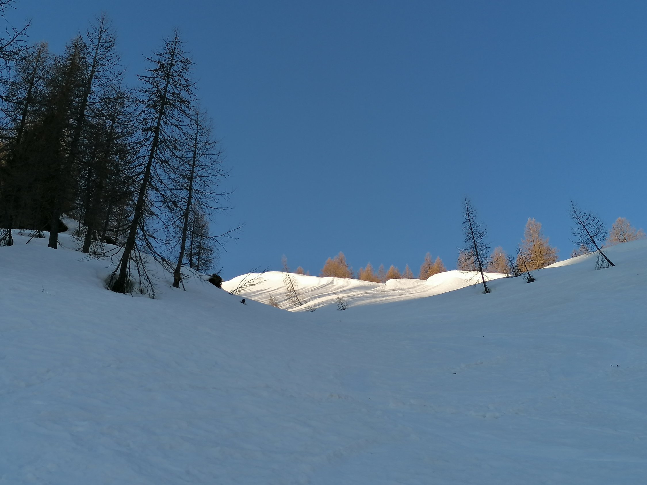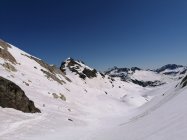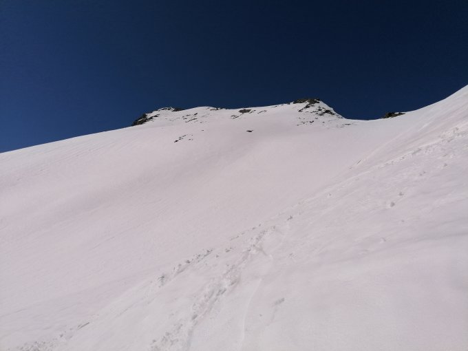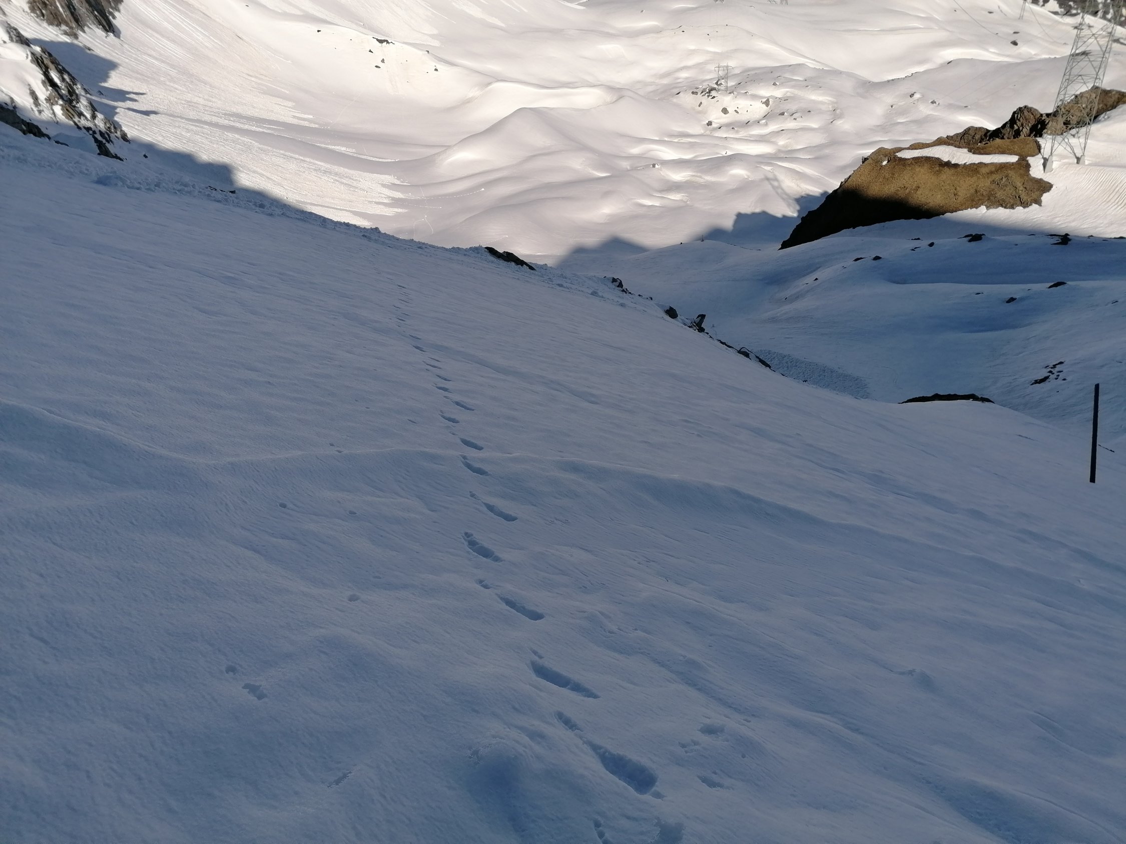 Schnee ab Brücke All'Acqua. Aufstieg bis zur Alp val d'Olgia ohne Harscheisen machbar. Teilweise Spuren vorhanden bis Punkt 2476. Für den Aufstieg zur Btta di Formaxxora sind Pickel und Steigeisen notwendig. Hänge unterhalb Pizzo San Giacomo nach 1000 Uhr bereits stark aufgeweicht. Tour wurde 150hm unterhalb des Gipfels abgebrochen, da der Schnee massiv aufgeweicht war.