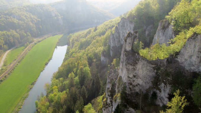 Das schöne Frühlingswetter setzte sich fort. Am Morgen war es noch bewölkt, lockerte dann aber mehr und mehr auf. Die Wege und Pfade waren alle staubtrocken. Die 180 Mio. Jahre alten Kalkriffe im Naturpark Donau mit ihren Aussichtspunkten inmitten der ergrünten Wälder bieten was für das Auge. Die Tiefblicke sind imposant.