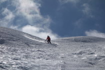 Start um ca. 6:00, anschliessend ca. 30min Skitragen dann durchgehende Schneedecke und gute Spur. Dank der Wolken sehr angenehme Aufstiegstemperaturen, die Spur blieb eisig bis ca. 11:30, anschliessend leichte Stollenbildung an den Fellen, besser am Vortag wachsen!