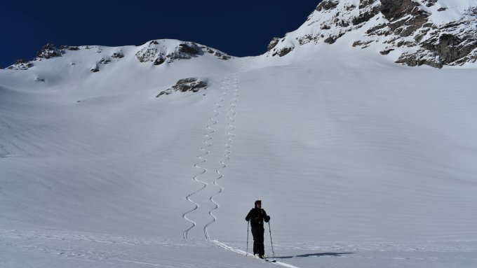 Neuschnee ab Furt, in der Gipfelflanke über 50 cm.