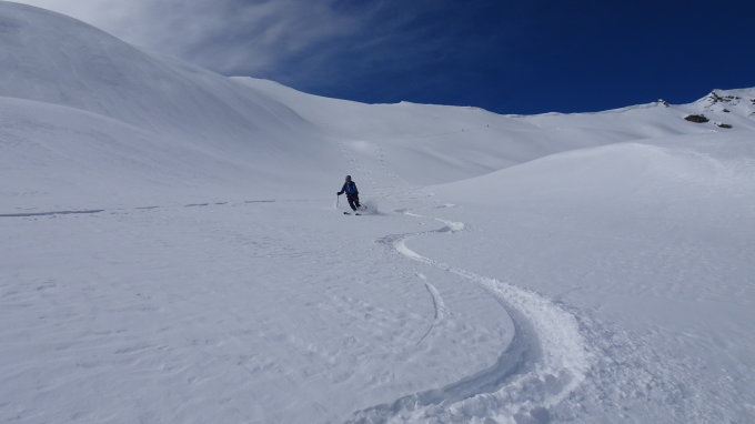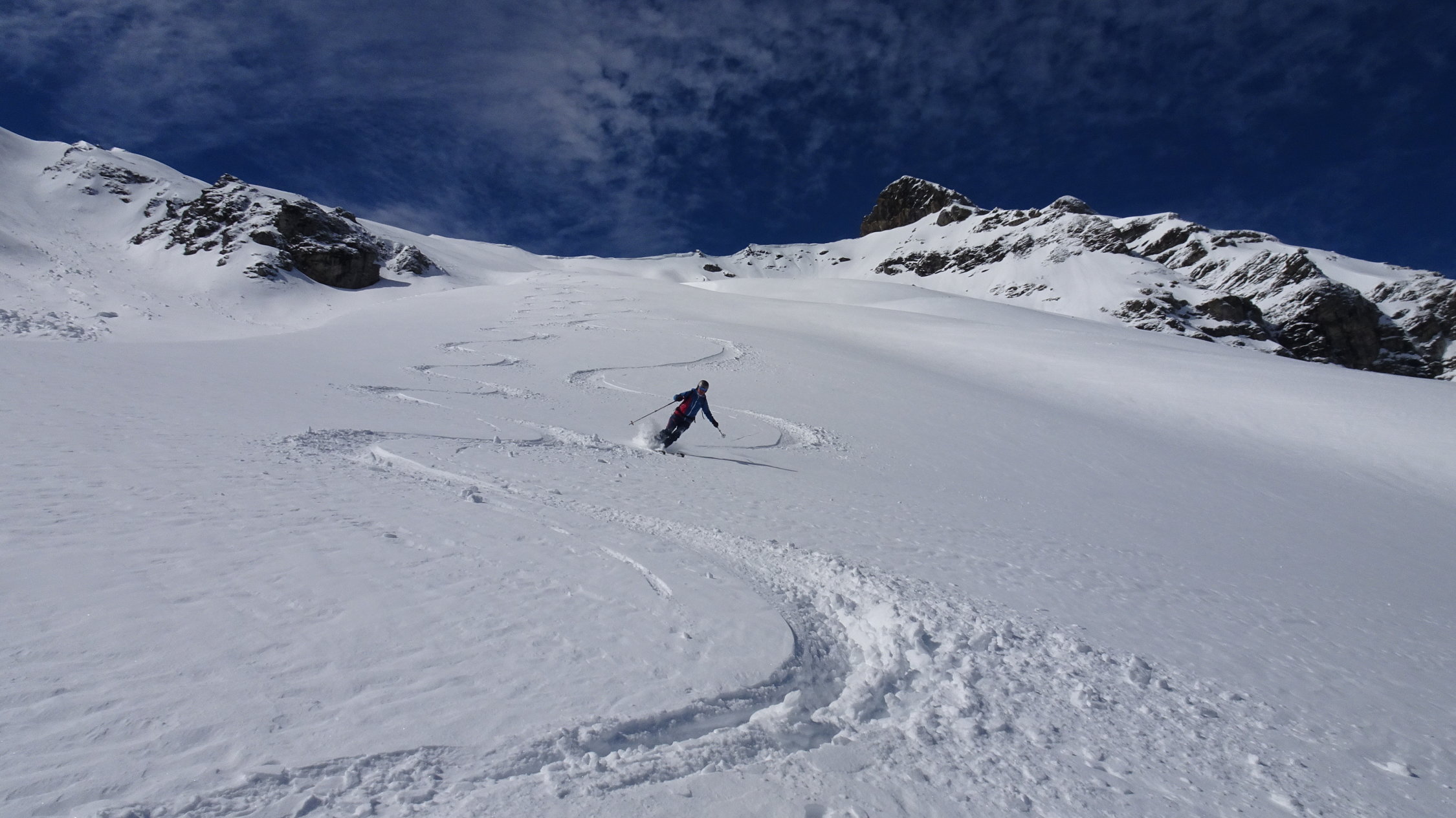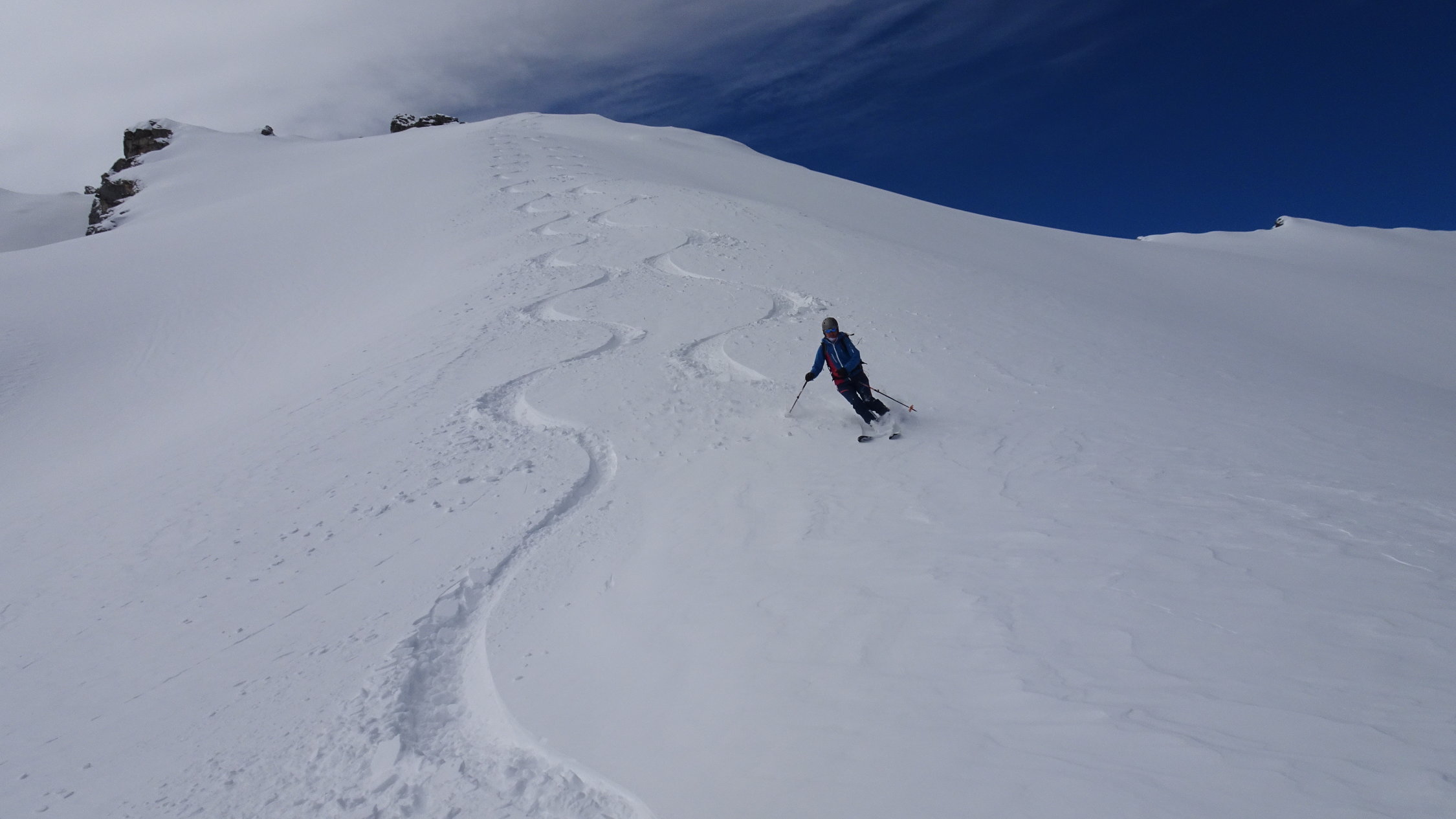 Ab da hat es durchgehend Schnee und oberhalb 2100m 10-30cm Pulverschnee einfach herrlich im Mai