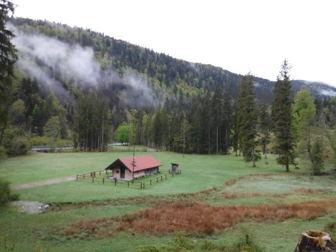 Tourenbeginn um 06:50 Uhr bei 7°C nach nächtlichen Regenschauern (über 1700 m Schnee) unter heiterem Himmel.