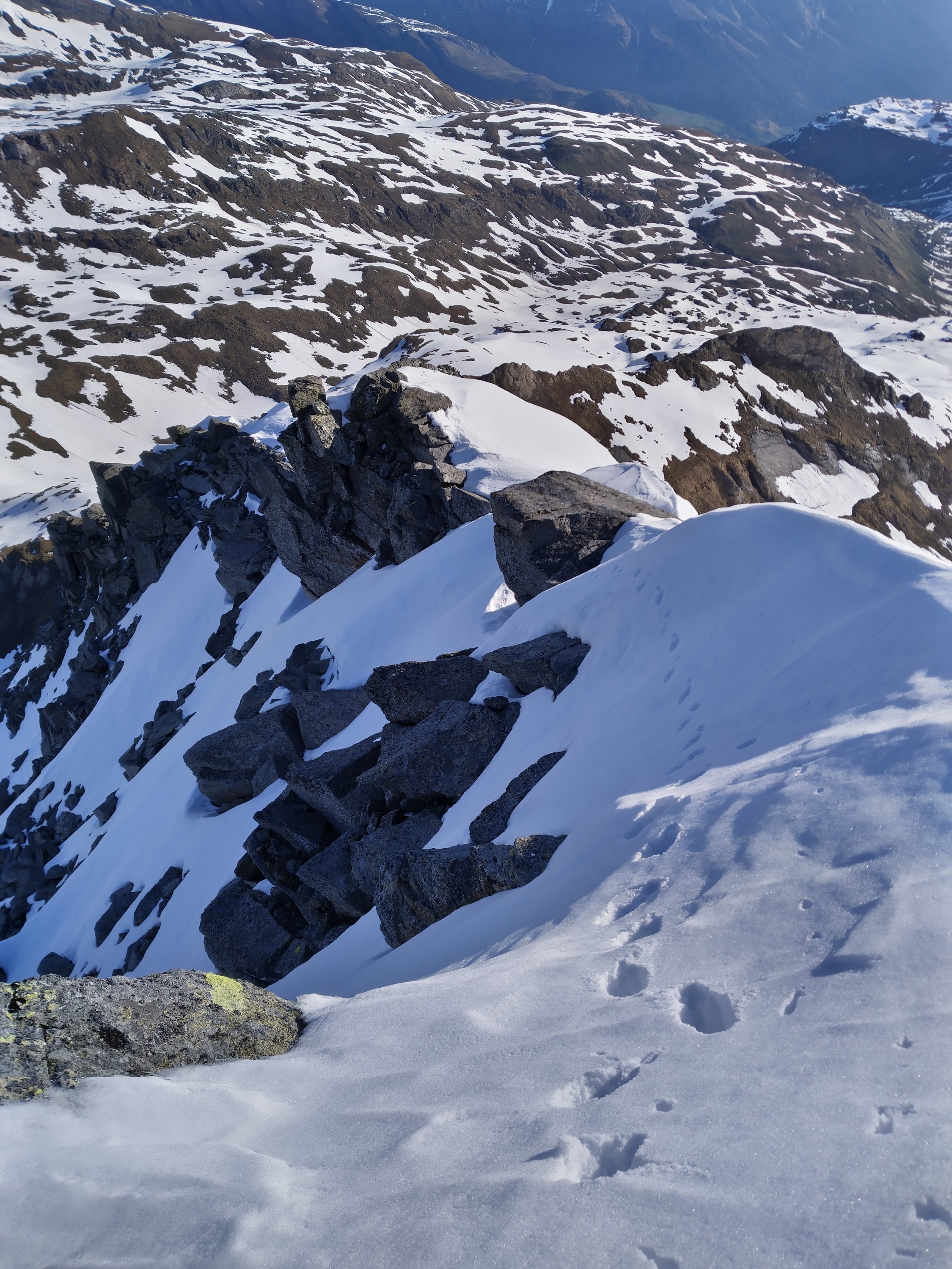 Auf dem Grat z.T. tiefe Spurarbeit aber allgemein gute Verhältnisse. Jetzt mit Spur bestimmt um einiges gängiger und sicher noch sehr lohnend am Wochenende.