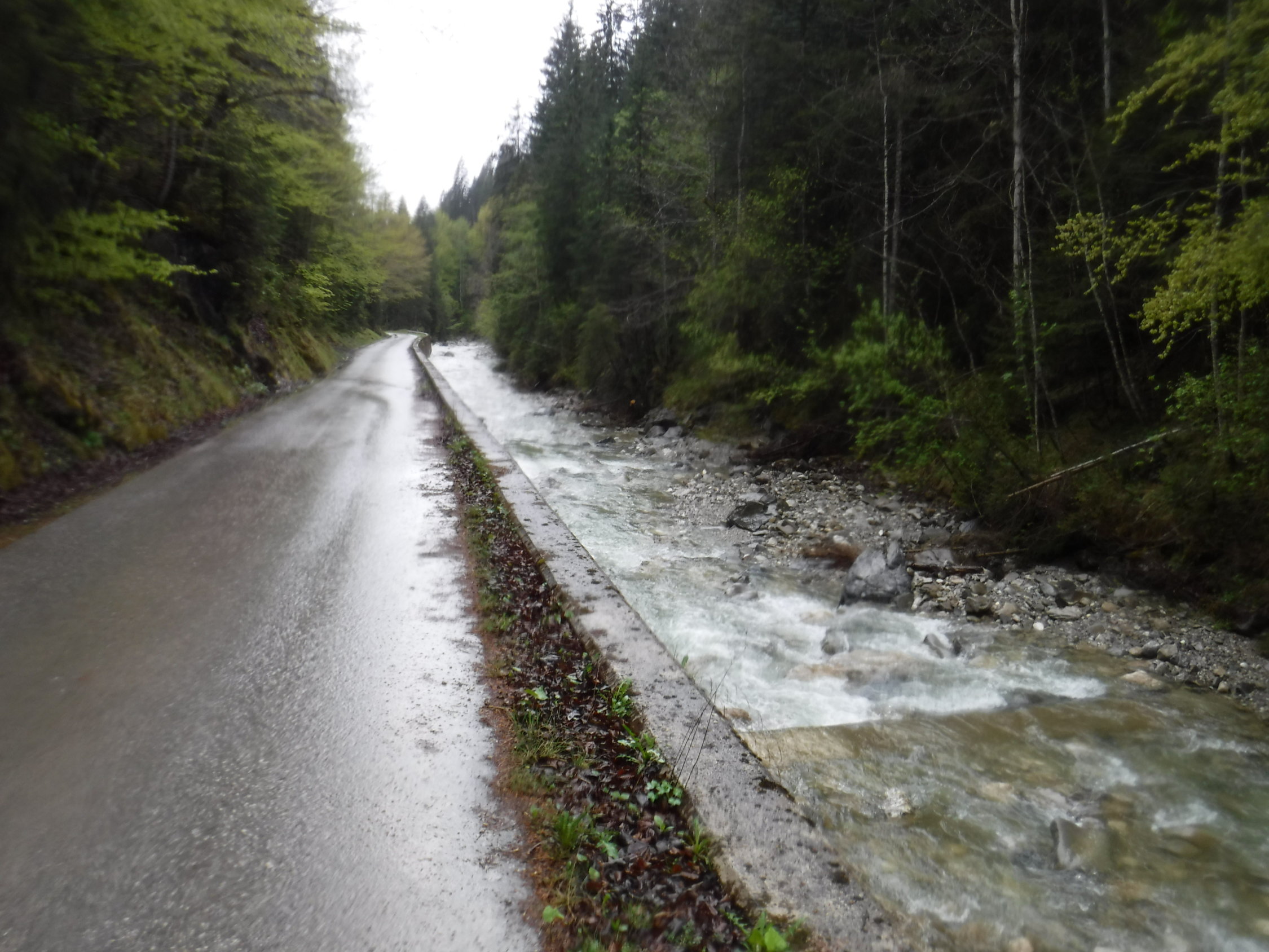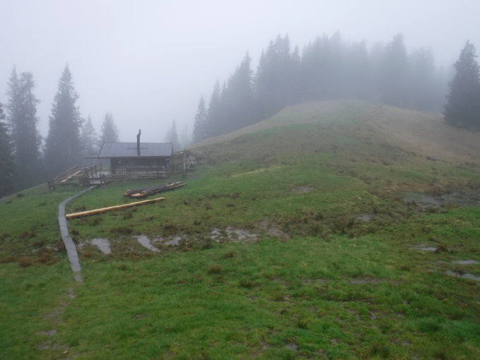 Tourenbeginn um 09:15 Uhr bei 15°C unter bedecktem Himmel, kurz danach unter leichtem, aber ständigem Dauerregen im oberen Bereich nahm der Hochnebel zu und die Temperatur sank auf 5°C. Entgegen der Wetterprognose wurde der Niederschlag des Tiefs intensiver, anstatt abzuziehen.