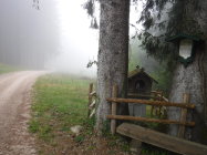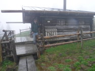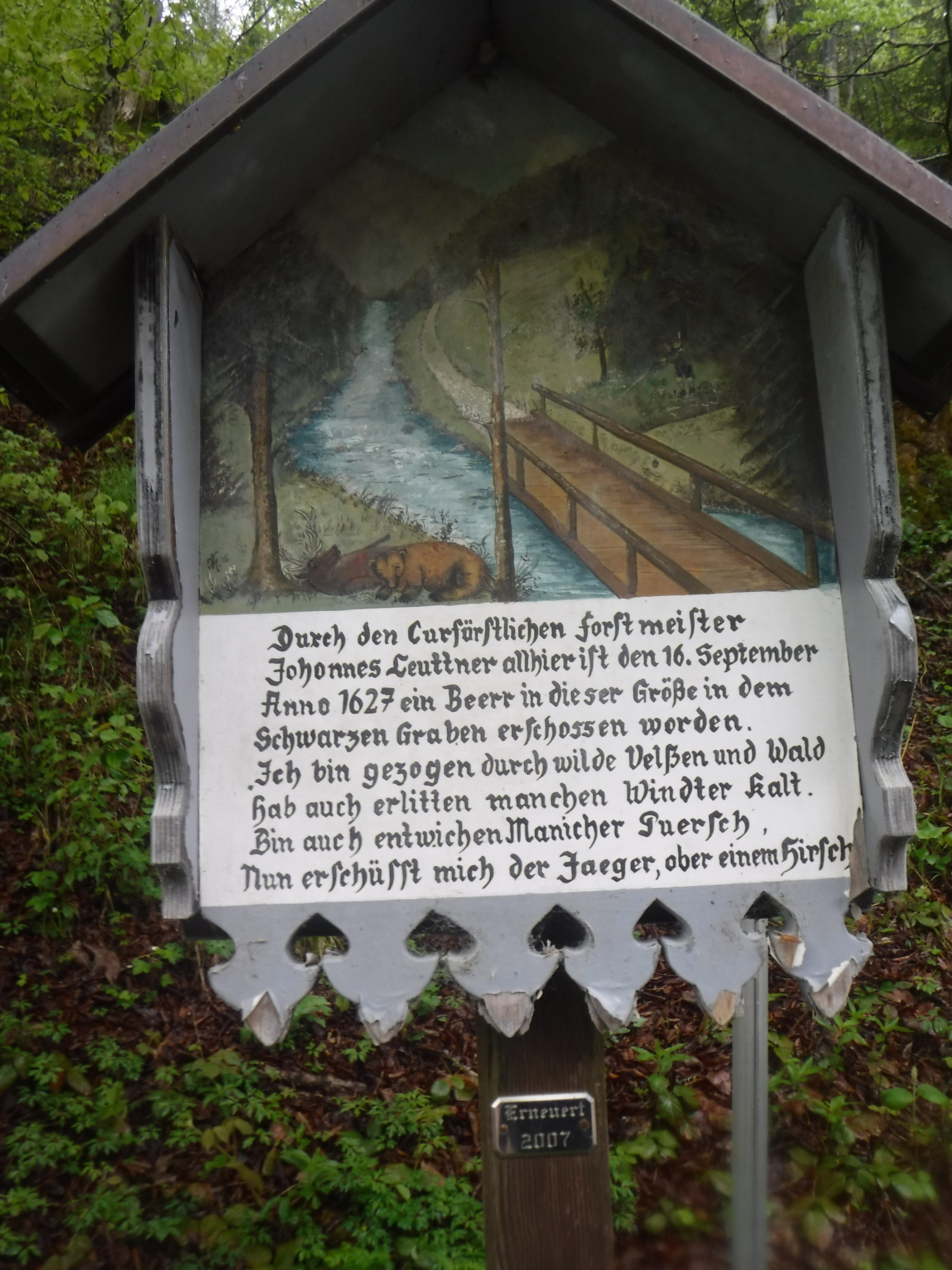 An der Bleick-Hütte begegnete mir vom Hohen Bleick absteigend ein einsamer Wanderer aus Sachsen-Anhalt mit Regenschirm. An der Grüblehütte machten 2 Forstarbeiter gerade Mittag mit einem Hacker-Pschorr. An der Reiselsbergbrücke sauste ein MTB’ler von der Kenzenhütte kommend an mir vorbei. Mehr traf man nicht an bei diesem Hundswetter an diesem Tag. Das rote Gipfelbuch auf der Niederbleick vom 11.11.2018 ist fast voll. Wer bringt ein neues mit ?