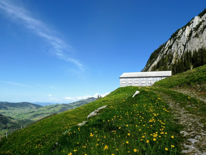 Abstieg heute über Chlus - Ebenalp - Gartenwald - Erstböhl - Lehmen. Auf dem Wanderweg Chlus - Ebenalp liegt teilweise noch etwas Schnee, unterhalb der Ebenalp ist Schnee kein Thema mehr.