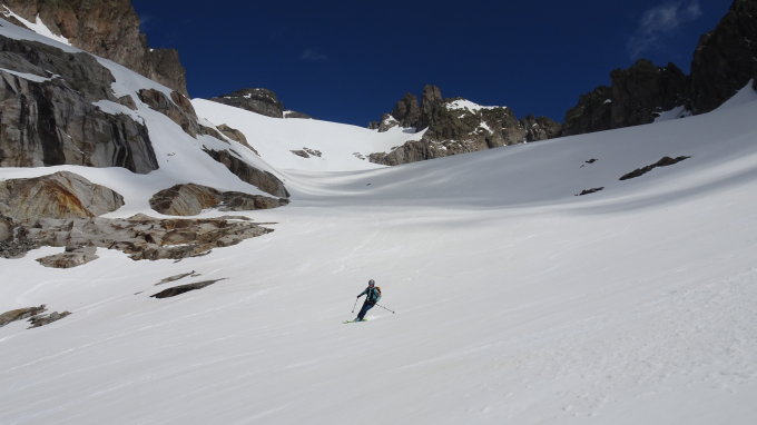 Im schlusshang sind wir aus Sicherheitsgründen ganz rechts aufgestiegen was sich als sichere route erwiesn hat denn Tanja hat noch beobachtet wie ein Skifahrer und ein Snowborder ein Schneebrett auslösten und den snowborder einige Meter mitgerissen hat,aber unverletzt.