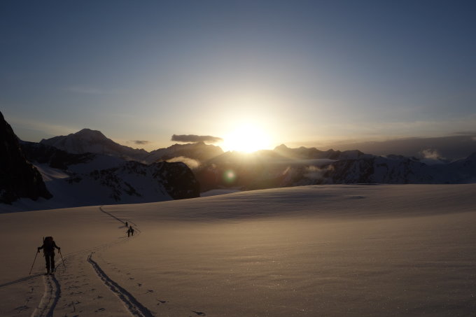Start um 5:30 von der Britaniahütte. Ca. 5-10 cm Neuschnee, am Gipfel um ca. 10:00.Kurz vorm Gipfelgrat liegt Pulver auf Blankeis, besser unterhalb Skidepot und mit Steigeisen hoch. Abfahrt war um 10:00 im Pulver perfekt. Um 11:30 nach Gegenanstieg wieder bei der Hütte.