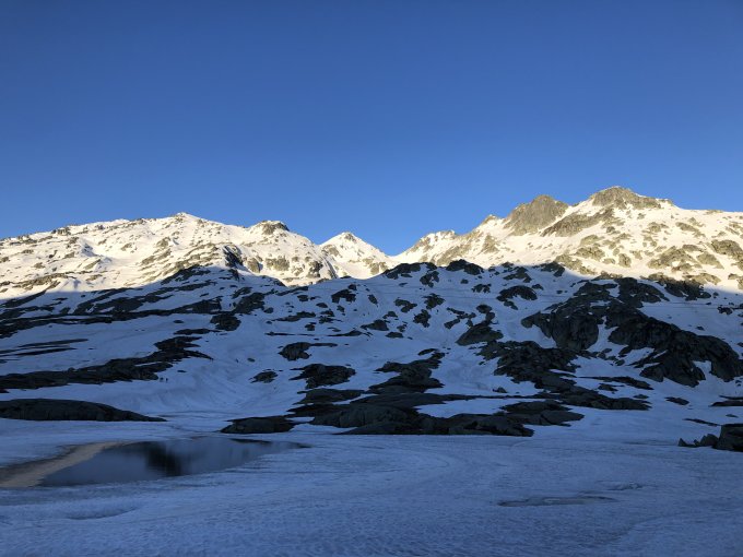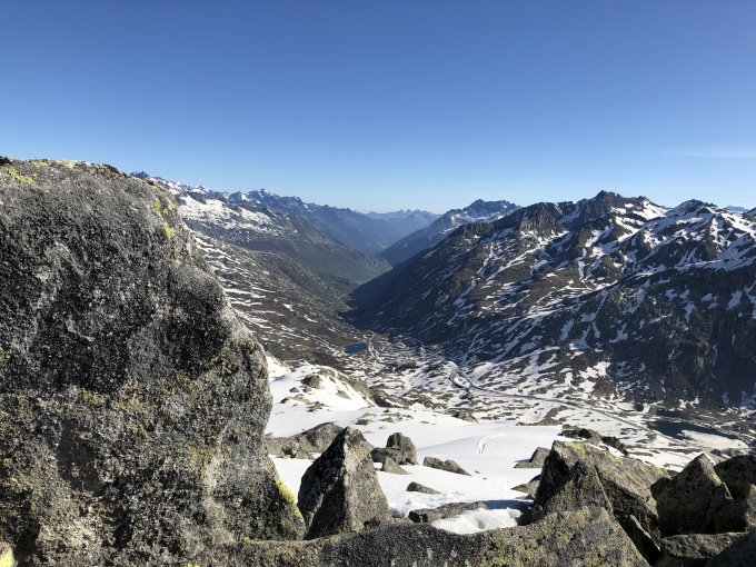 Wie überall (und entgegen dem, was man hier hin und wieder lesen kann) hat es sehr wenig Schnee. Giubin und Posmeda bereits vorbei, weit hinauf aper. Weiter unten am Pass auch nix mehr möglich. Lucendro/Fibbia geht noch einige Zeit ohne Tragen, aber generell kommt es mir vor wie Ende Juni und nicht 21. Mai.