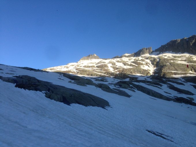 Früh starten. Eventuell im Bächligraben aufsteigen spart Tragzeit. Steiler als Normalroute. Bach im Graben wird zum Vorschein kommen... aber noch gut machbar.
