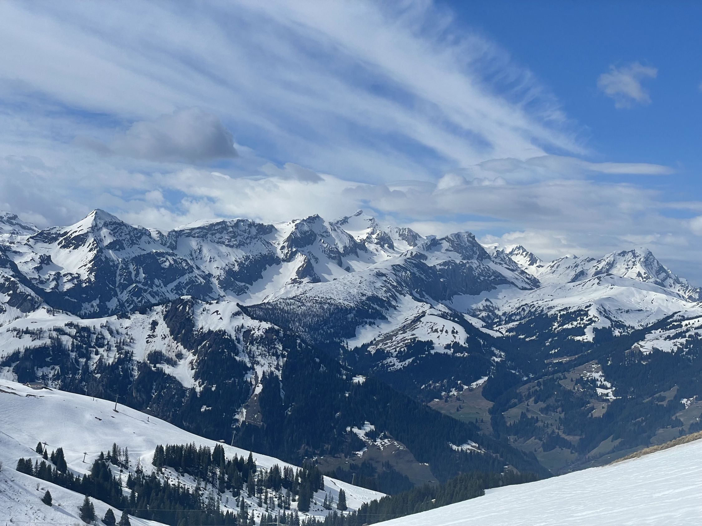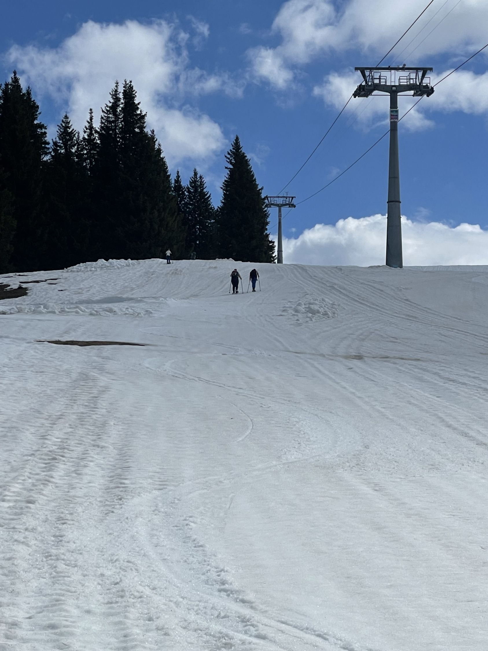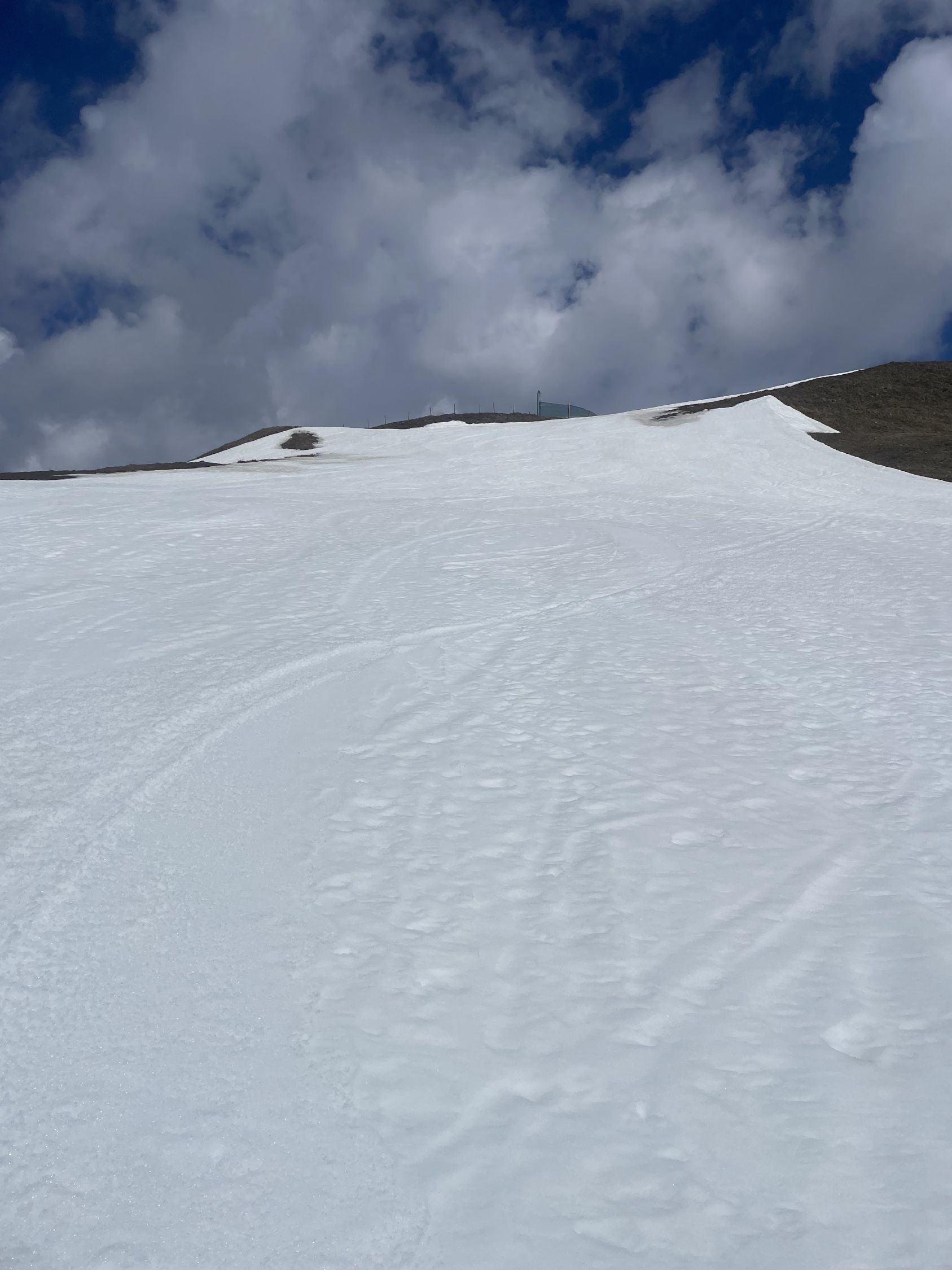 Als ich kürzlich auf dem Leiterli war (also dem in der Lenk, nicht dem daheim), dachte ich mir beim Blick auf die andere Talseite, dass man es dort auch mal probieren sollte. Die bewölkte Nacht und der etwas unsichere Wetterbericht bestärkten mich darin, das heute zu tun. Mit dem Auto geht es bis Bühlberg, von da an den Pisten nach zum Hahnenmoos und weiter zum Ziel. Das Wetter war entsprechend dem Bericht wechselhaft, aber die Regenjacke konnte im Rucksack bleiben. Oben wartete ich ein Sonnenfenster für die Abfahrt ab. Das kam auch und bis unterhalb Hahnenmoos war es ausgezeichnet. Darunter dann etwas viele Ratrsckspuren, aber das hat es nun mal. Ganz unten wieder sehr gut.