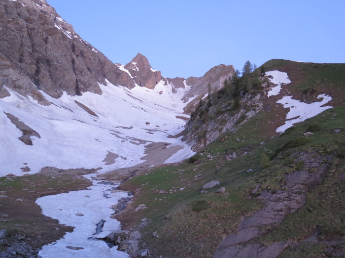 Im moment ist der Aufstieg und Abfahrt über die Moräne machbar ohne Skis zu tragen. Wird sich aber bald ändern. Ich wählte für den Aufstieg den Direkt Weg von der Wildhornhütte zum Chilchligletscher. Harsteisen waren aber angenehm. Sowie auch beim Gipfelhang.