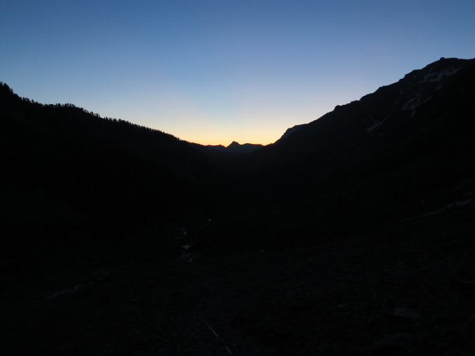 Am Morgen ca. 5°C um 4.45 beim Start. Ca. 45min Ski tragen bis zum Schnee. Ca. Pkt. 1897.