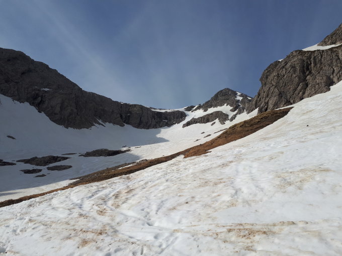 Ab Querung recgs langsam schi anziehen. Schnee war weich gute Trittstufen in den Steilstellen, keine Ausrutschgefahr.