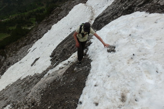 Am Nordhang unterhalb des Stachlerkopf, hat es noch kleine Schneefelder. Mit der nötigen Vorsicht ist die Tour sehr gut machbar.