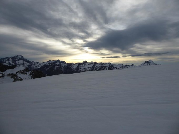 Am Morgen wirkte das Wetter noch nicht ganz vertrauenserweckend. Bereits viele Wolken, warm. Wider Erwarten hielt das Wetter aber bis um 15 Uhr nachmittags und es gab so viel Sonne, dass die Abfahrt um ca. 10 Uhr perfekt aufgesulzt war. Das Fluchthorn bot rund 1000 Höhenmeter perfekte Sulzabfahrt!