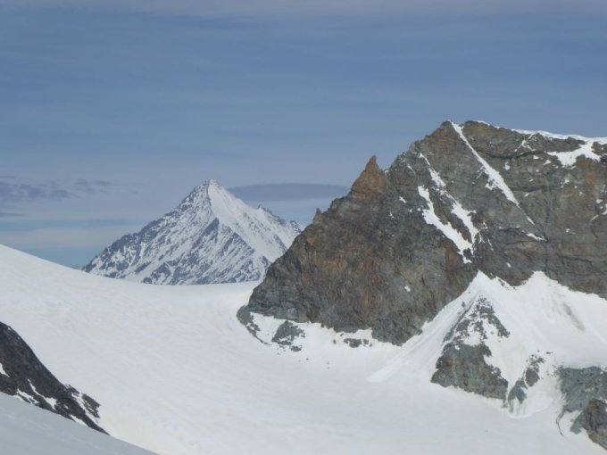 Nach dem Strahlhorn am Vortag (s. Eintrag im Gipfelbuch) etwas kürzer getreten. Ausserdem wartet noch Abfahrt und Abstieg nach Saas-Fee auf uns.