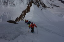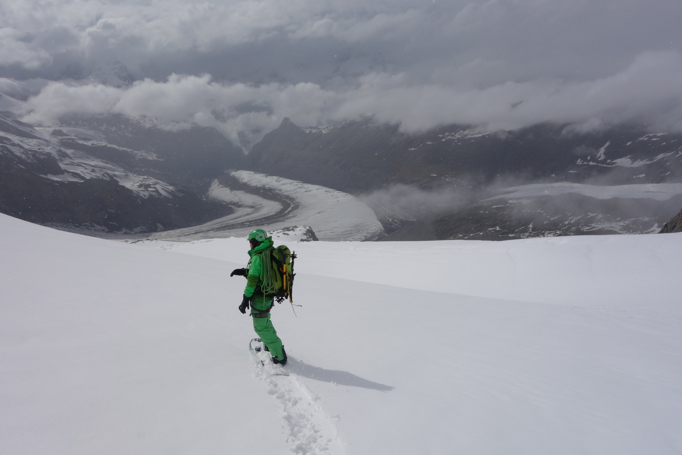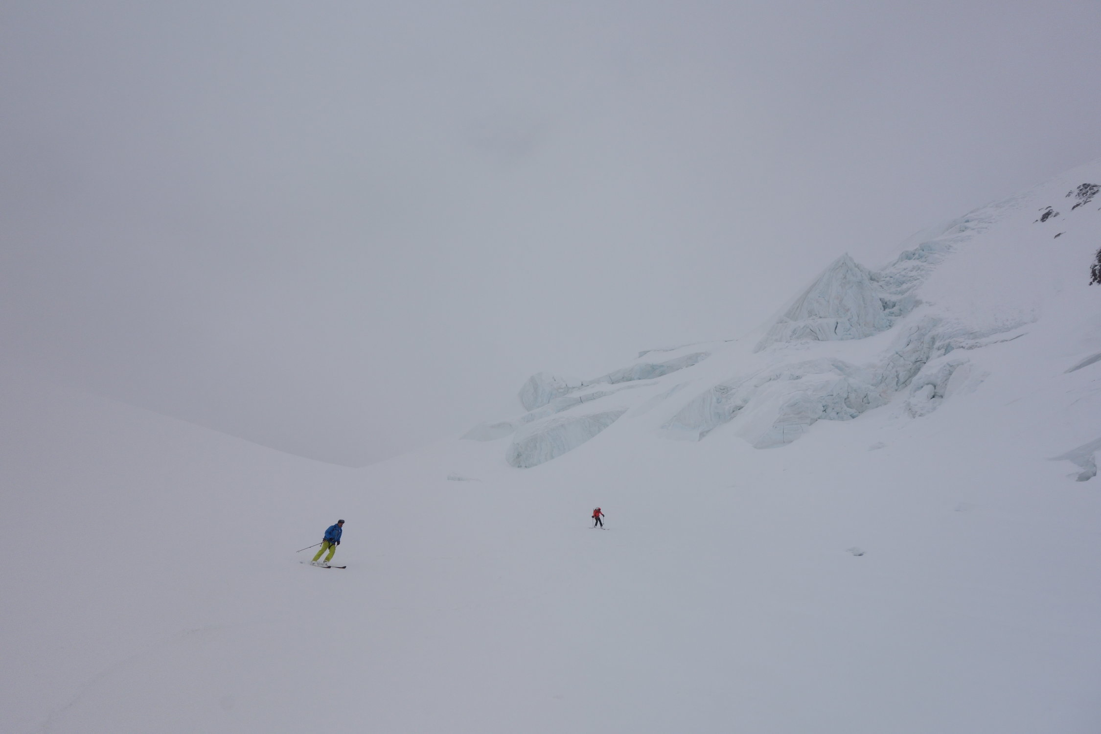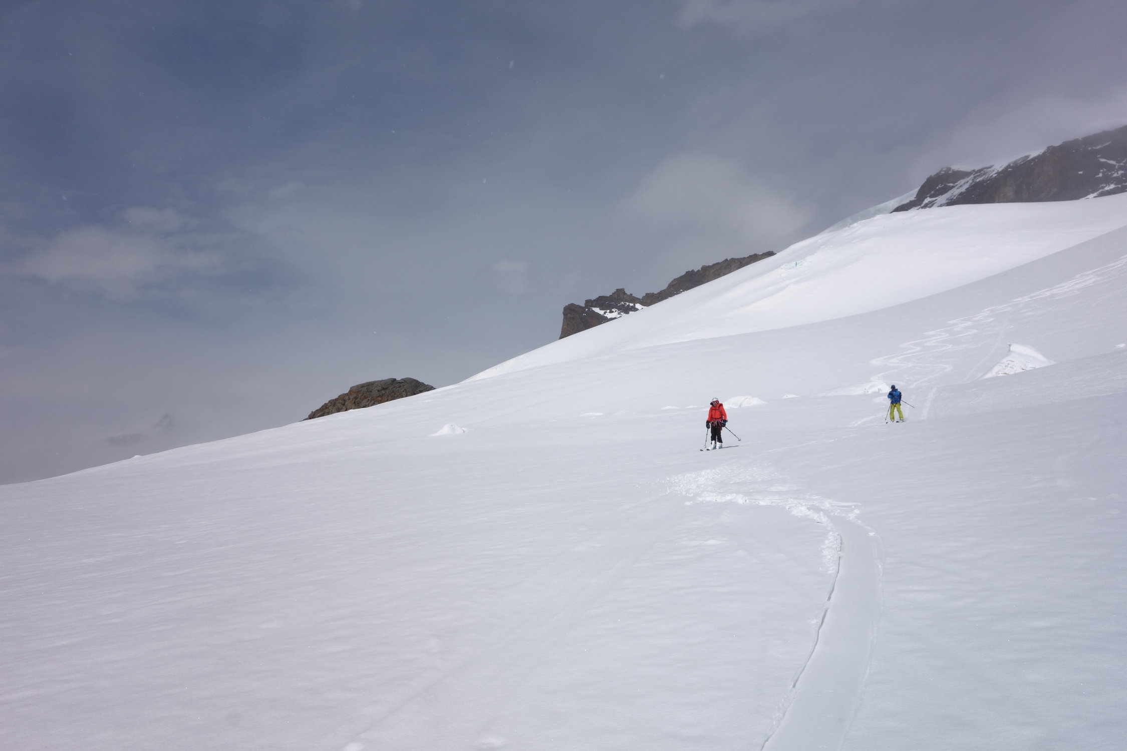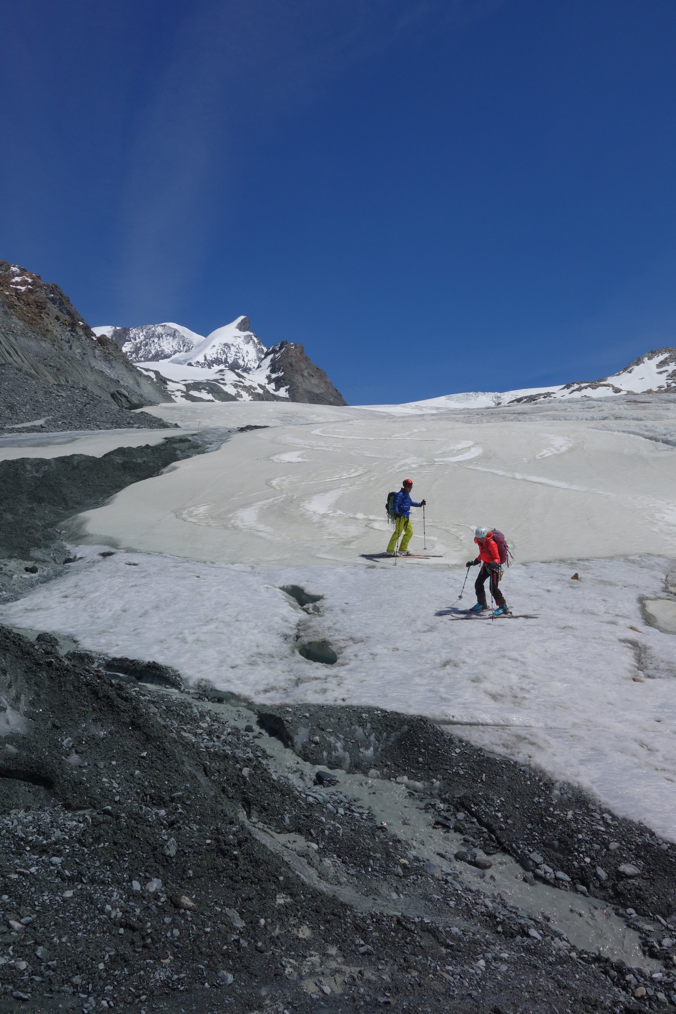 Sind raus über den Stockhornpass und Findelgletscher am nächsten Tag, Abfahrt bis ca. 2600m, dann ca. 3h Skitragen bis Zermatt.