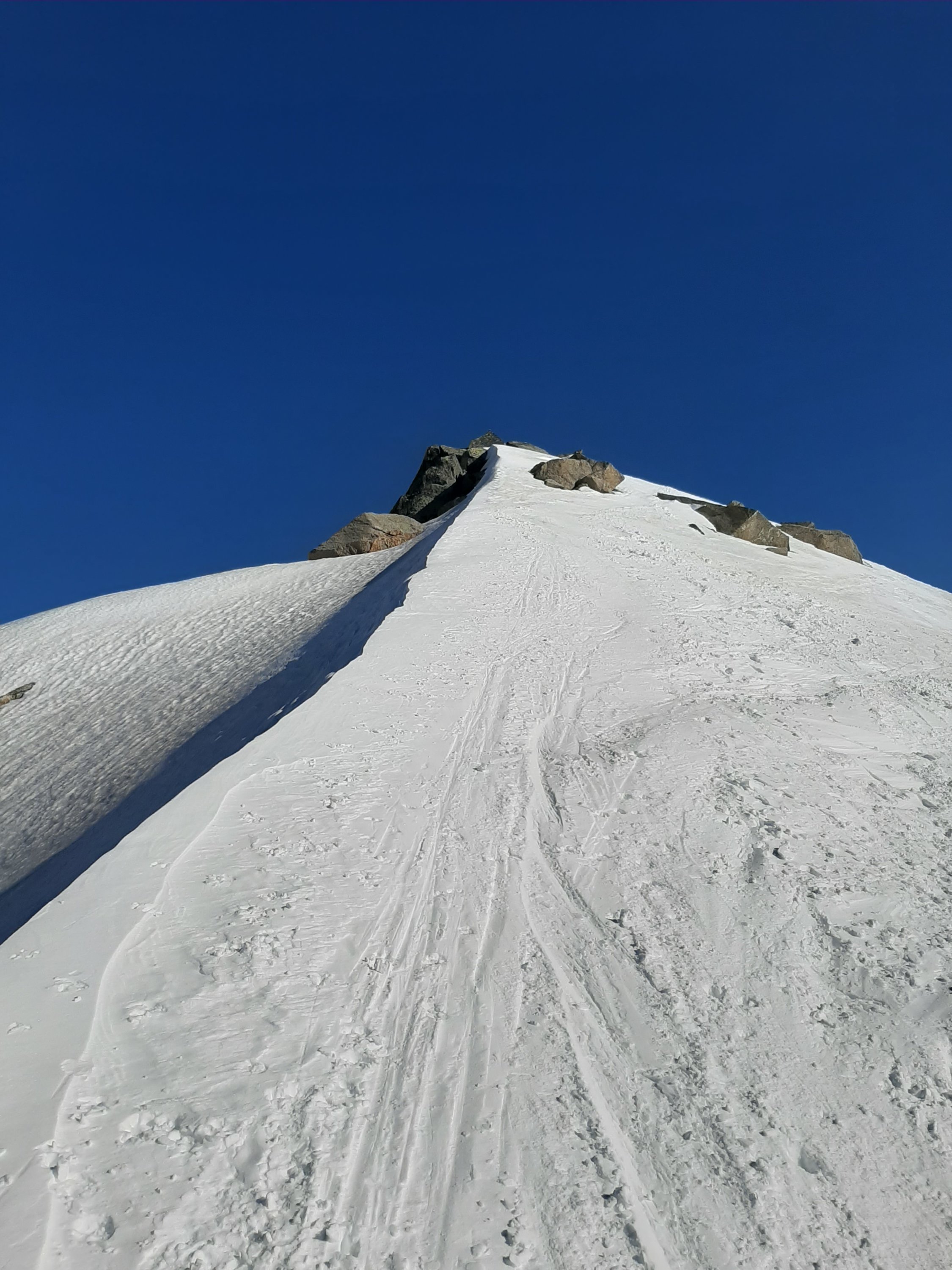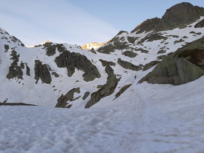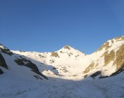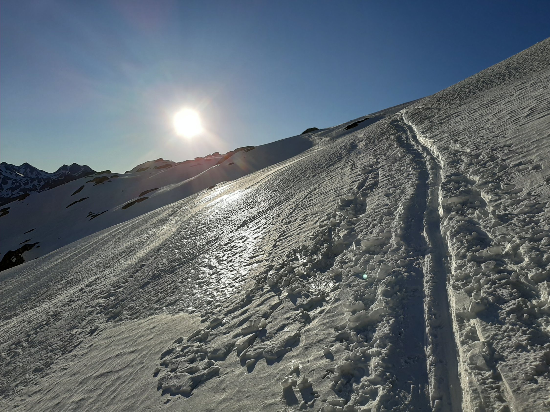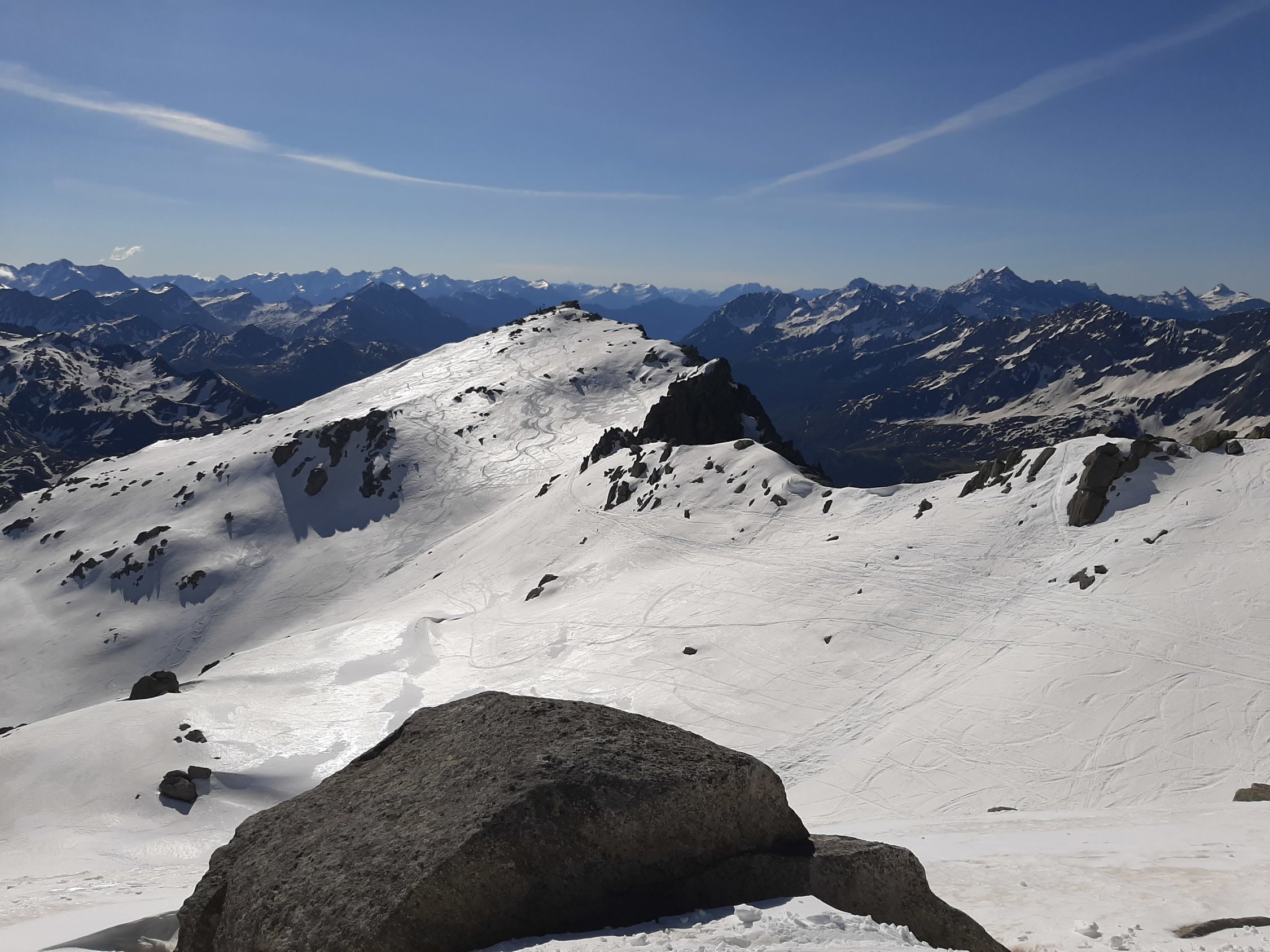 Der kürzlich publizierte Eintrag hat mich motiviert, heute diese Tour auch zu machen. Dank guter Abstrahlung waren die Verhältnisse (sehr) gut - für "ausgezeichnet" müsste der Schnee noch etwas komfortabler sein. In zwei Passagen waren die Harscheisen äusserst willkommen, es ersparte viel Kraftanstrenung und verlieh ein Gefühl der Sicherheit. Auch heute blies die Bise, aber man wurde mit einer grandiosen Sicht belohnt. Da ich zu früh oben war und auf etwas weicheren Schnee wartete, bin ich noch zur P. della Valette gequert, habe aber den Gipfel nicht bestiegen.