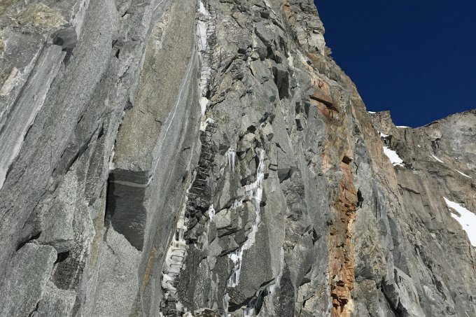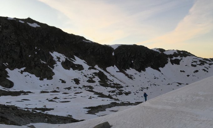 Fussaufstieg sehr gut eingerichtet mit üppigen Sicherungsmöglichkeiten. Bis auf eine vereiste Stelle im klettersteigähnlichen unteren Teil problemlos obwohl ziemlich stark ausgeapert. Das Gelände ist aber weniger steil als man meinen könnte und die Felsen sind recht solide. Es lohnt sich auf keinen Fall, die Skis wegen den 150 Hm vom Sattel zum Gipfel mitzunehmen, ausser man hat vor, über den Rhonegletscher (zur Trifthütte oder so) abzufahren (oder man ist so spät dran, dass man einsinkt...)