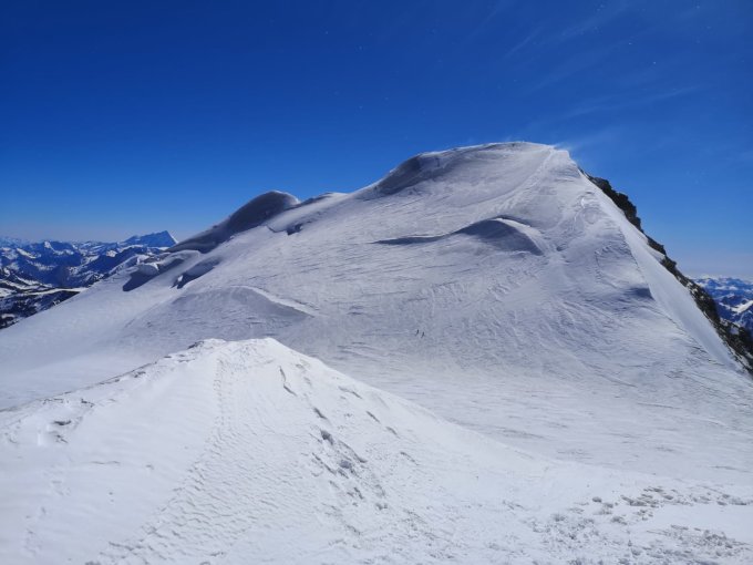 Combin de Valsorey: Mit Ski auf den verharschten Gipfel und runter die Ski getragen.