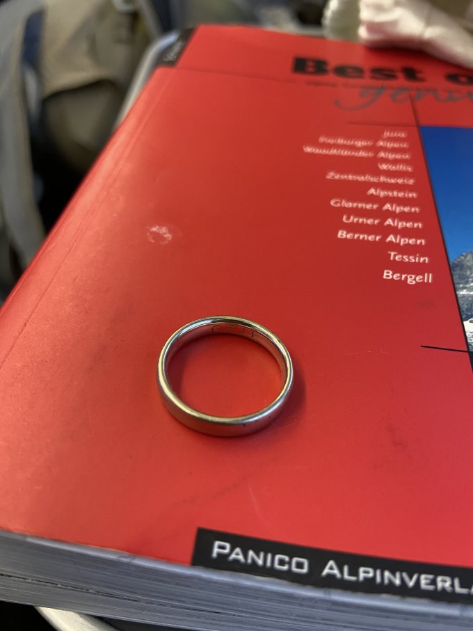 Ehering gefunden —> steht Fred drin. Werde ihn, sollte ich nichts hören, am Dienstag aufs Fundbüro in Zürich schicken!