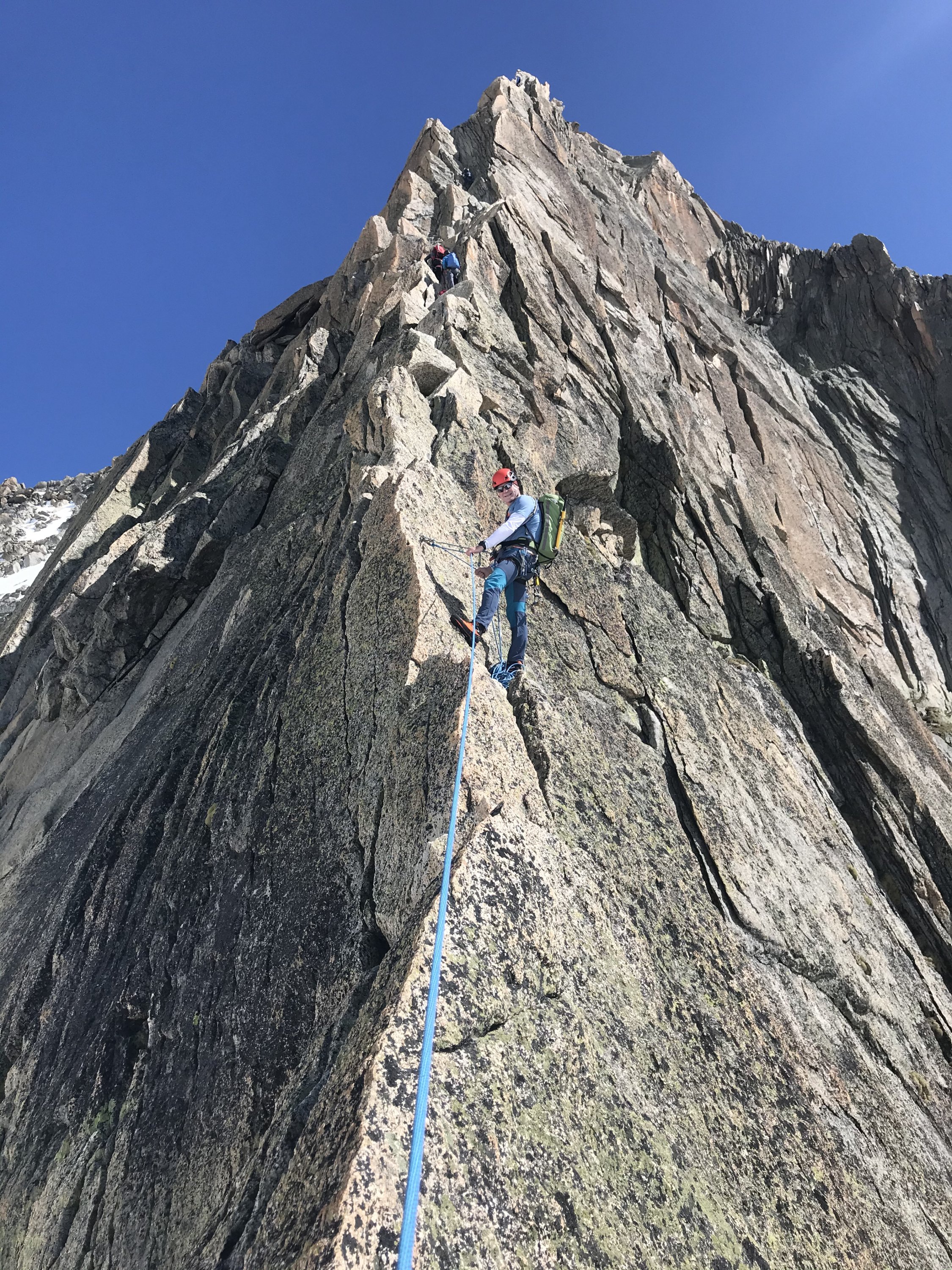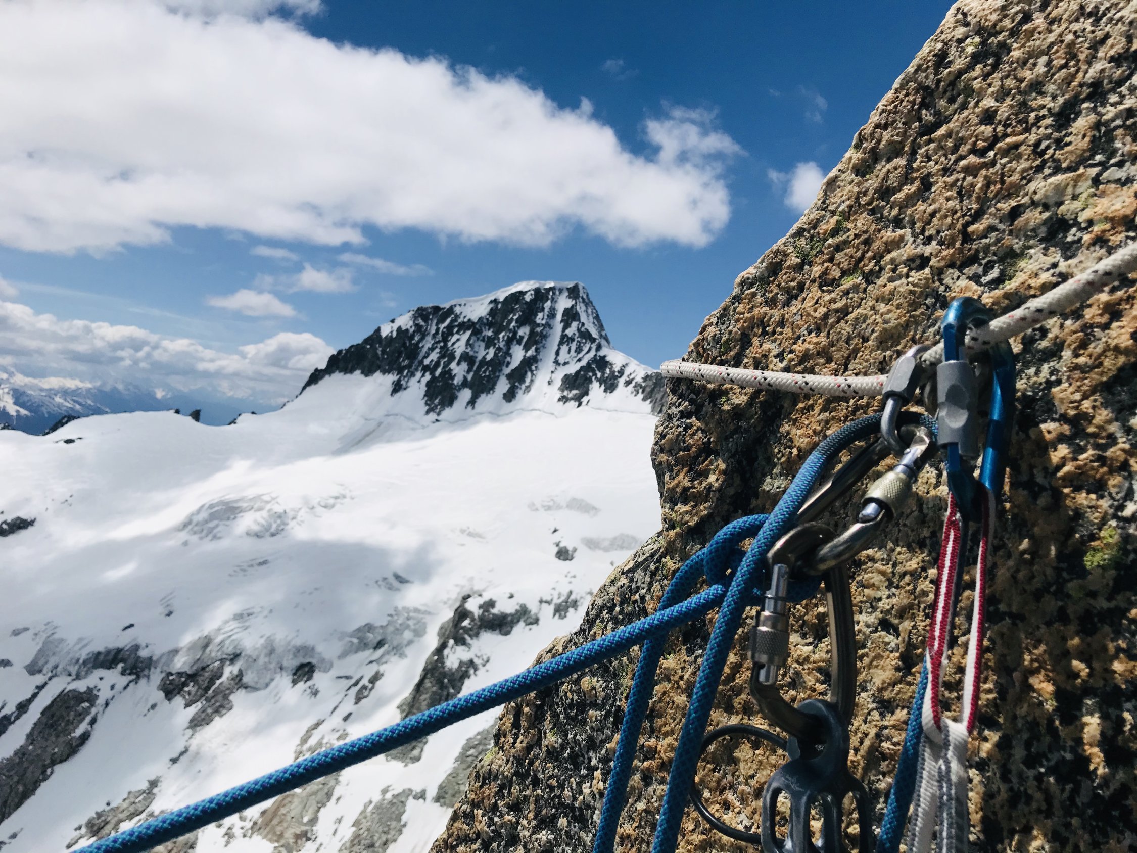 Kletterei war top, sehr gut abgesichert. Wir stiegen als letzte ein und konnten vom Grat die absteigenden Seilschaften beobachten, was uns Zeit für die Abstiegswahl einsparte.