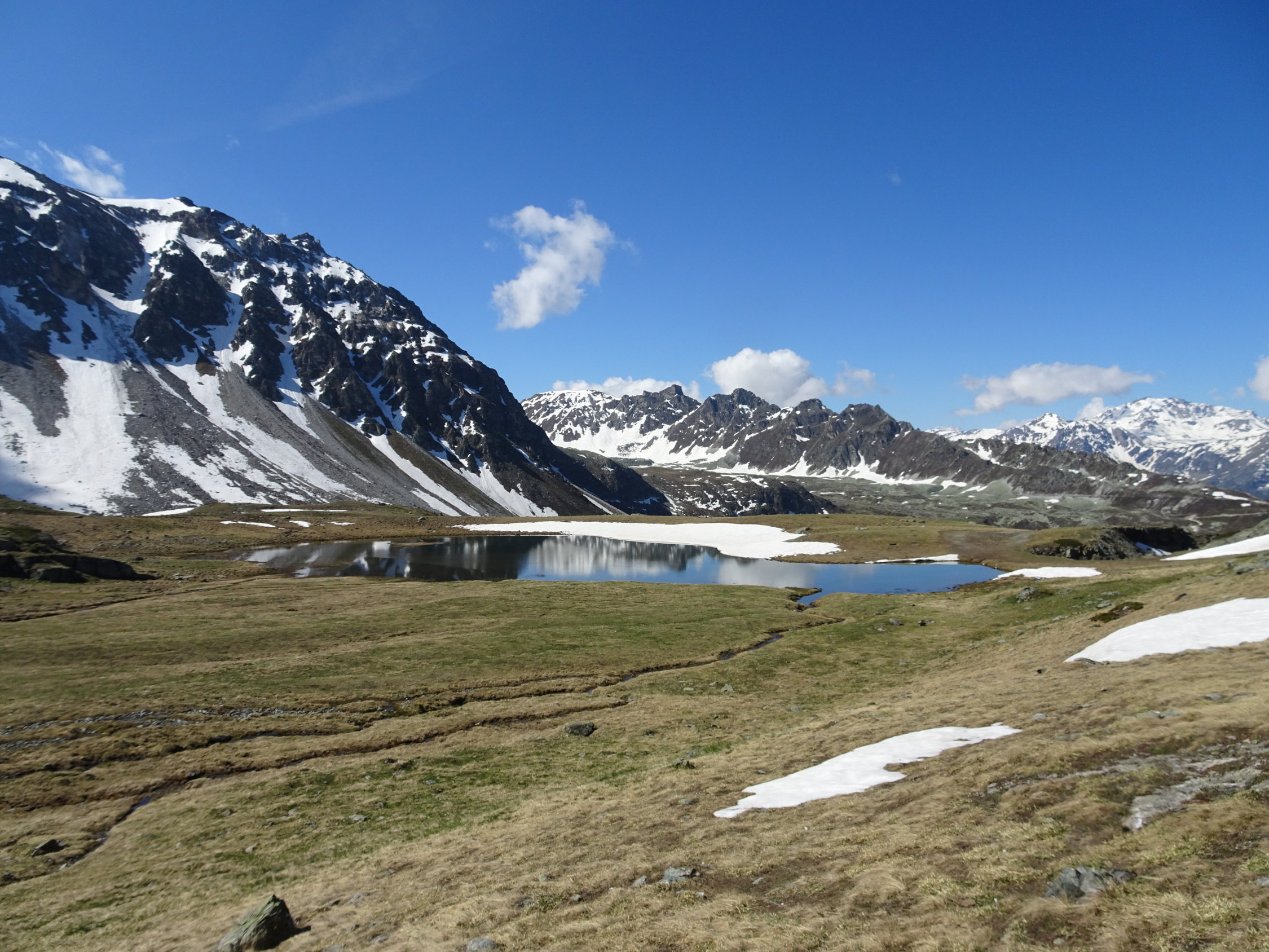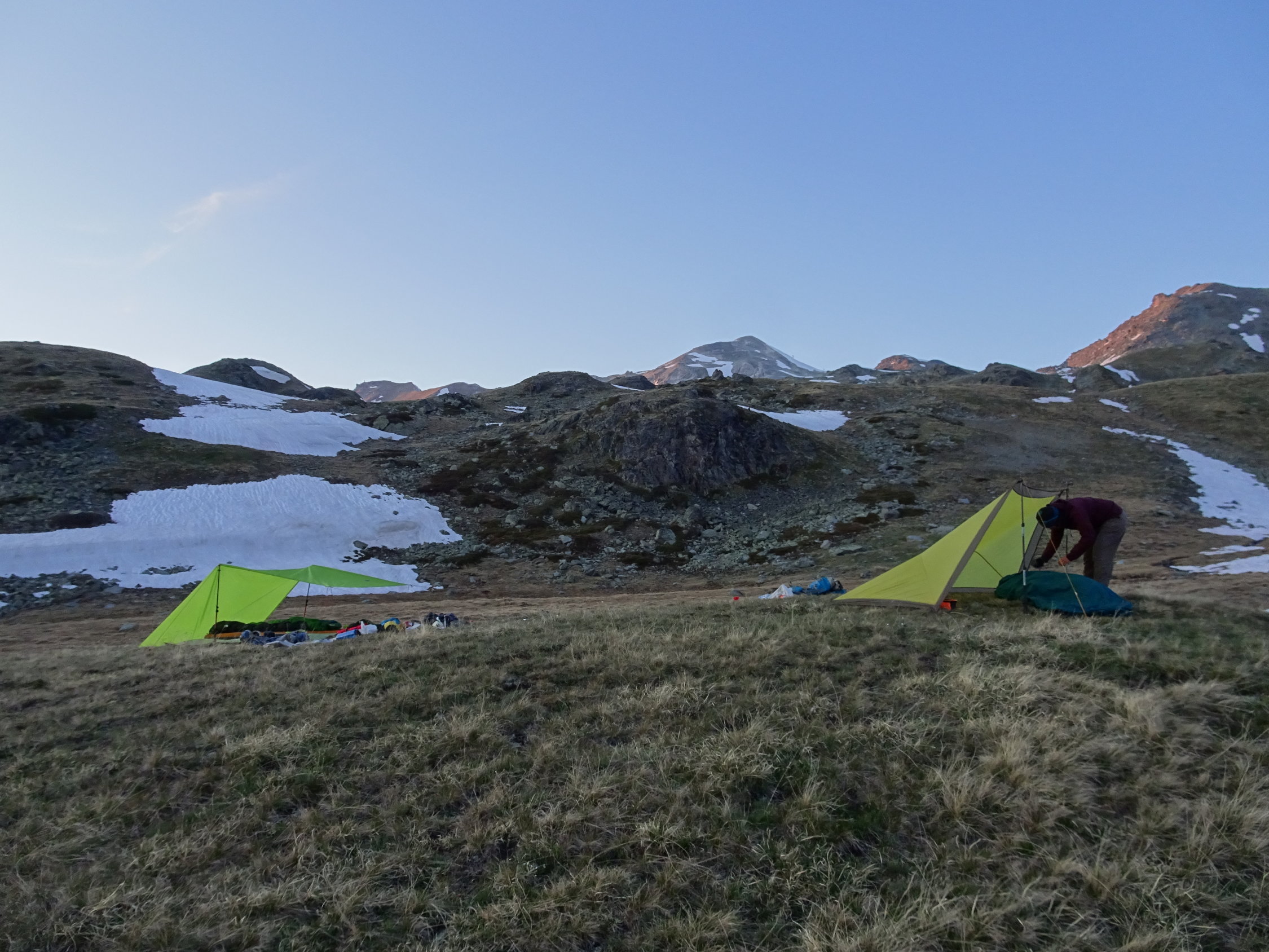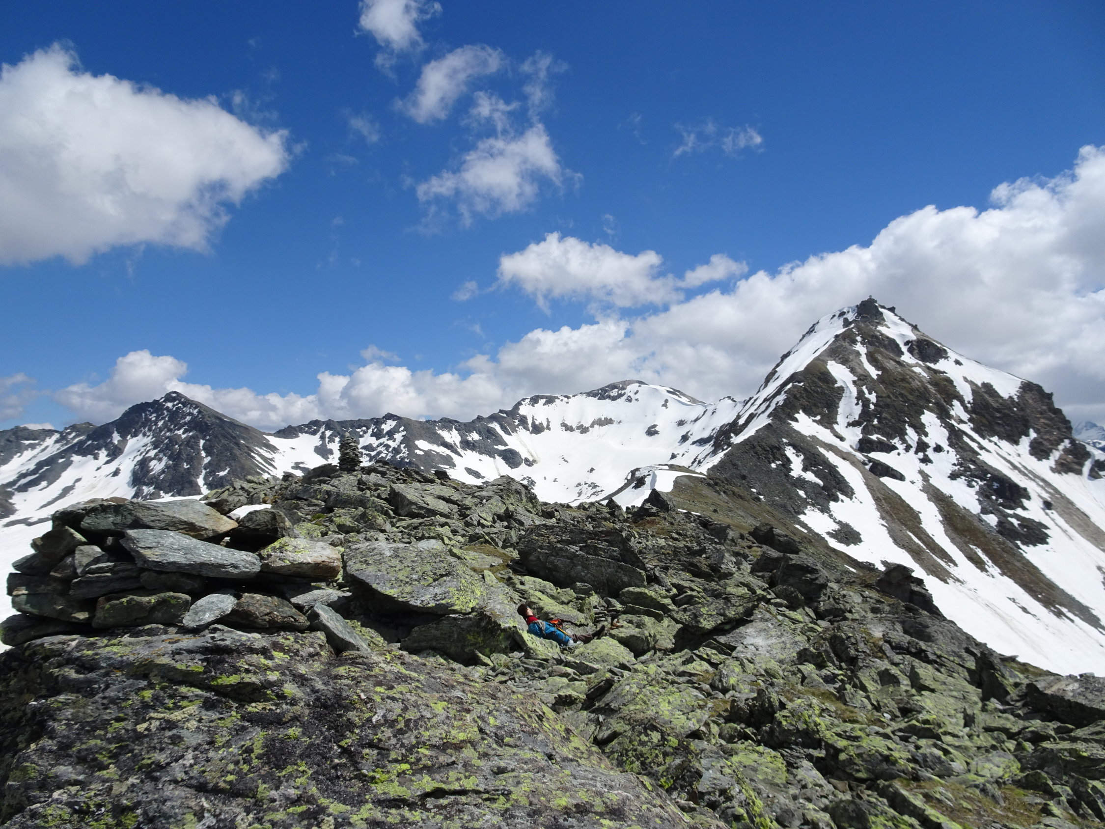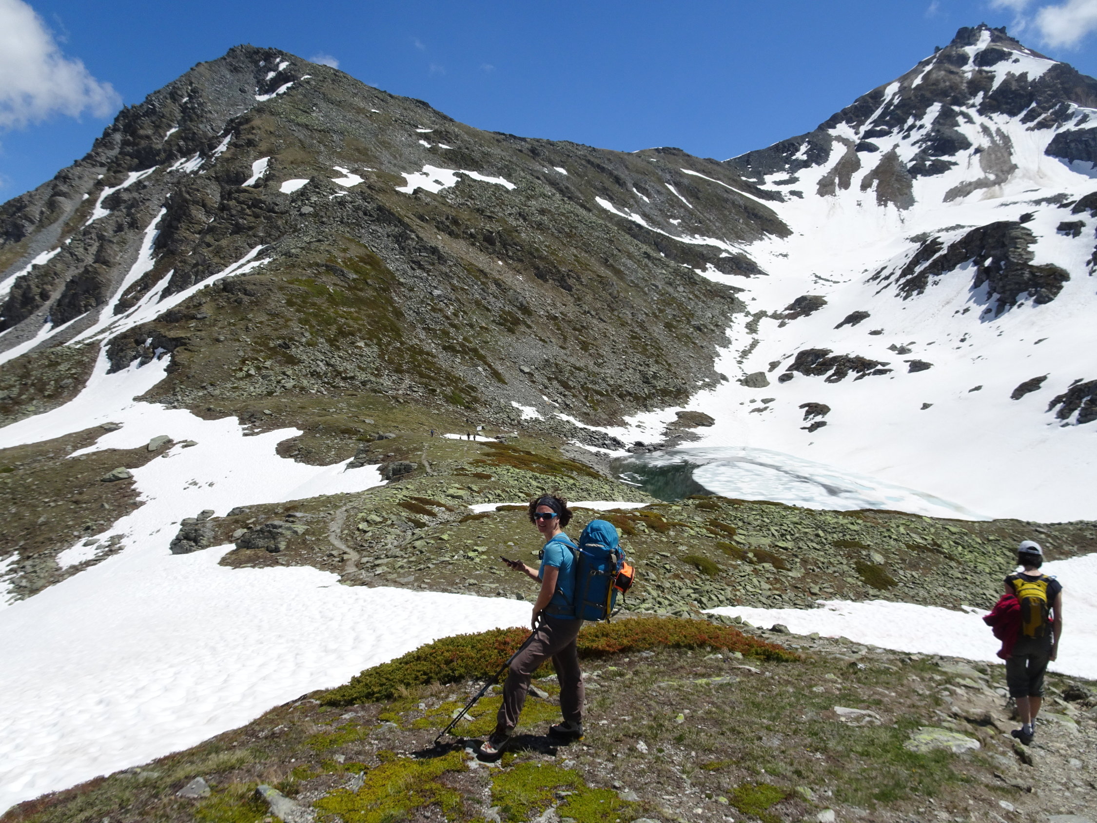 Wir sind danach über den direkten Weg nach Nordwesten runter (hat noch etwas Schnee) und dann über den Geländerücken vor dem Pas de Boeuf gegen Südwesten abgestiegen. Unterhalb des Lac de l'Armina haben wir biwakiert und sind am Folgetag via Hôtel Weisshorn, Le Chiesso nach Ayer runtergestiegen.