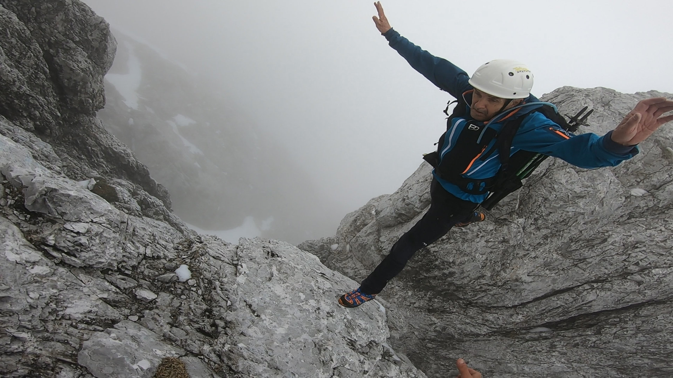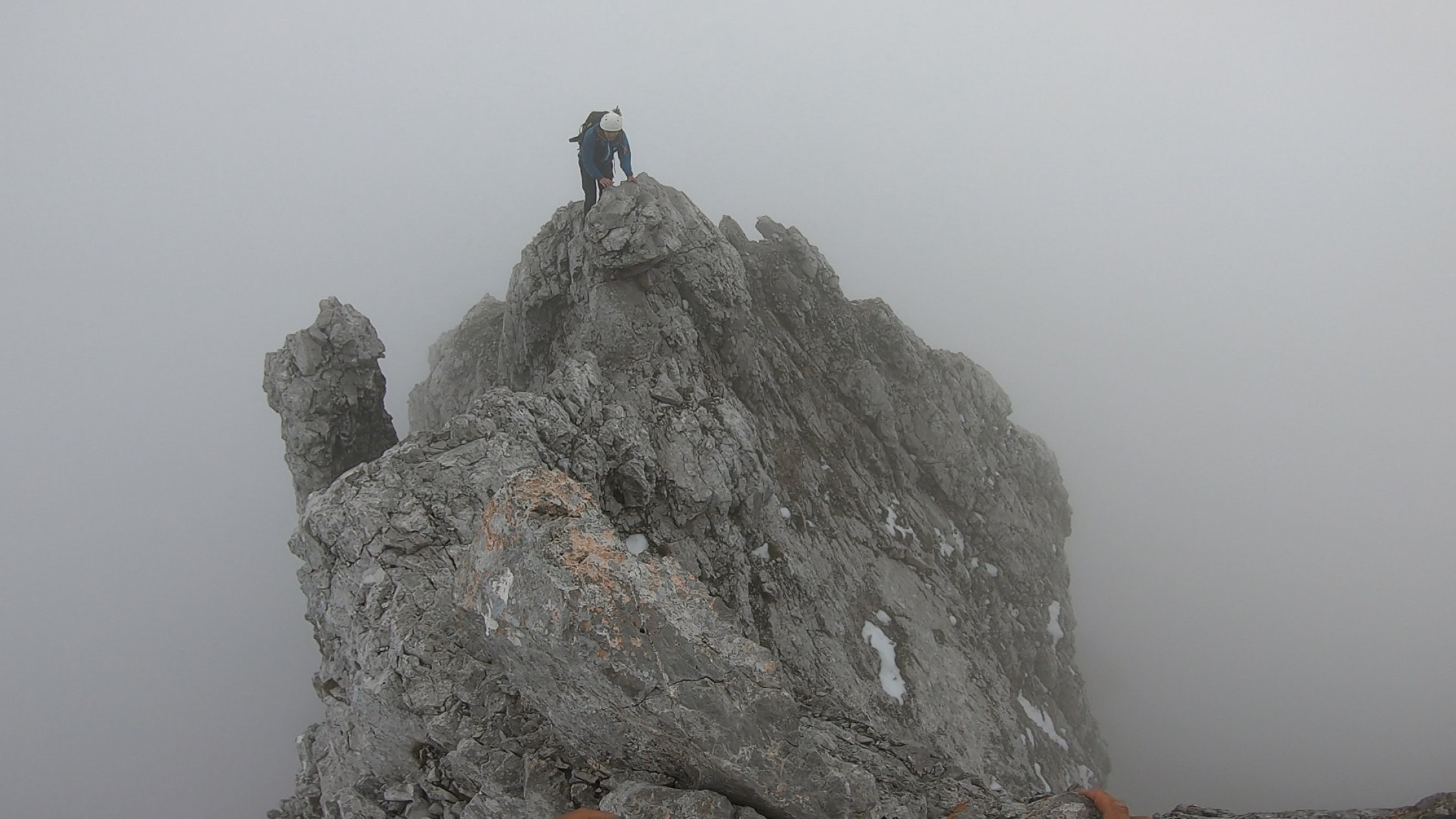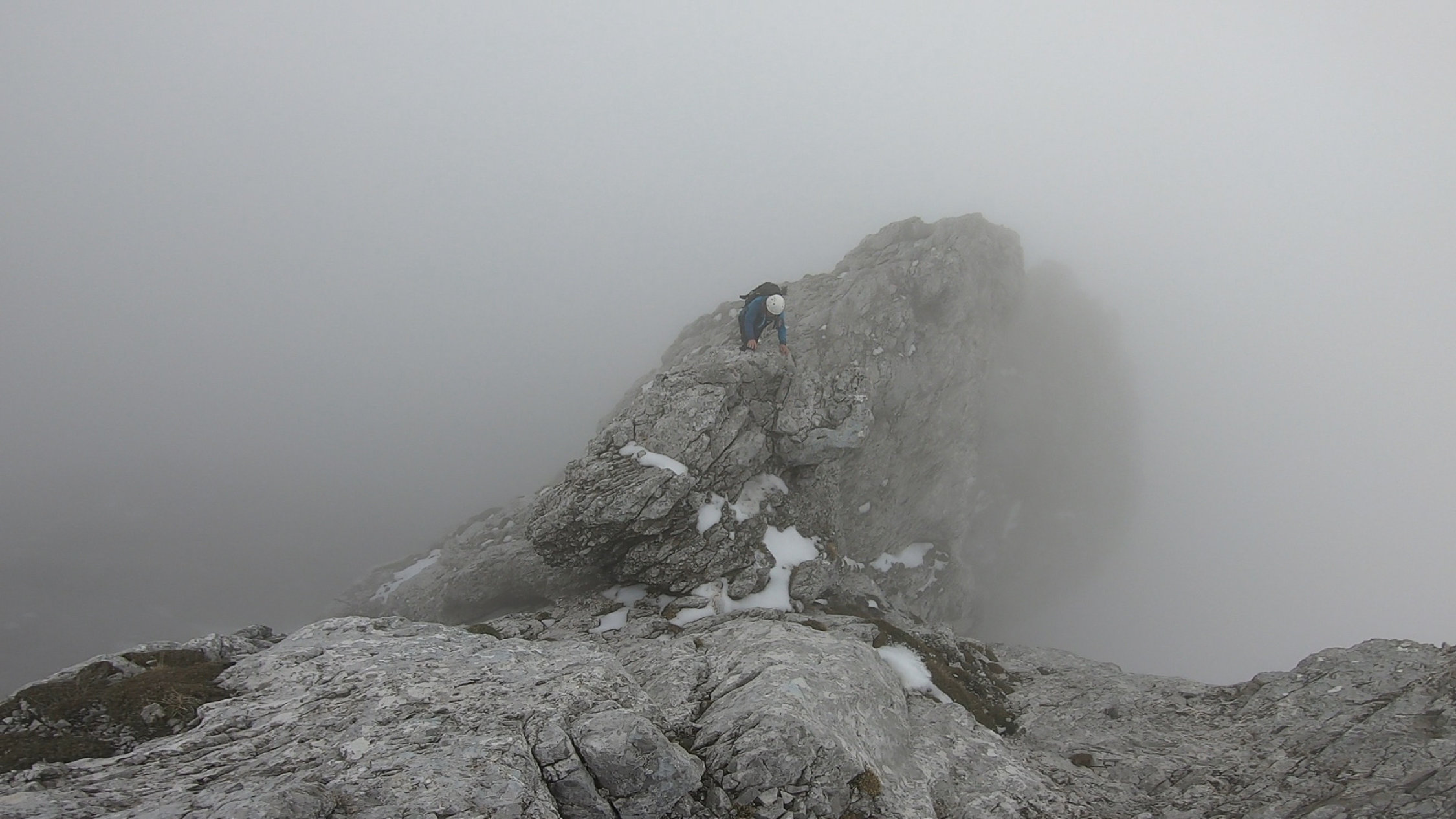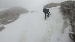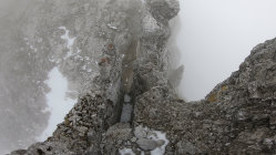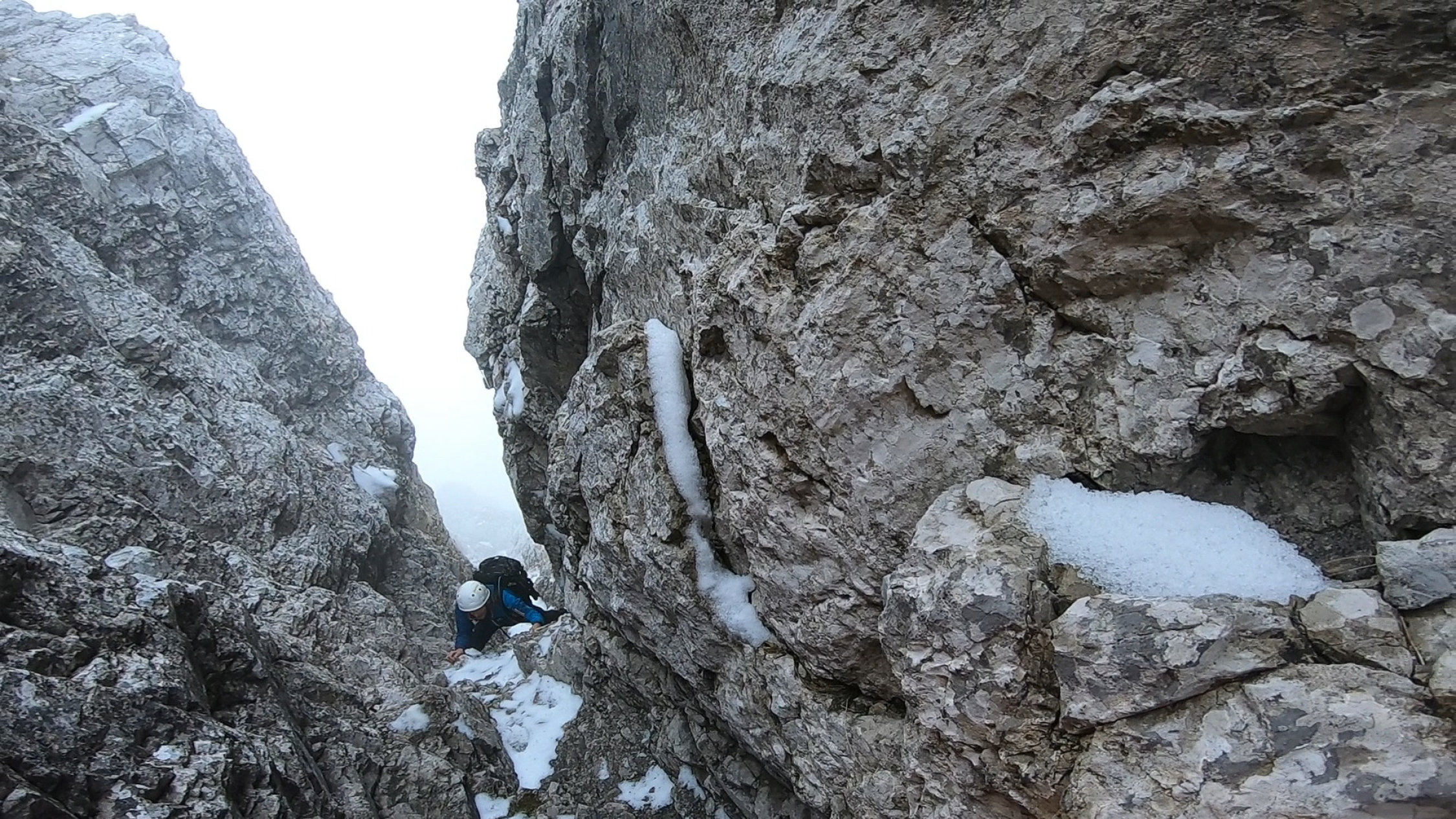 Etwas Neuschnee machten den Fels zum Teil etwas schmierig.