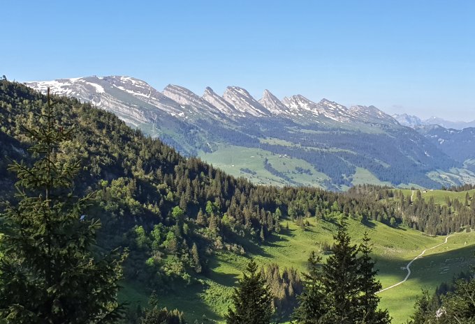 Da die Bahnen diese Woche noch nicht in Betrieb und die Zustiege lang sind, sehr wenig Leute unterwegs im Alpstein.