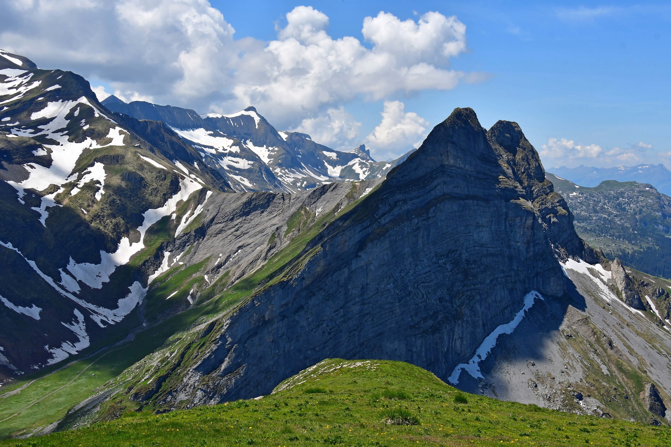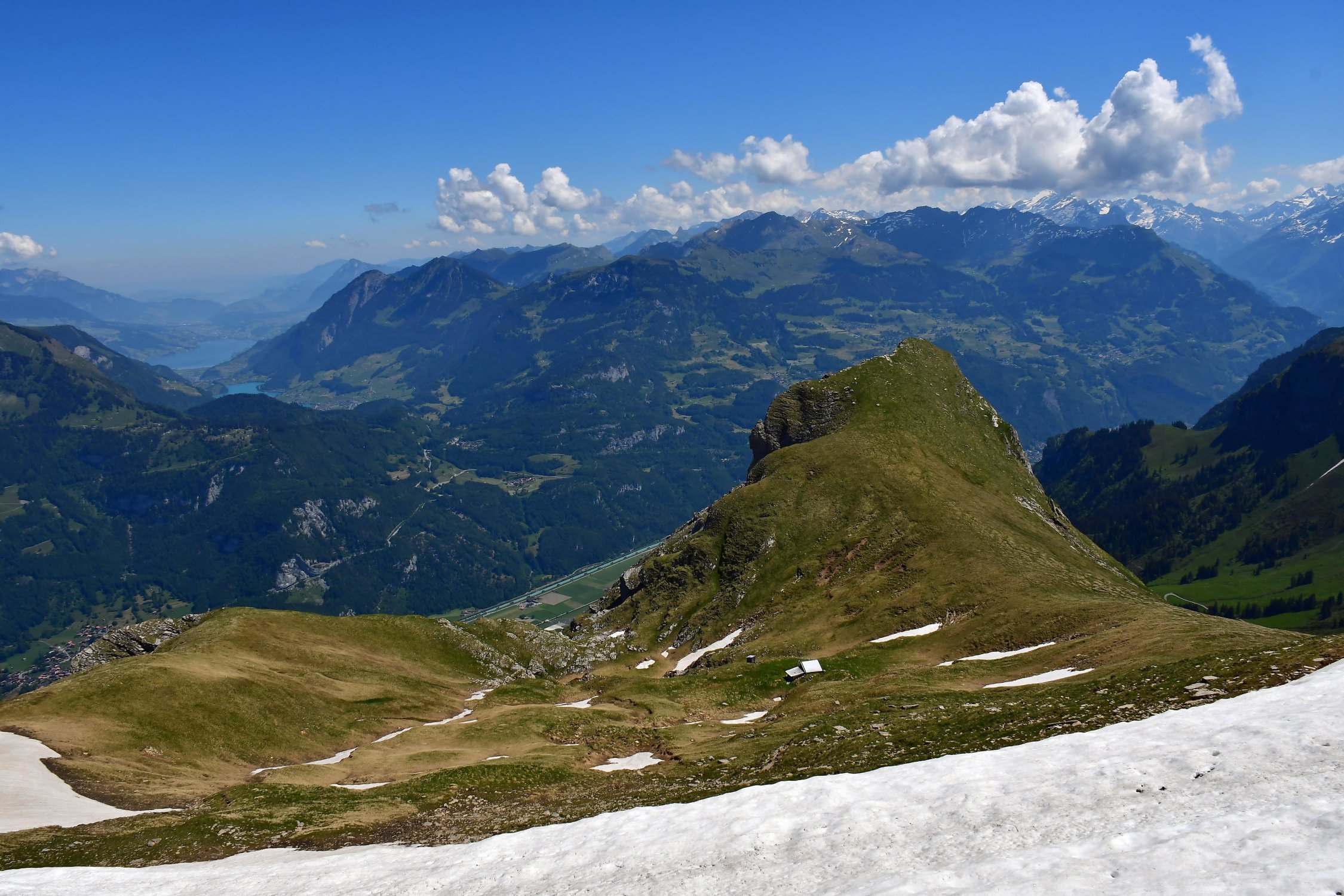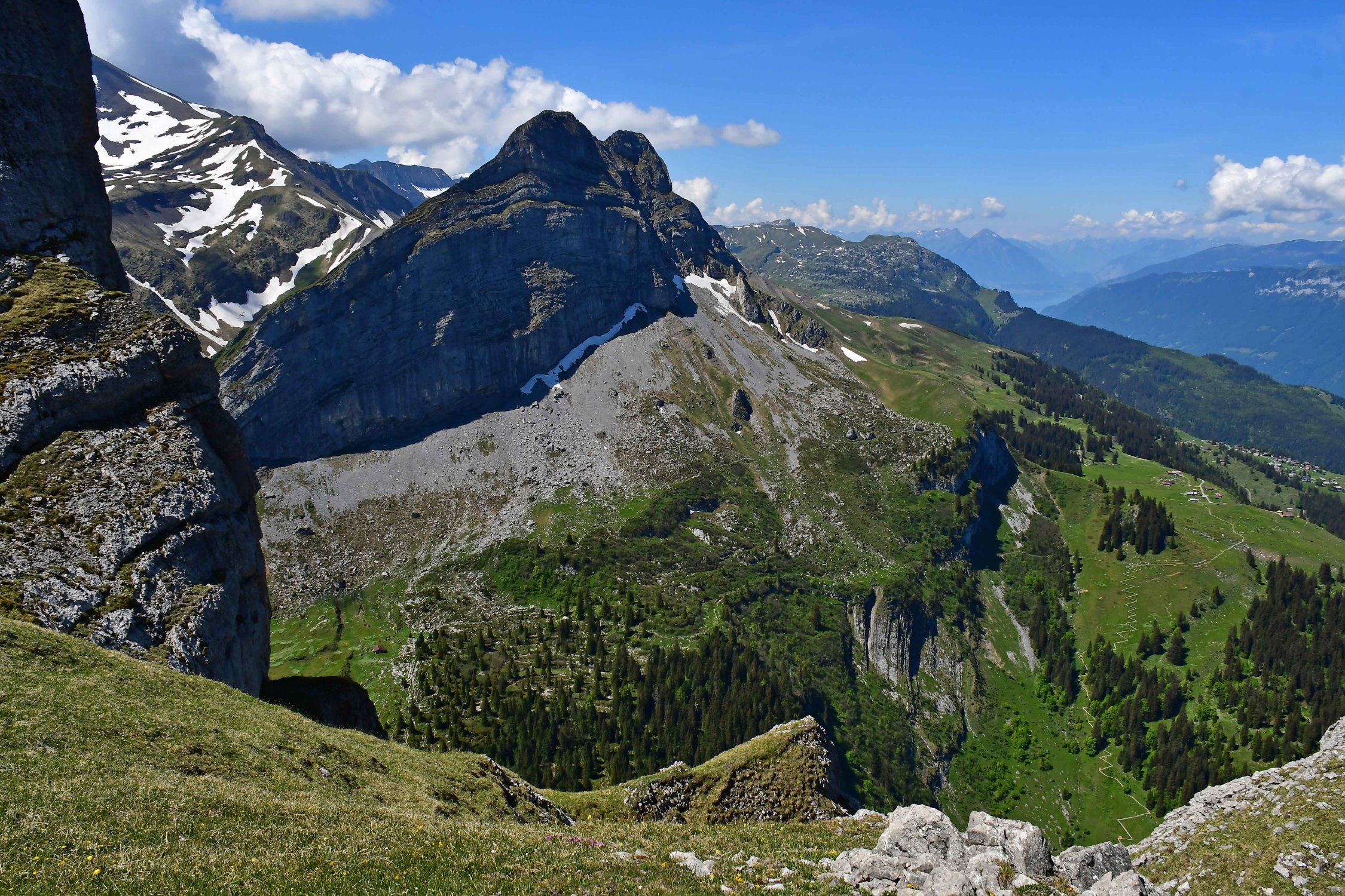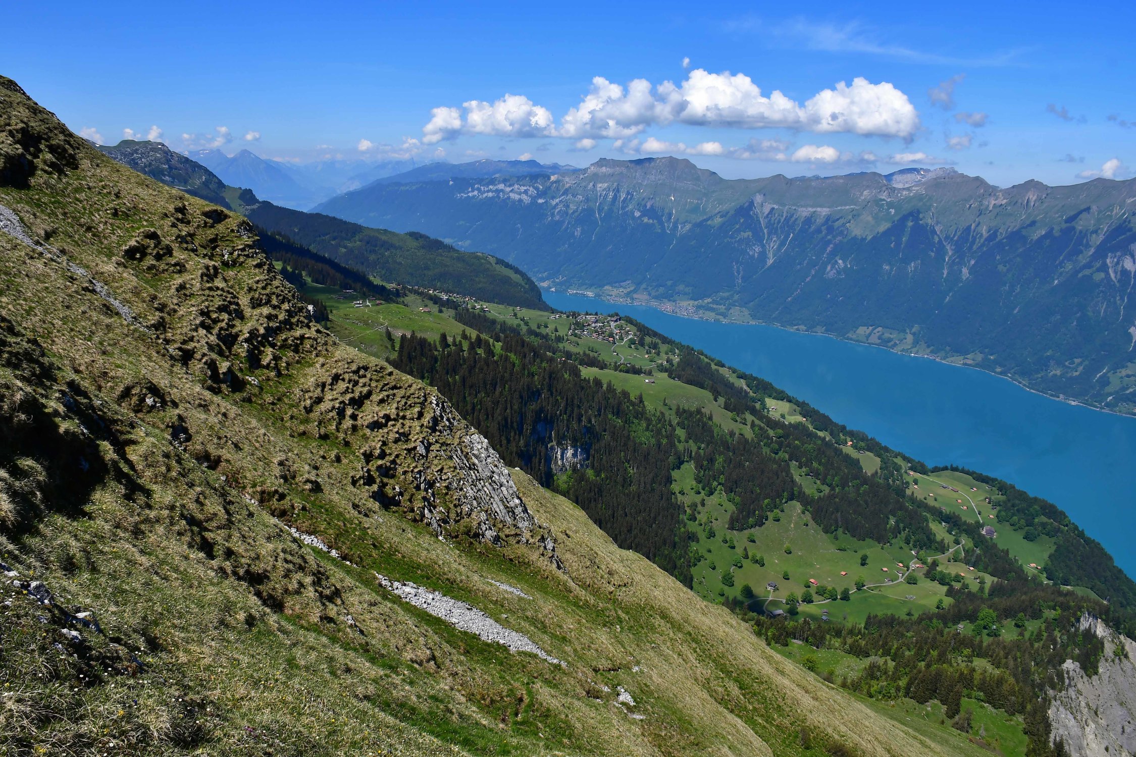 Diese sehr formschöner Berg, ist in der Tat einen Burg weil sie von allen Seiten recht steil abläuft und seinen Gipfel eine recht grosse Grasfläche ist, wo eben die Schafe im Sommer weiden. Wenn man von der Axalp kommt dominiert der Tiefblick zum Hinterburgsee und weil man in einen Halbkreis um diesen herumläuft ändert sich die Landschaft innert kürzerster Zeit schnell.