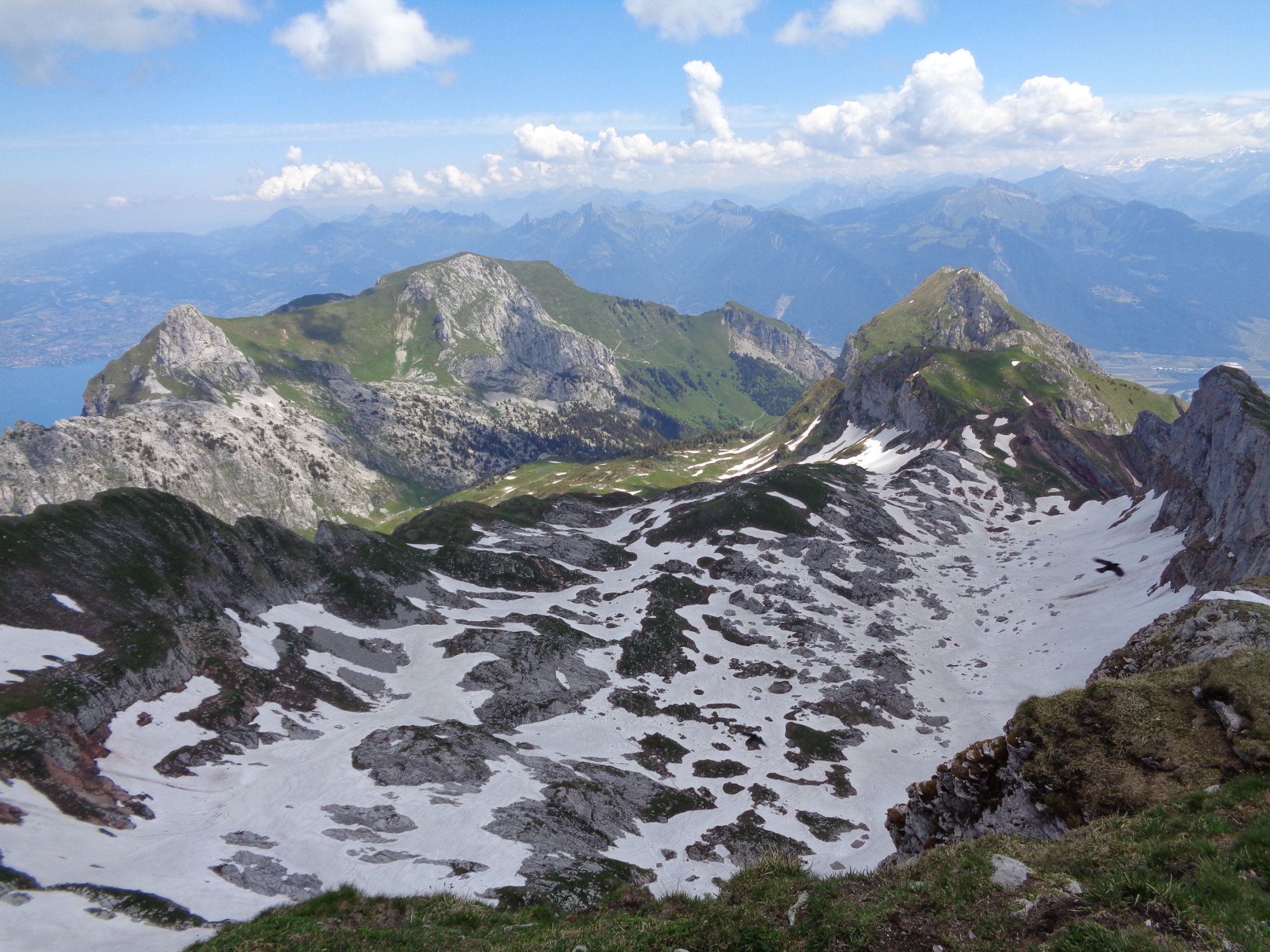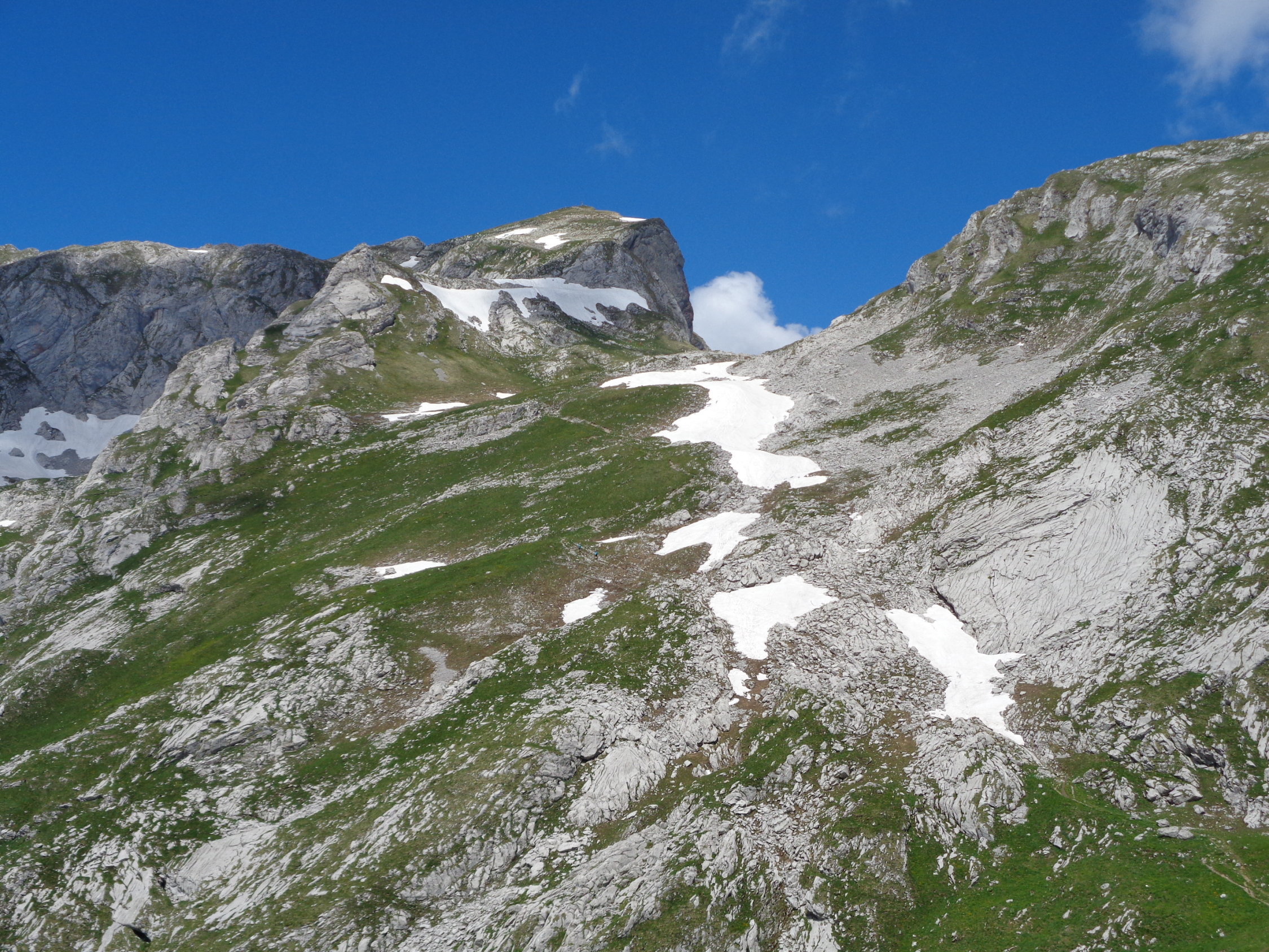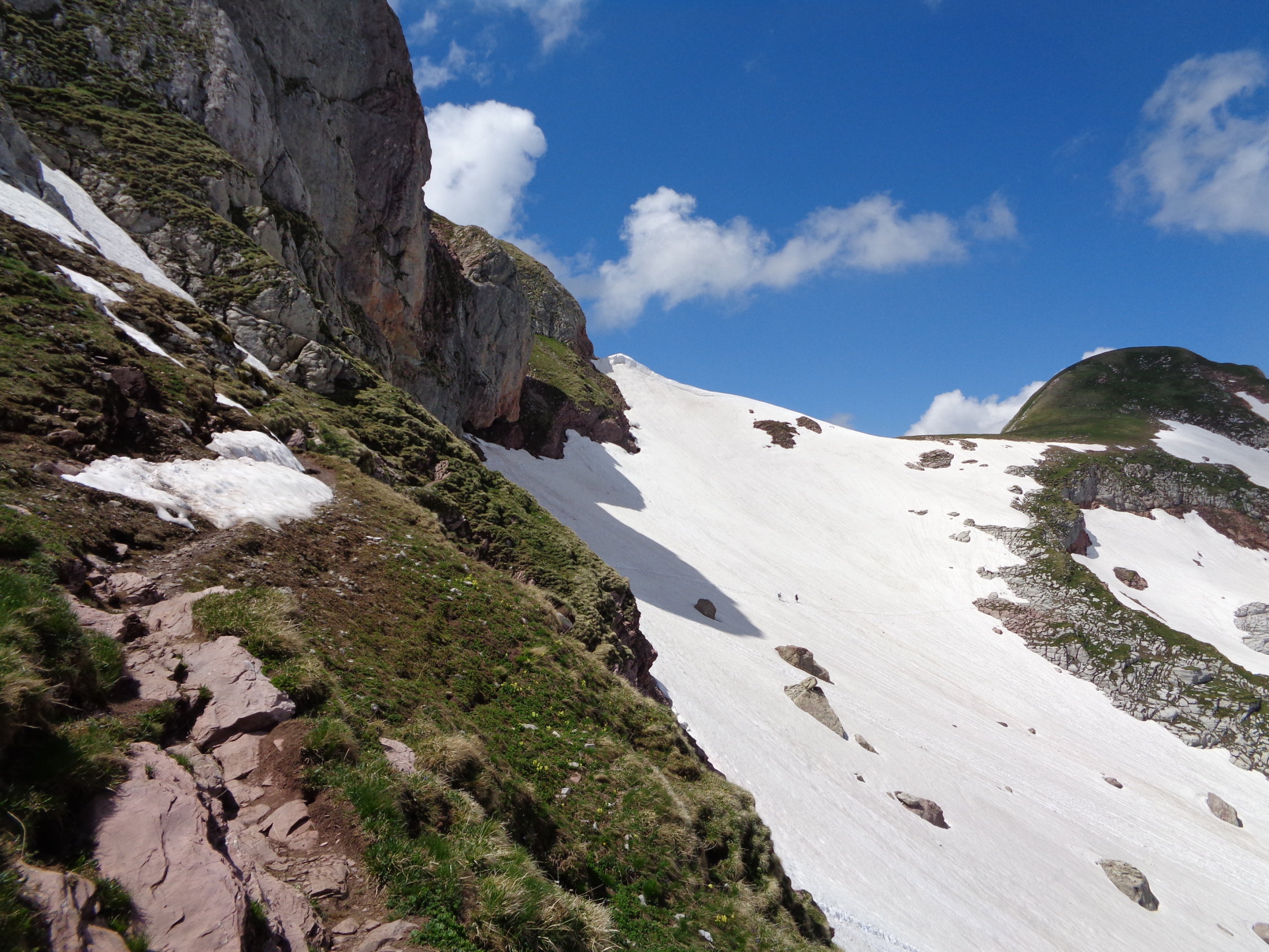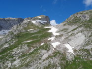 Abstieg: Alpe Loz - Lac de Taney - Le Flon. Die Schneefelder bis zur Alpe Loz boten ein rasches abrutschen.
