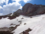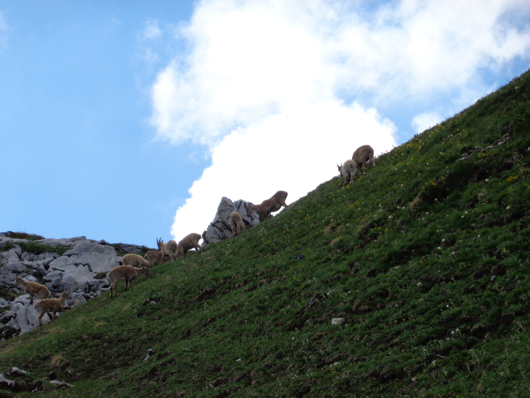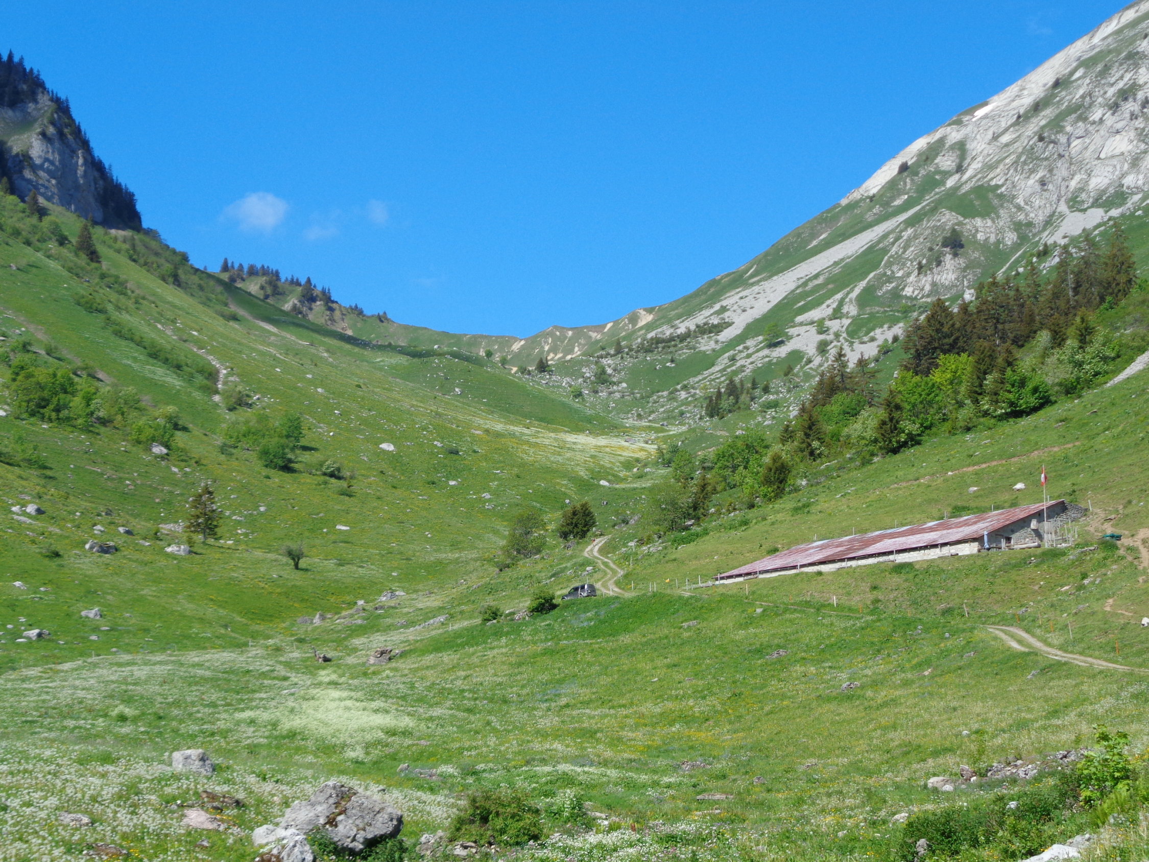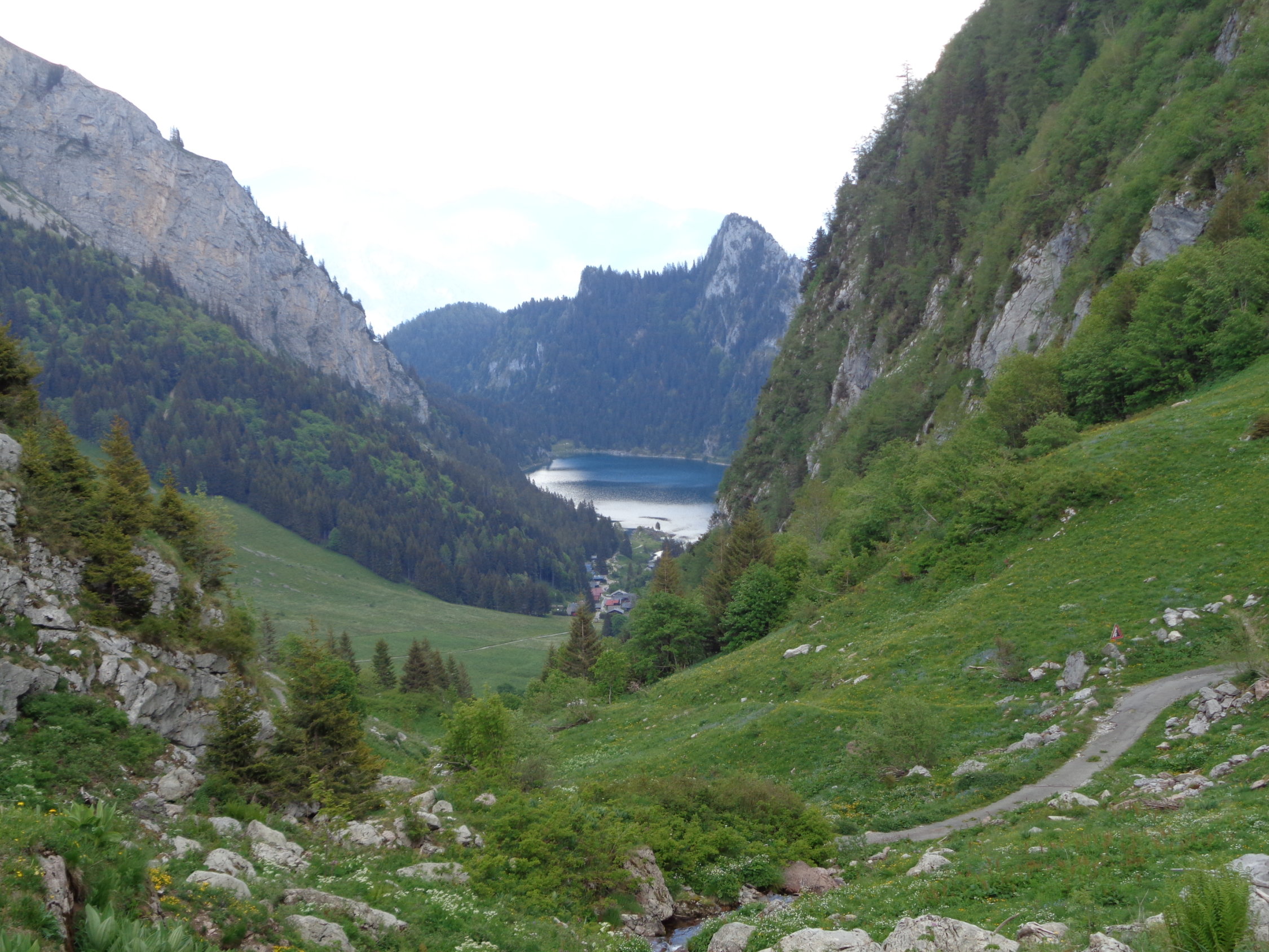 Abstieg: Alpe Loz - Lac de Taney - Le Flon. Die Schneefelder bis zur Alpe Loz boten ein rasches abrutschen.