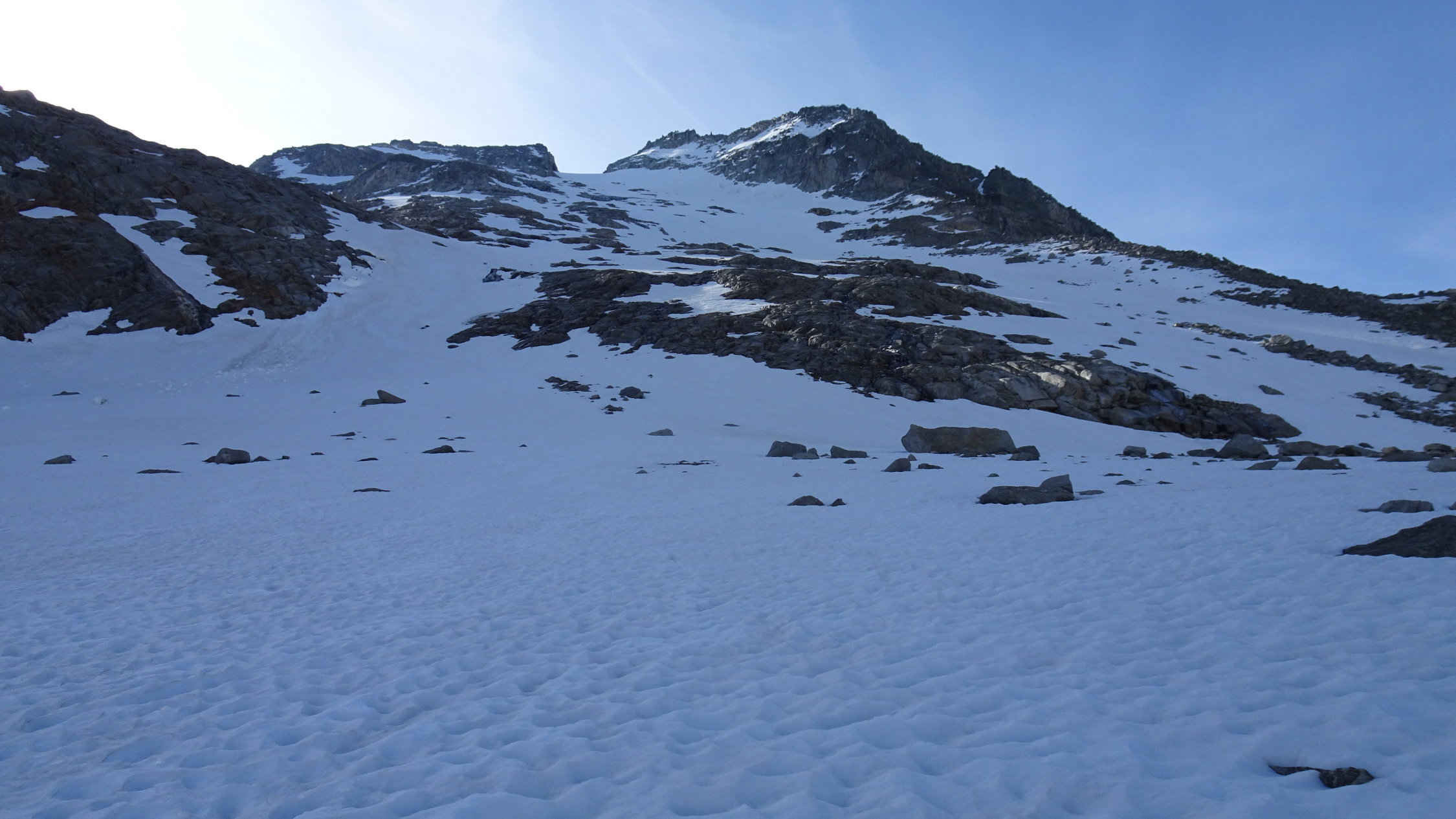 Dies wollten wir heute wissen und bei richtiger Routenwahl haben wir dies nur mit Harscheisen bis auf den Gipfel geschafft