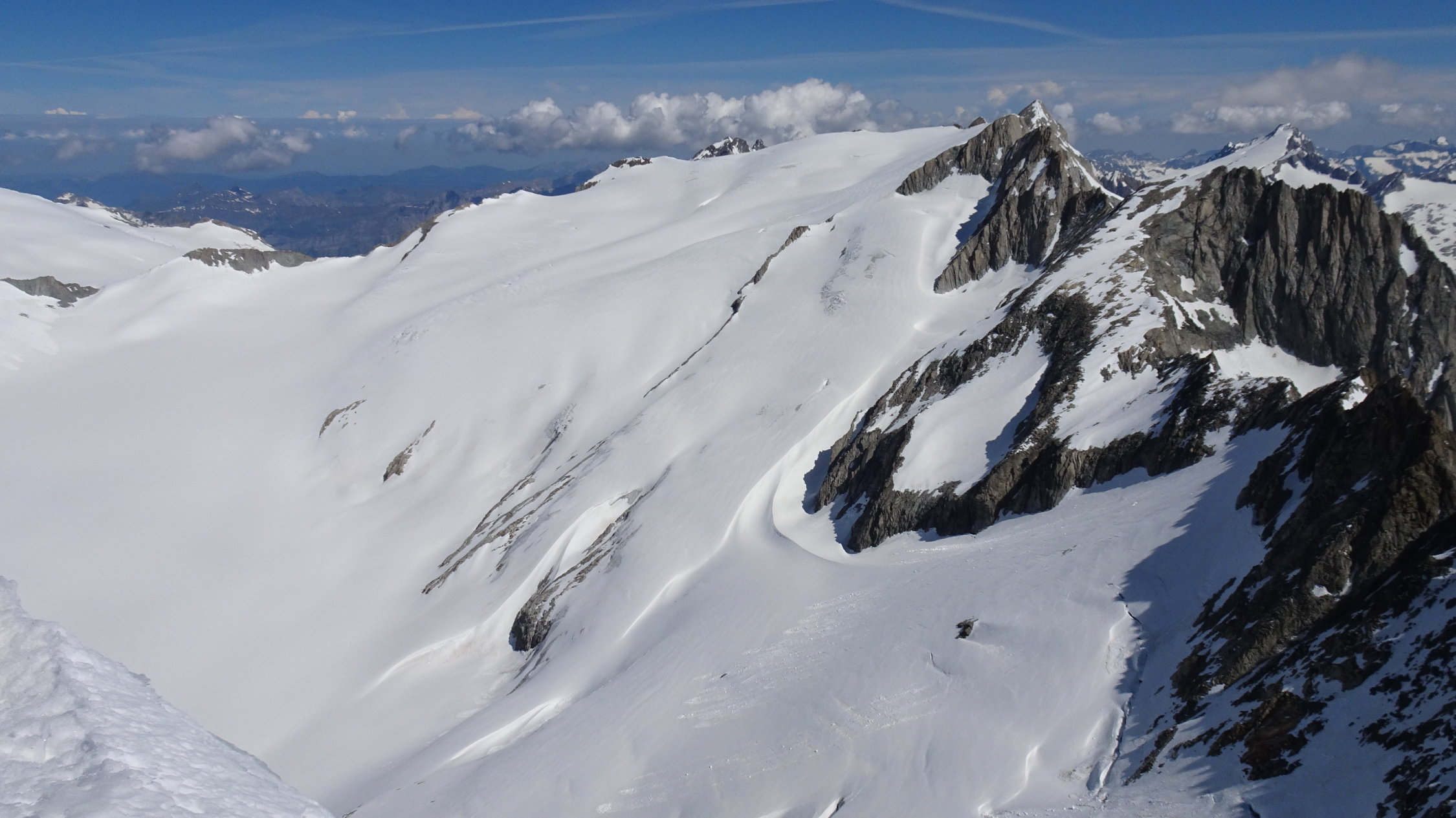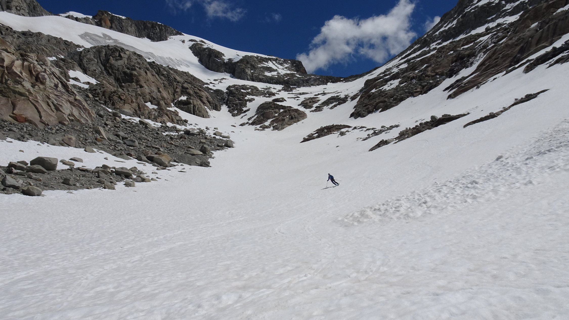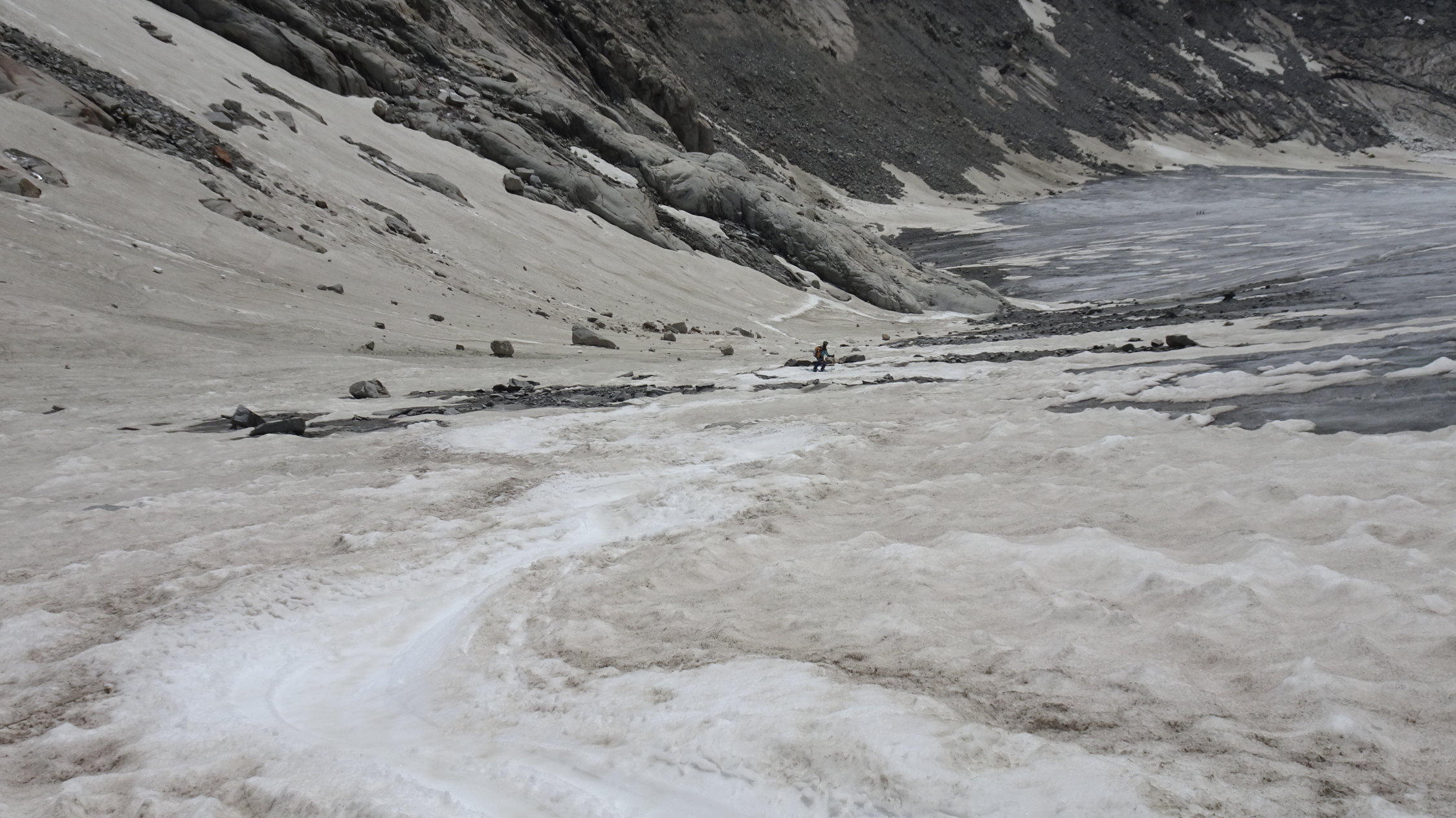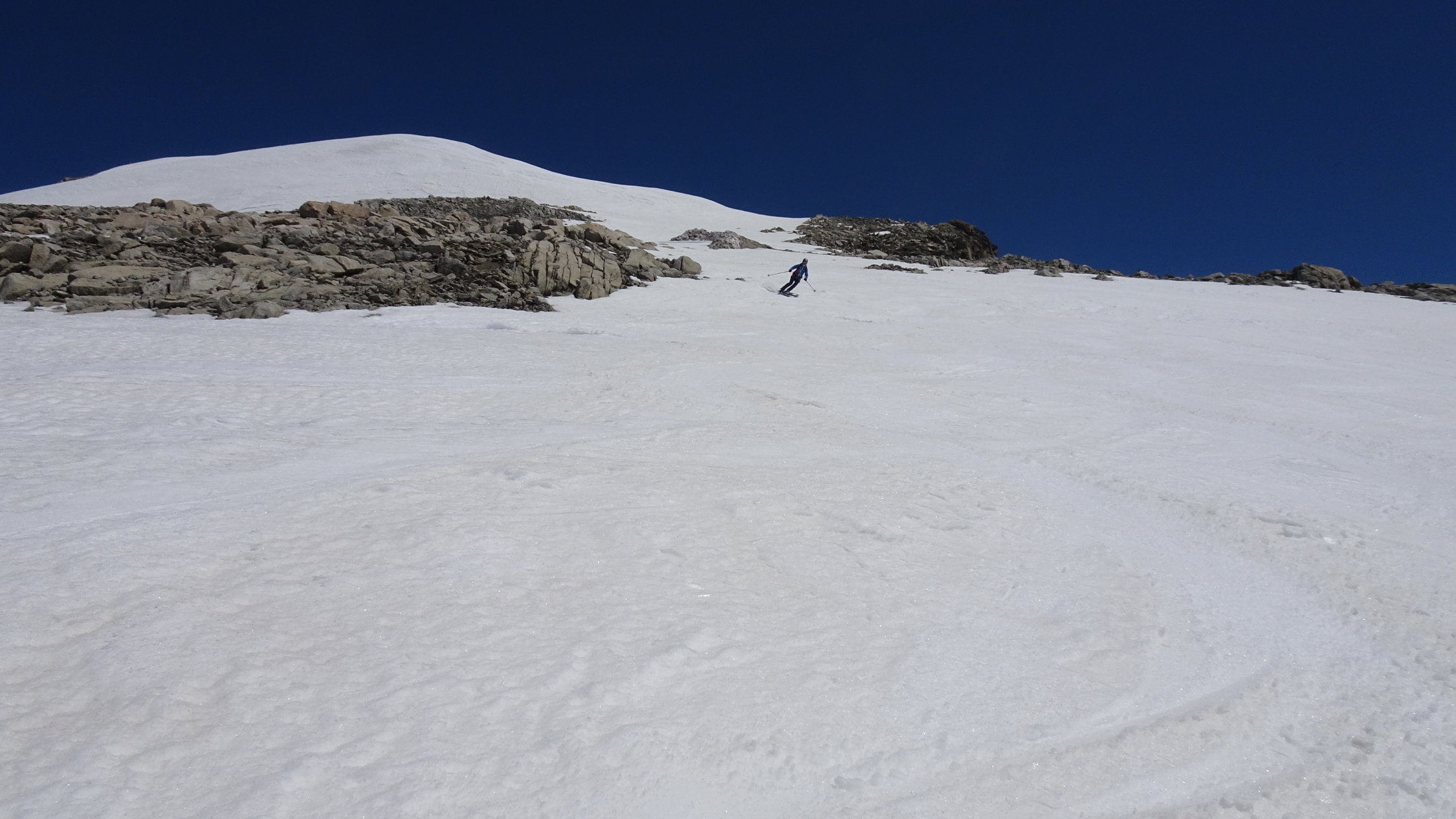 oberhalb 2500m sind die Verhältnisse noch ausgezeichnet mit schönstem Sommersulz um 12 Uhr