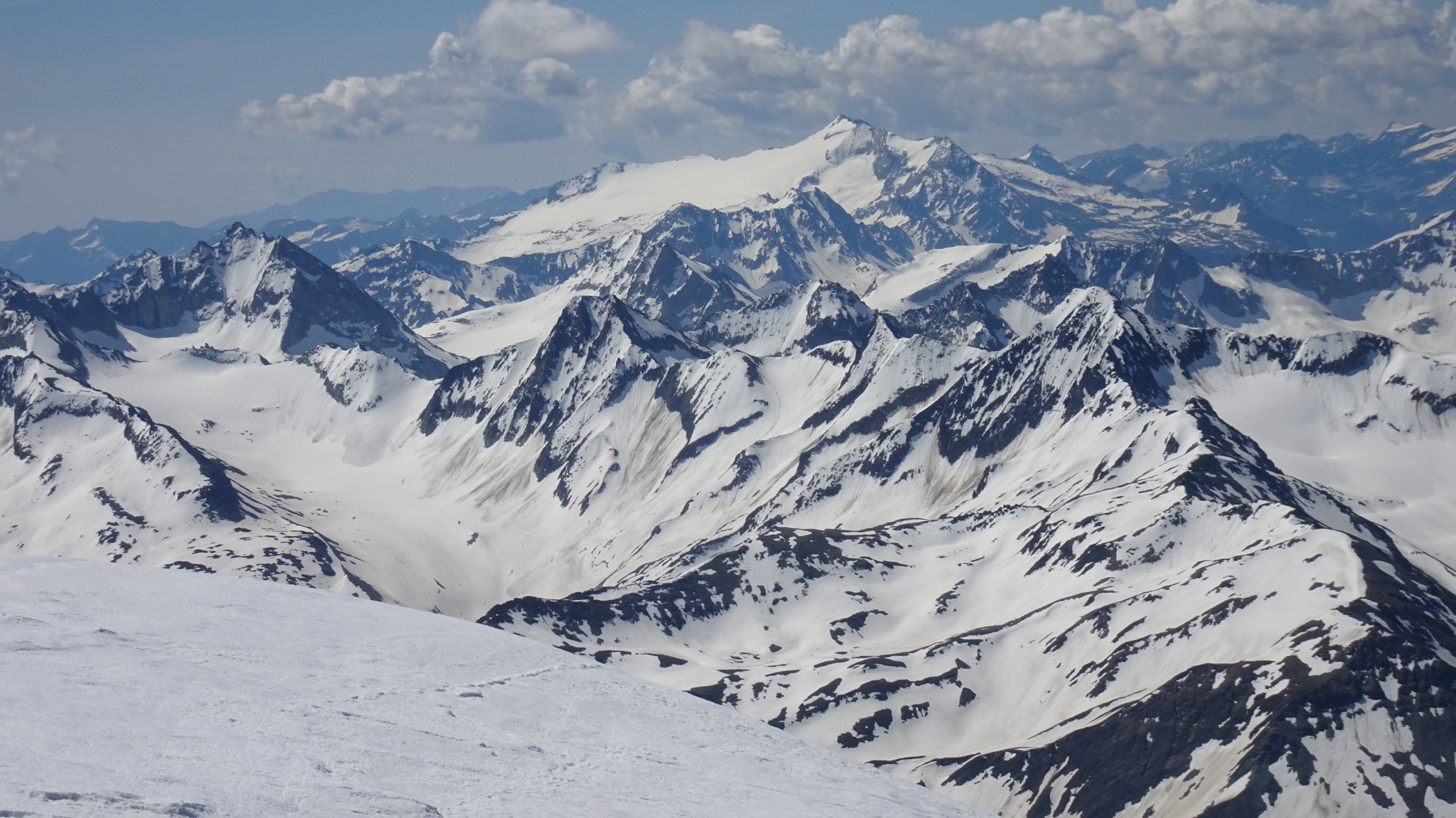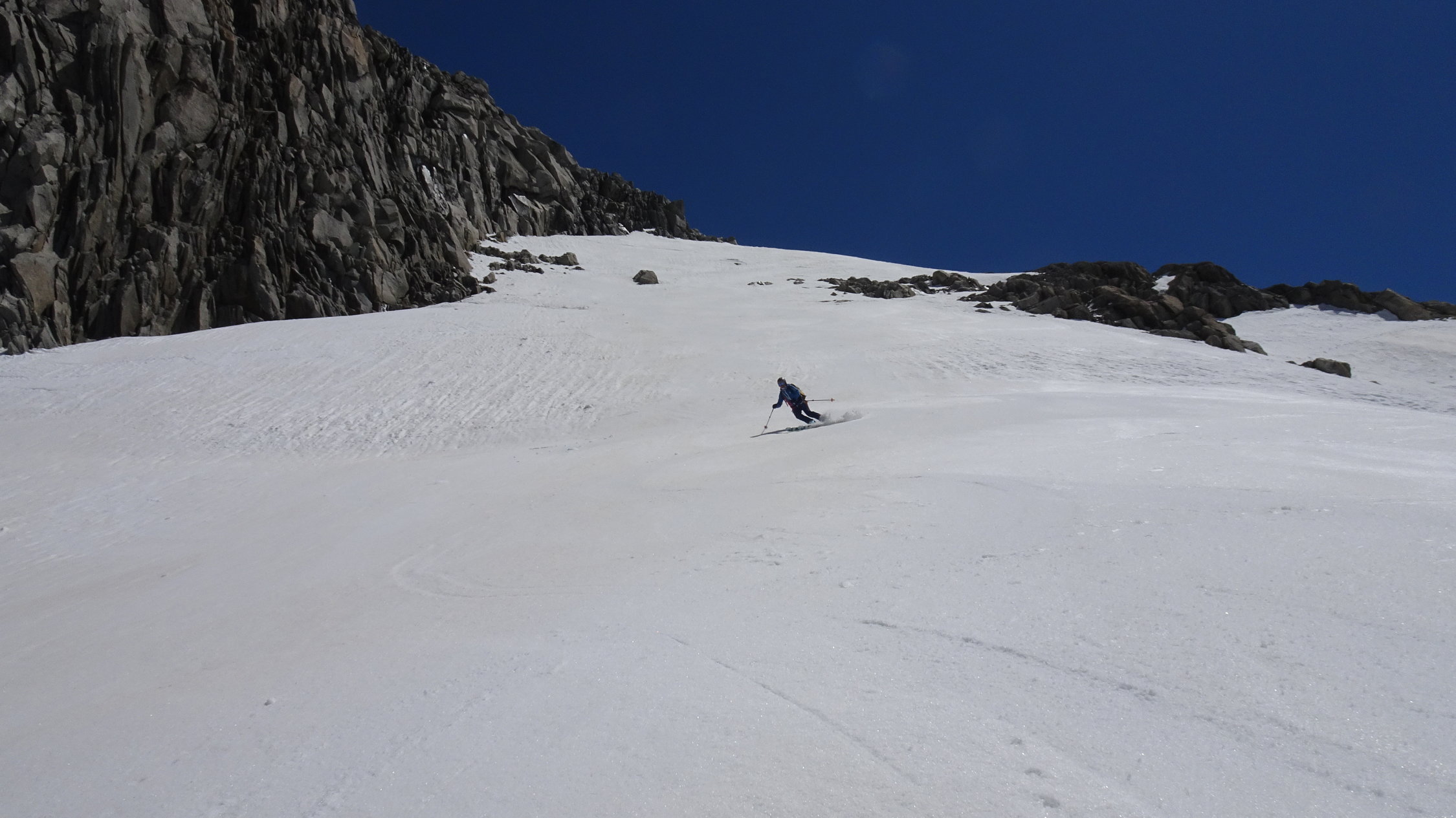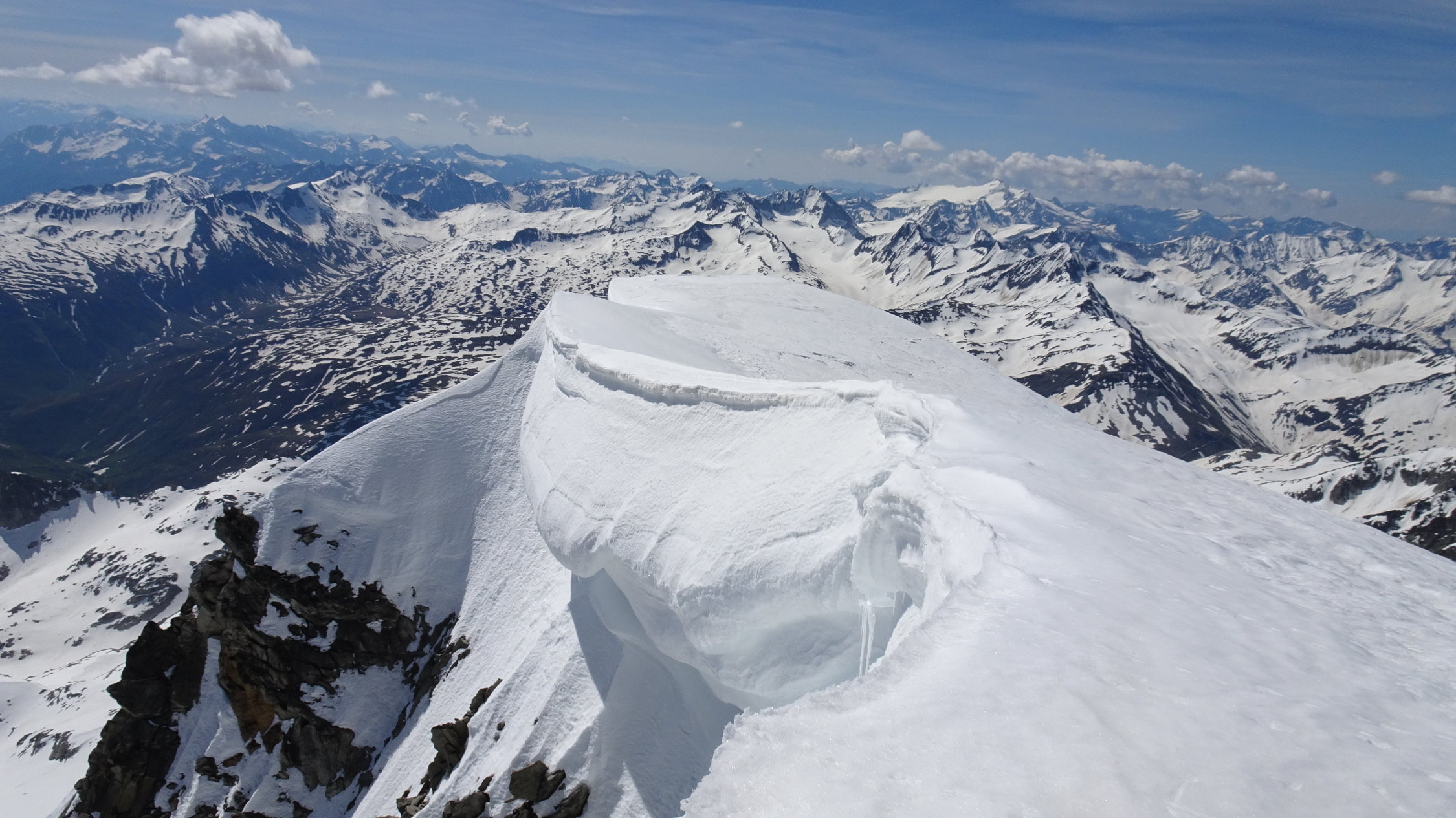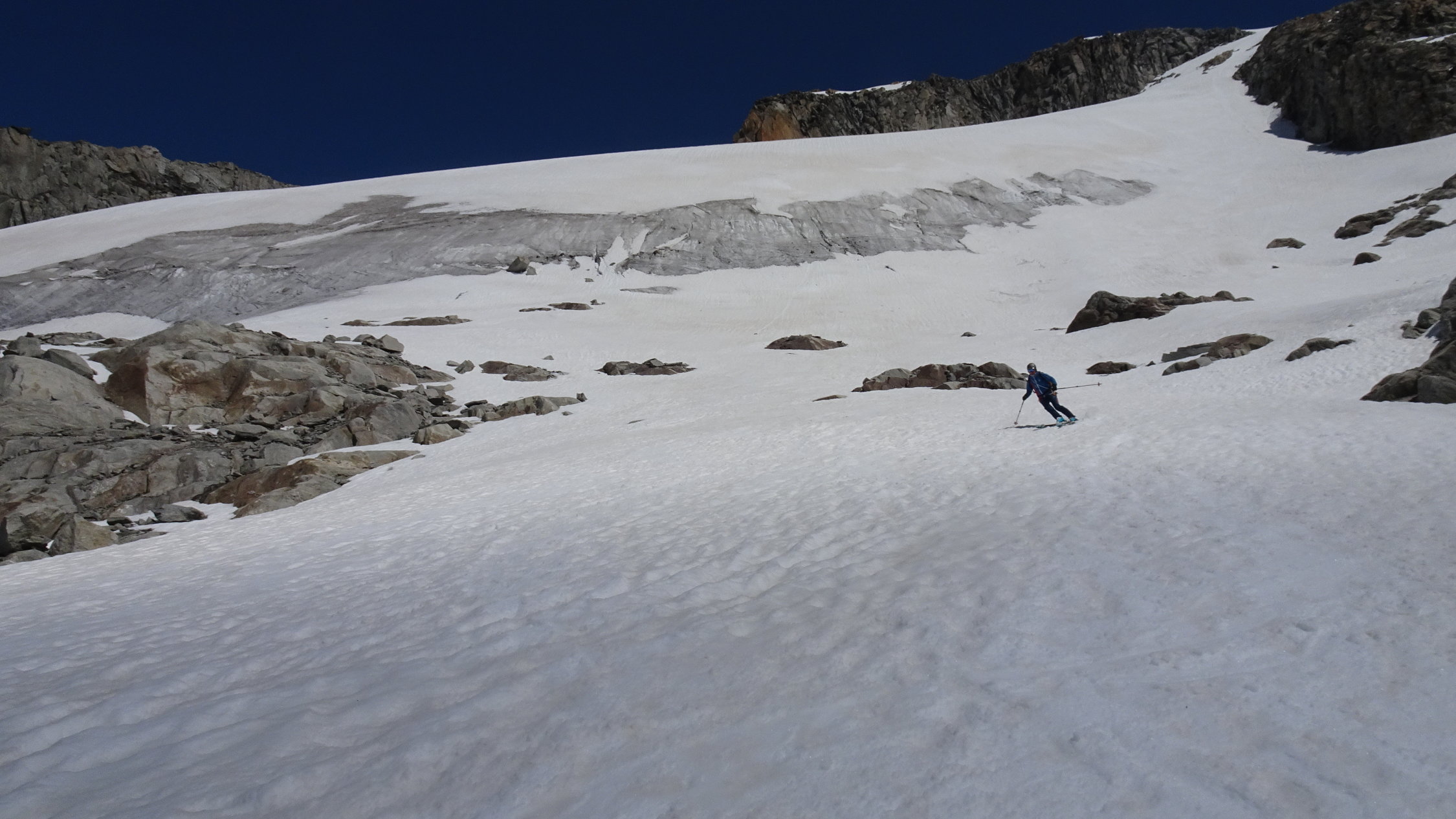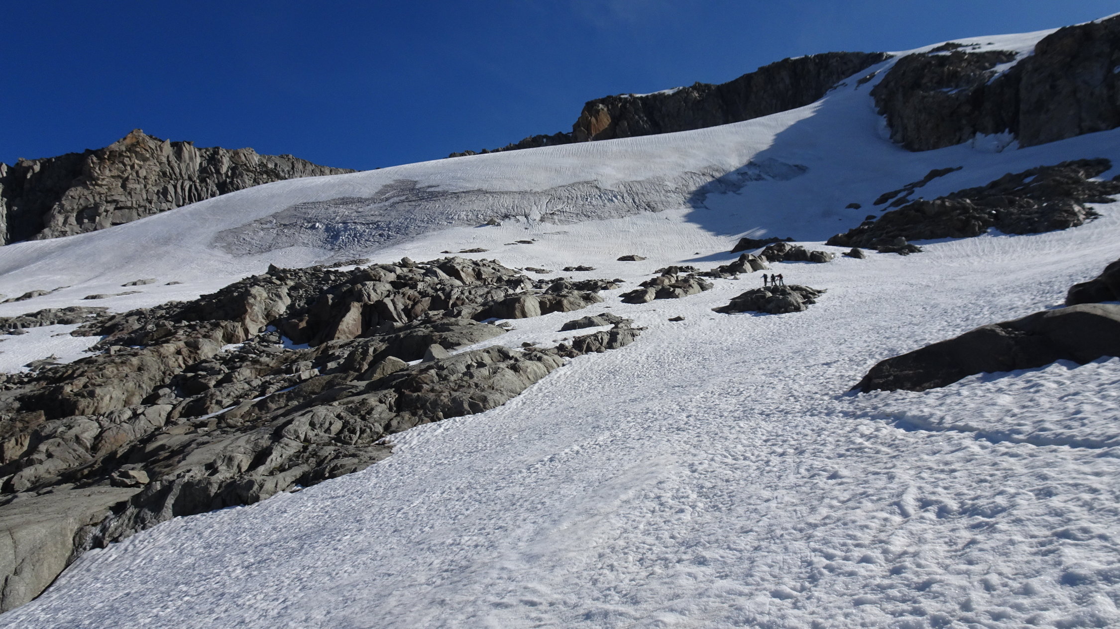 oberhalb 2500m sind die Verhältnisse noch ausgezeichnet mit schönstem Sommersulz um 12 Uhr