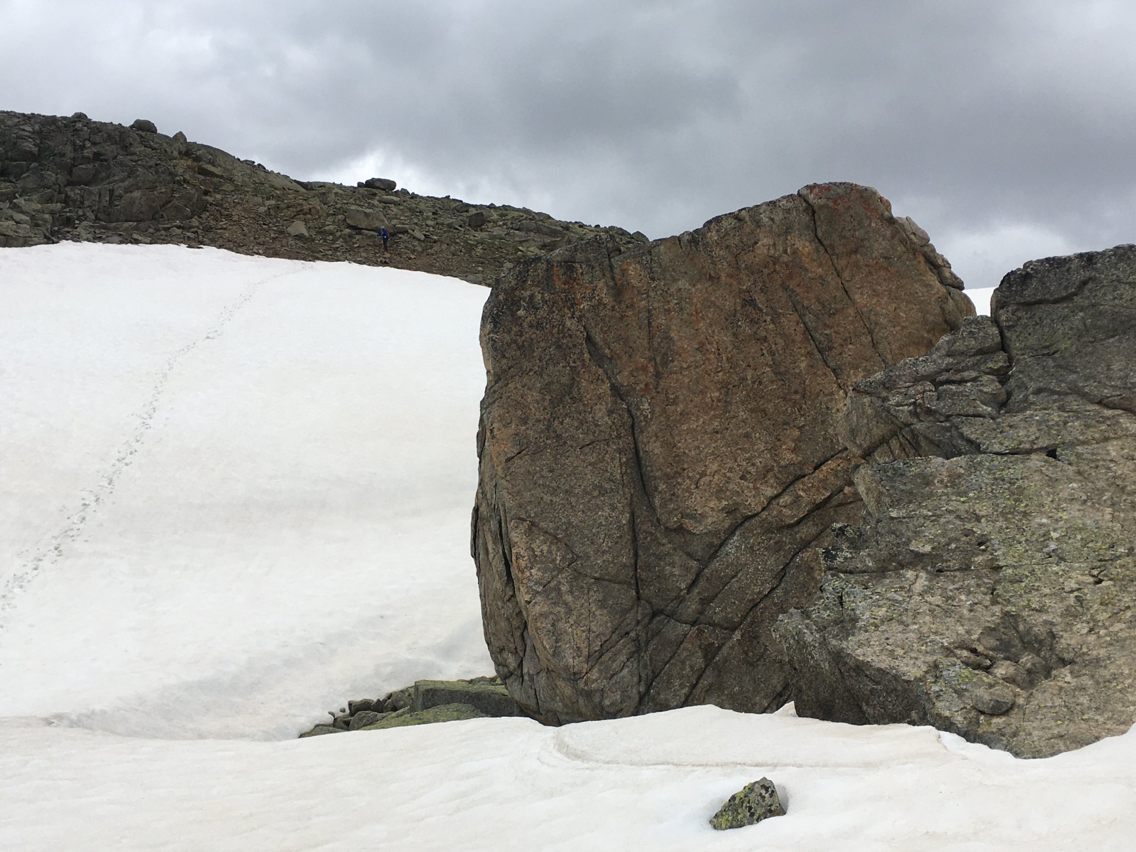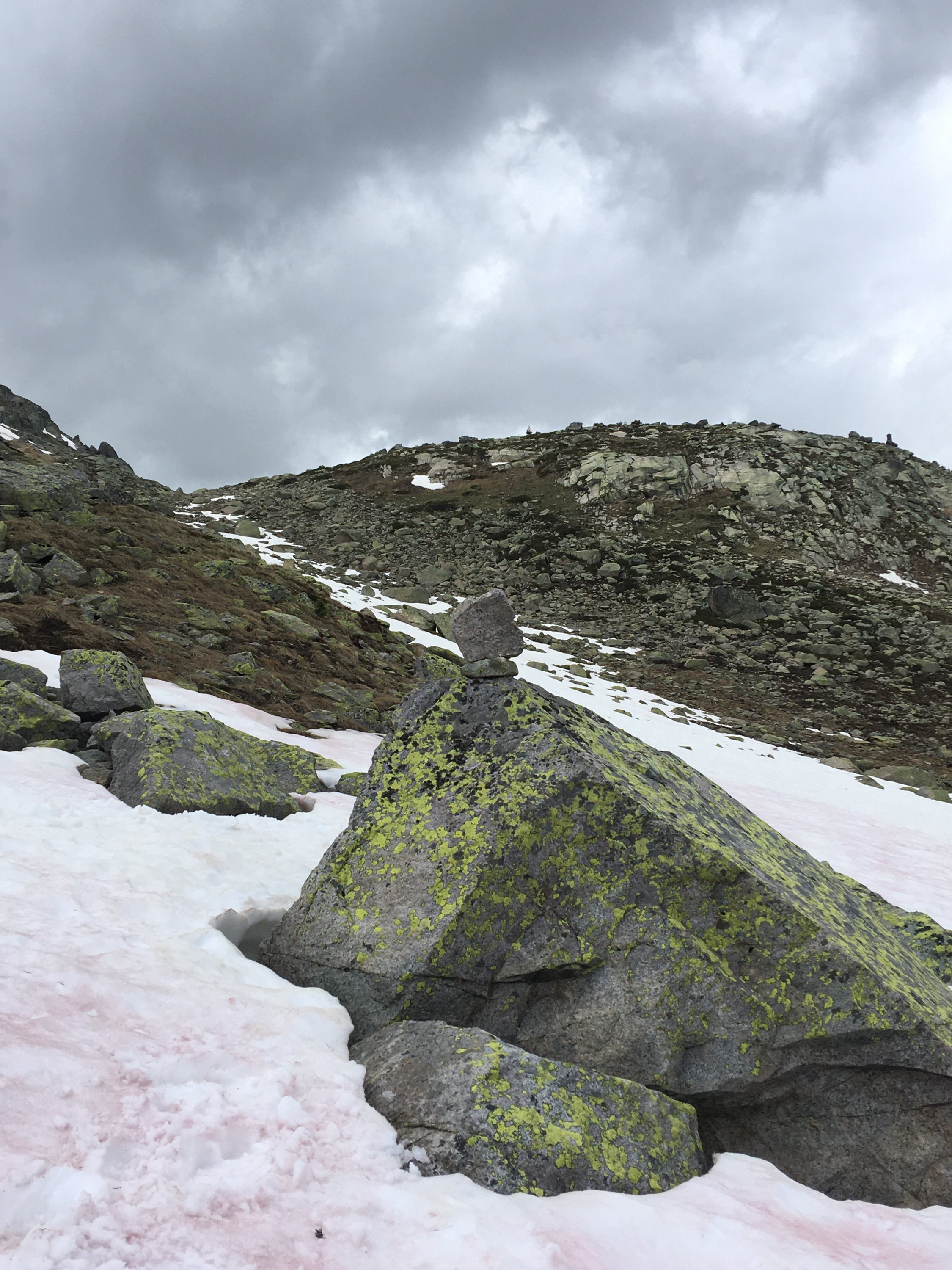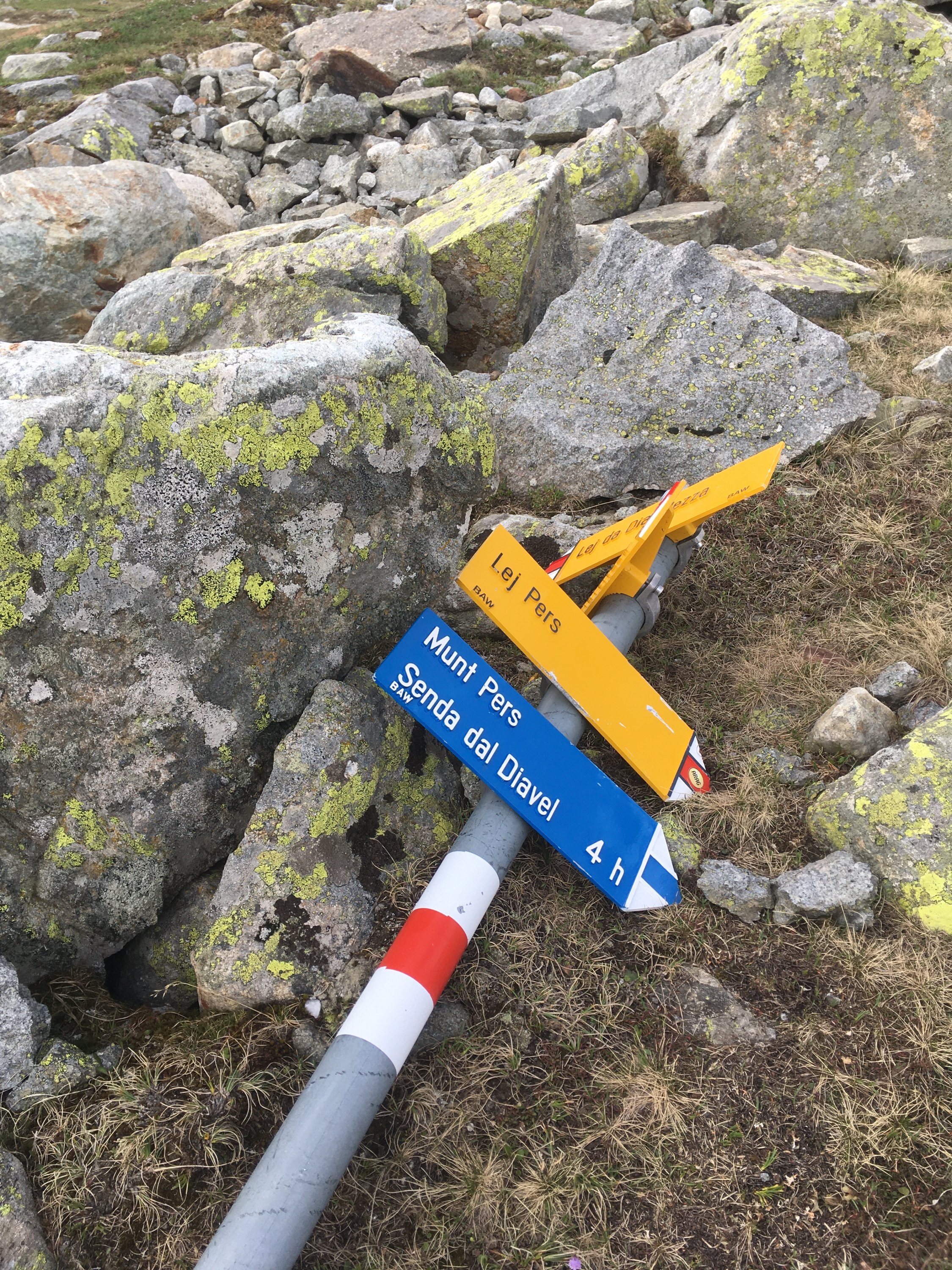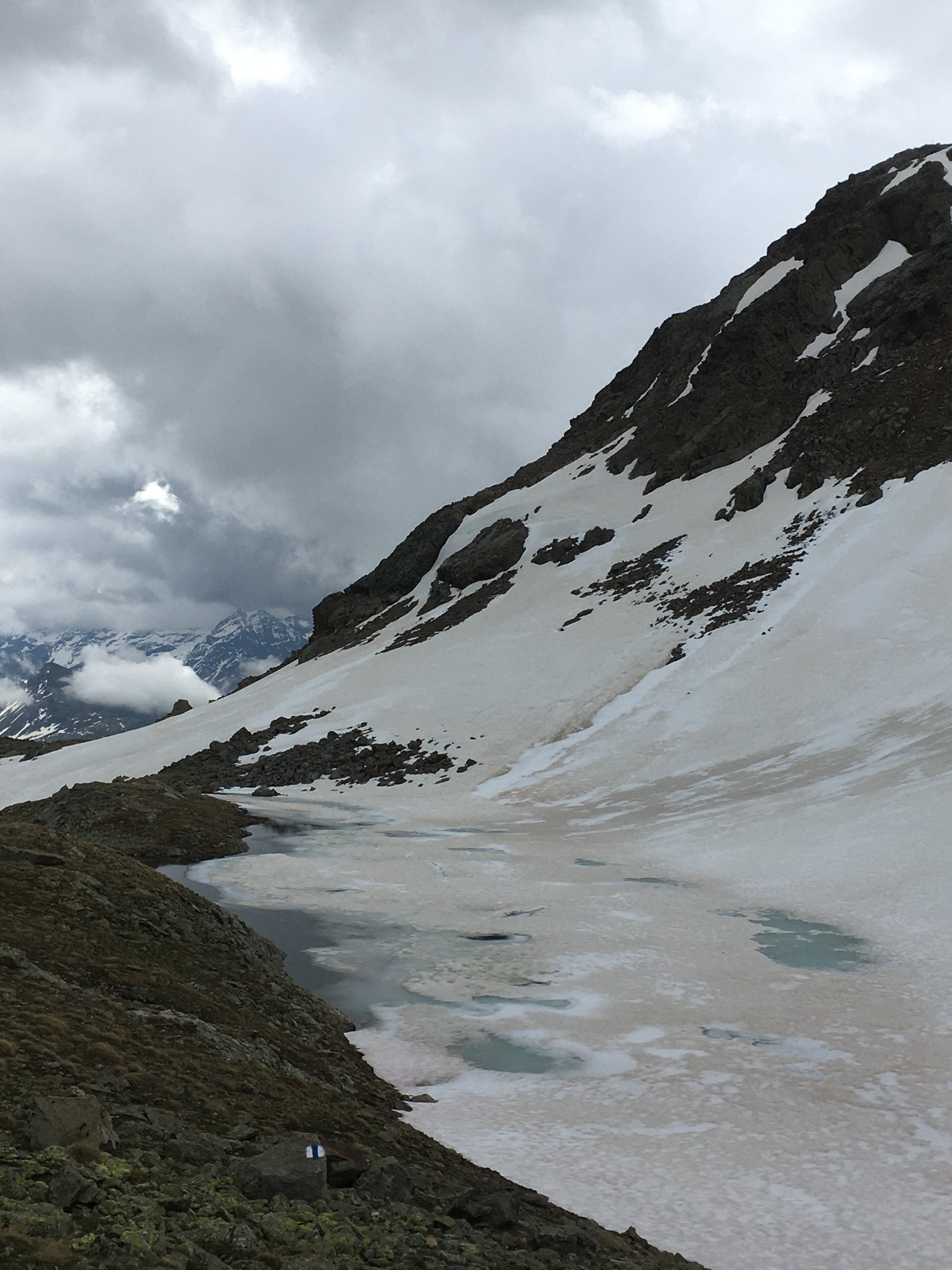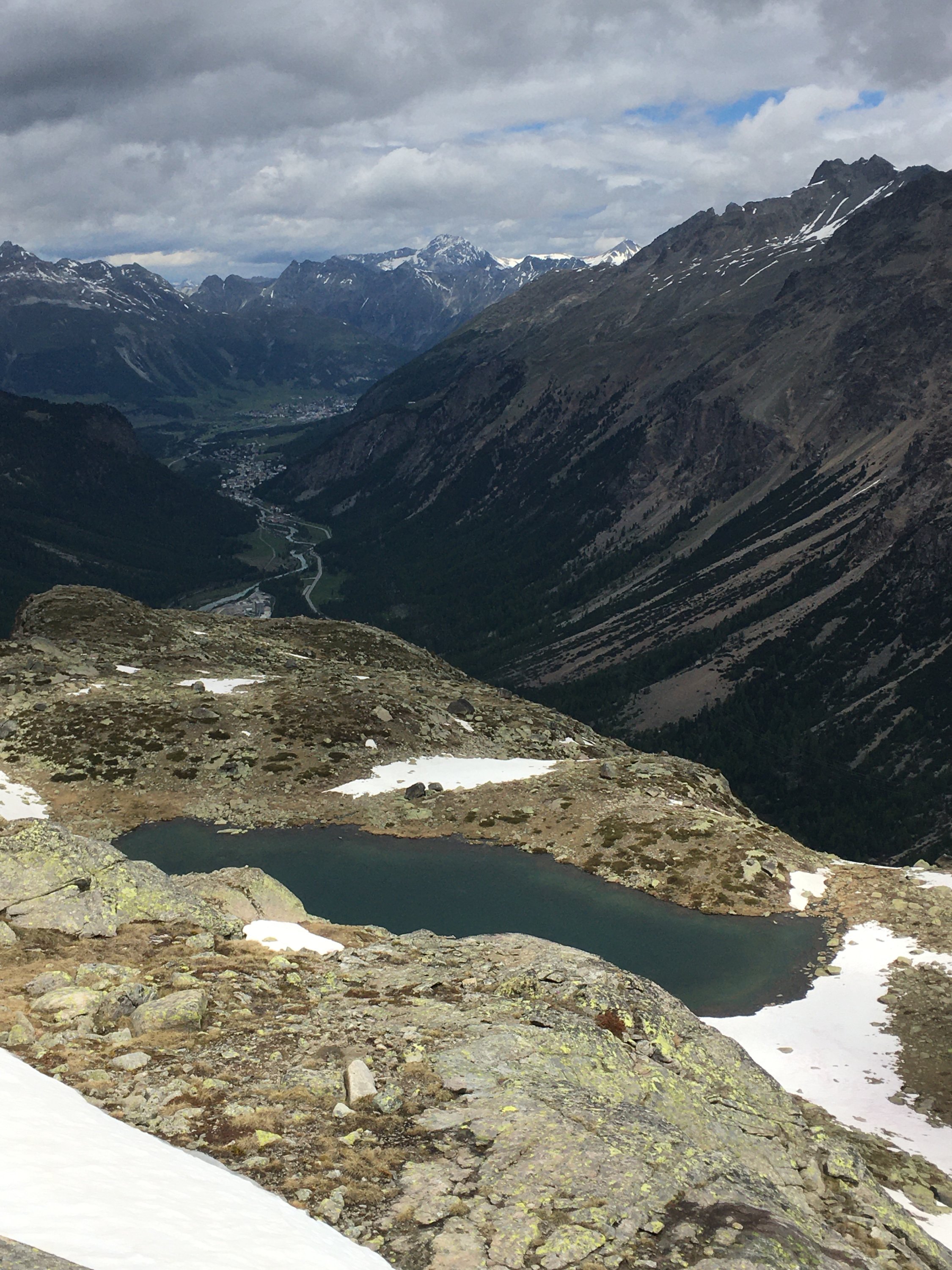 Start um 8.45 Uhr Parkplatz Diavolezza, 8 Grad, Südwestwind. Ab Höhe 2550 Schneefelder, aber schöner Trittschnee und in der Ebene Las Collinas zahlreiche Schneefelder. Der Lej da las Collinas ist noch zu 4/5 gefroren. Der Blau weiss markierte Weg zum Munt Pers (Senda dal Diavel, T5, ca. 5 Stunden) ist noch voller Schnee, nur mit Pickel und Steigeisen zu machen. Unschwierig zum P. 2651 oberhalb Lej Pers. Abstieg zum Lej Pers auf Schneefelder und zu Punkt 2431 muss man die Route etwas suchen, Markierungen unter Schnee. Hie und da Steinmännchen. Unterhalb P. 2431 steil die Ostflanke runter, dem Schnee kann man ausweichen und unschwierig weiter zum Ausgangspunkt Diavolezza. Aufstieg T3, Abstieg bei diesen Verhältnissen T4.