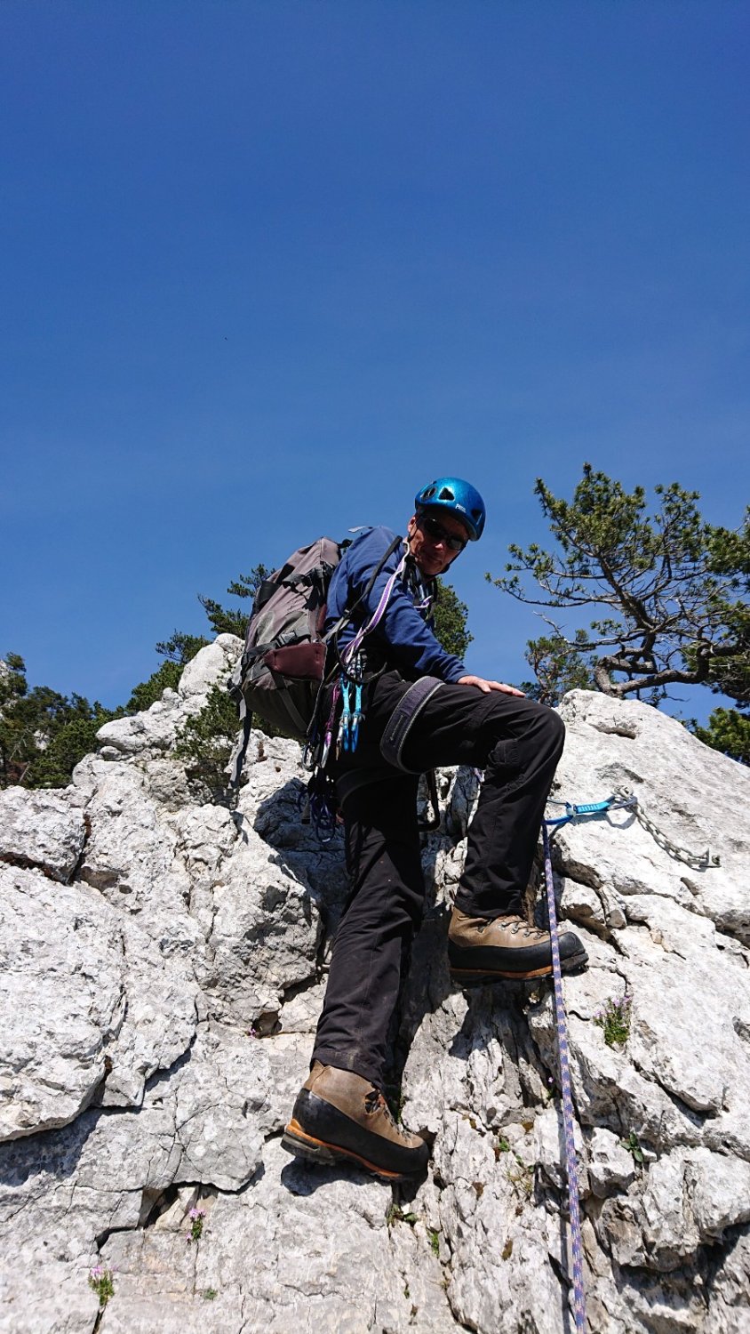 Der Grat ist knapp ausgerüstet, und einige Sicherungen müssen selbst gelegt werden. Somit ist diese Klettertour auch eine gute Uebung fürs Hochgebirge. Es empfiehlt sich ein halbes Dutzend Schlingen mit zu nehmen. Bäume und Felszacken bieten gute Möglichkeiten um Sicherungen zu legen.