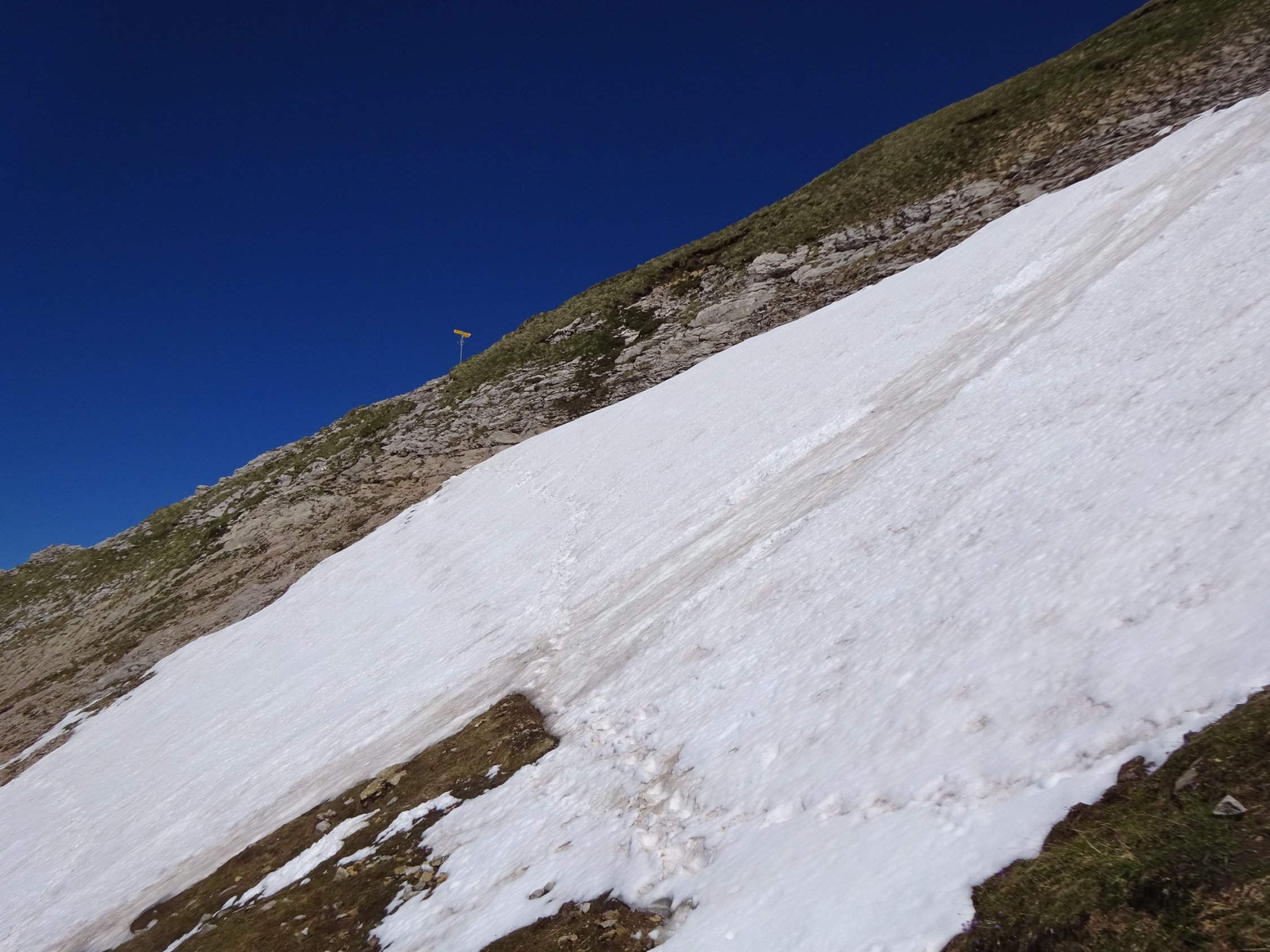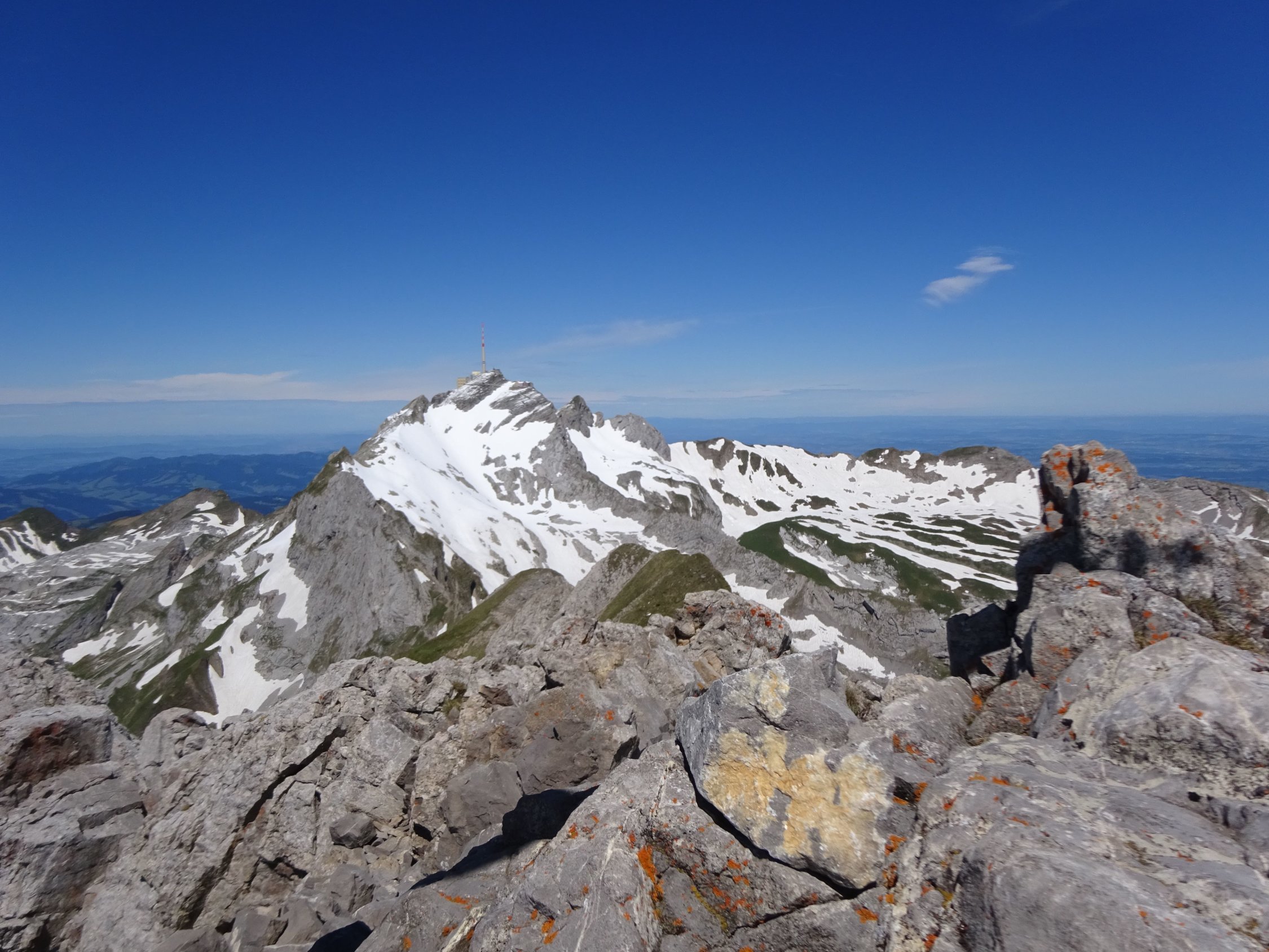 Der Altmann ist zurzeit gut machbar. Zwischen der Zwinglihütte und dem Altmannsattel liegen die zu dieser Jahreszeit üblichen ausgedehnten Schneefelder, die gegen oben recht steil werden. Vom Sattel zum Gipfel ist es schneefrei und trocken. Heute hat der Föhn ziemlich kräftig gewirkt. Auch das Schaffhauser Kamin wurde heute begangen.