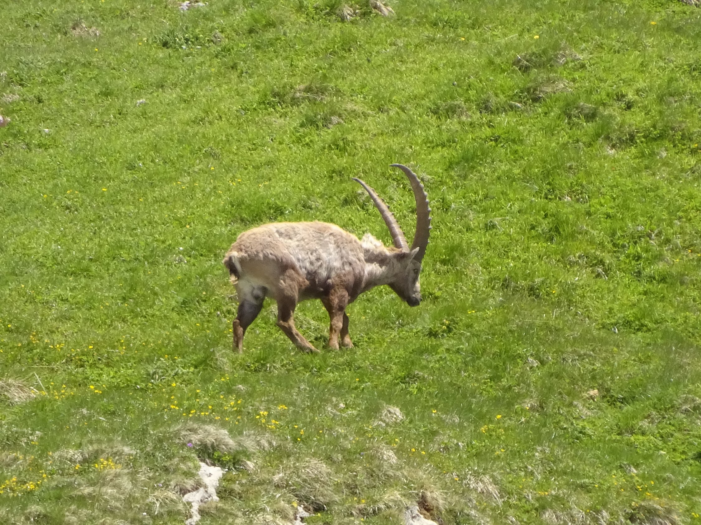 Ganz besonders schön sind die vielen Blumen, und auch die Steinböcke und Murmeltiere haben Freude am schönen Wetter. Beim Abstieg Zusatzschlaufe zum Mutschen, und via Tesel zurück nach Wildhaus. Das zieht sich.