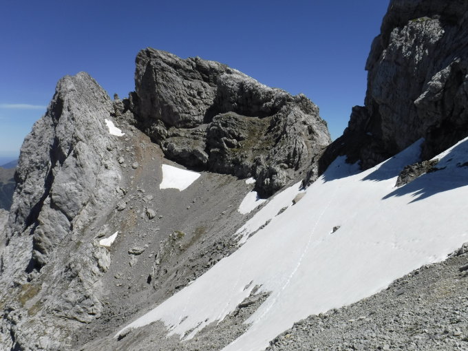 Der Steig ist gerade im südlichen Abschnitt saniert worden. Das abgebaute Material liegt bereit zur Abholung durch den Hubschrauber.