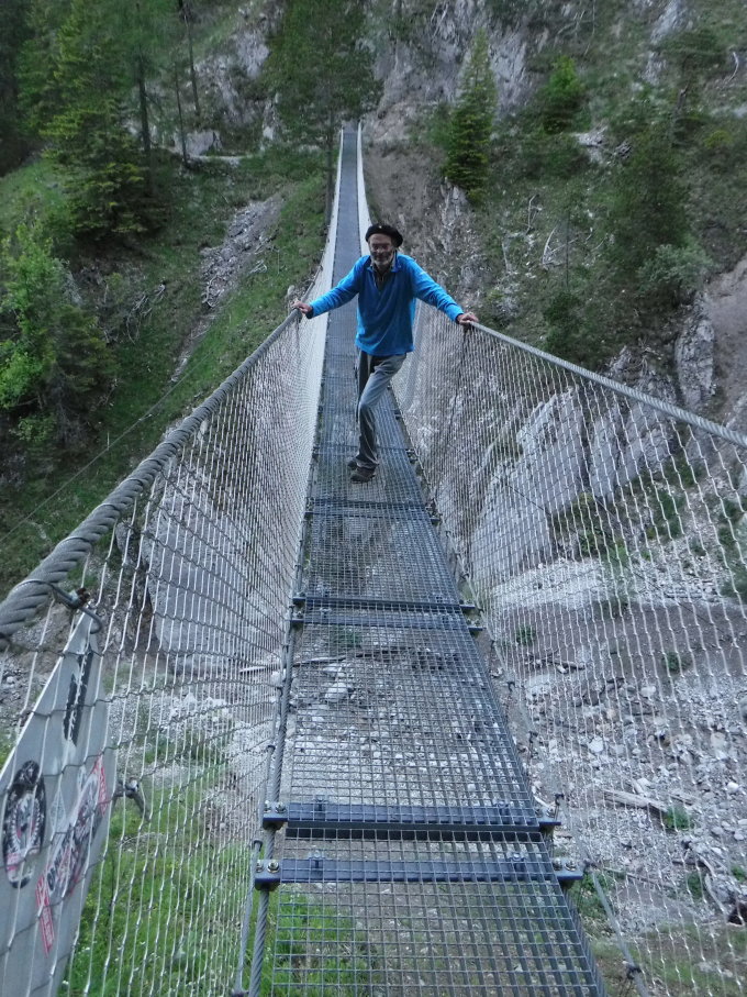 Wegen dem Wind war nicht sicher, ob die Karwendelbahn fuhr. Ungeachtet dessen hatte ich sowieso nicht vor, erst so spät zu beginnen. Bei gewählter Tourenrichtung von Süd nach Nord hatte ich bis zur Sulzleklammspitze die Tour für mich allein. Erst nach dem Abstieg über neue Leiter kamen mir die ersten entgegen, die mit der Karwendelbahn hochfuhren. Danach begegnete ich ca. 200 Leuten. Ausweichen ist auf der Tour kein Problem, wenn man nicht ständig am Seil „klebt“.