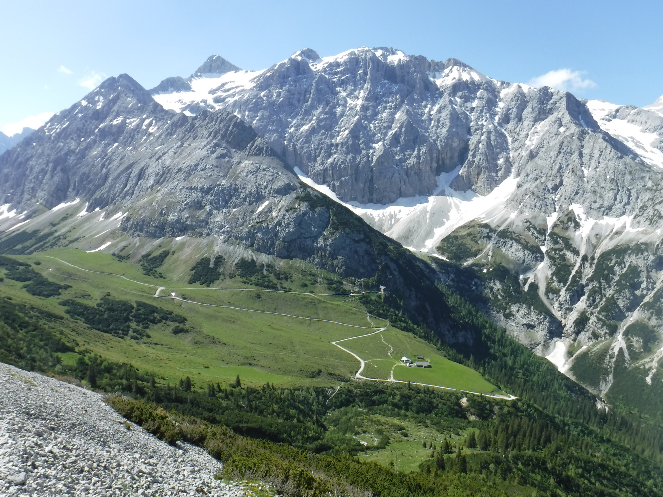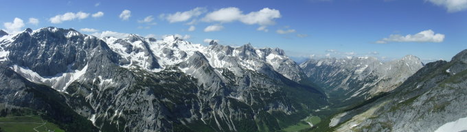 P4 (Johannishütte) – Johannistal – Schwarze Lacke – Kl. Ahornboden – Unterfilztal (Adlerweg) – Hochalmsattel – Maximiliansweg – Im Wank – Östl. Karwendelspitze – Grabenkar – Maximiliansweg - retour